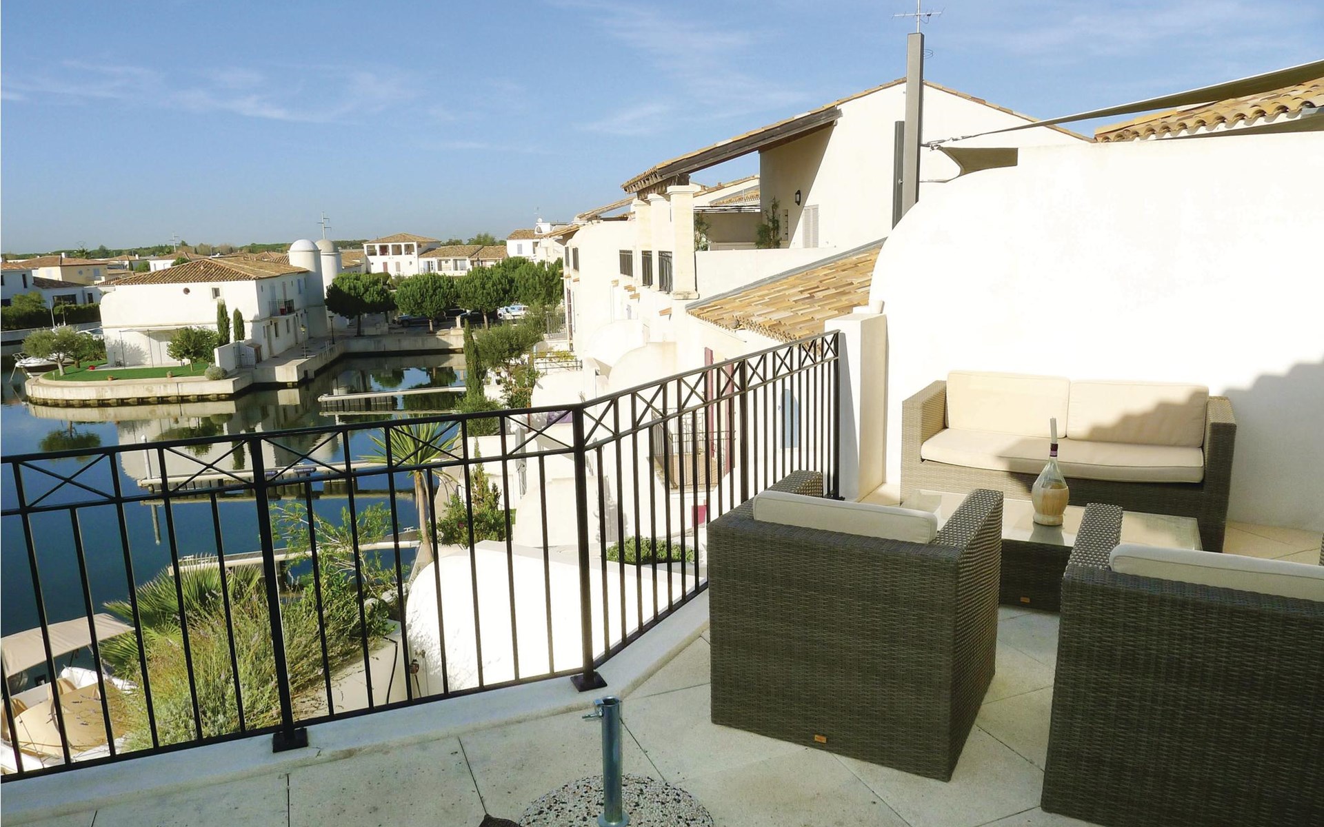 Geniet van dit prachtige vakantiehuis aan het water en op 8 km van de mediterrane stranden, in de rustige jachthaven van Aigues-Mortes in de Camargue.