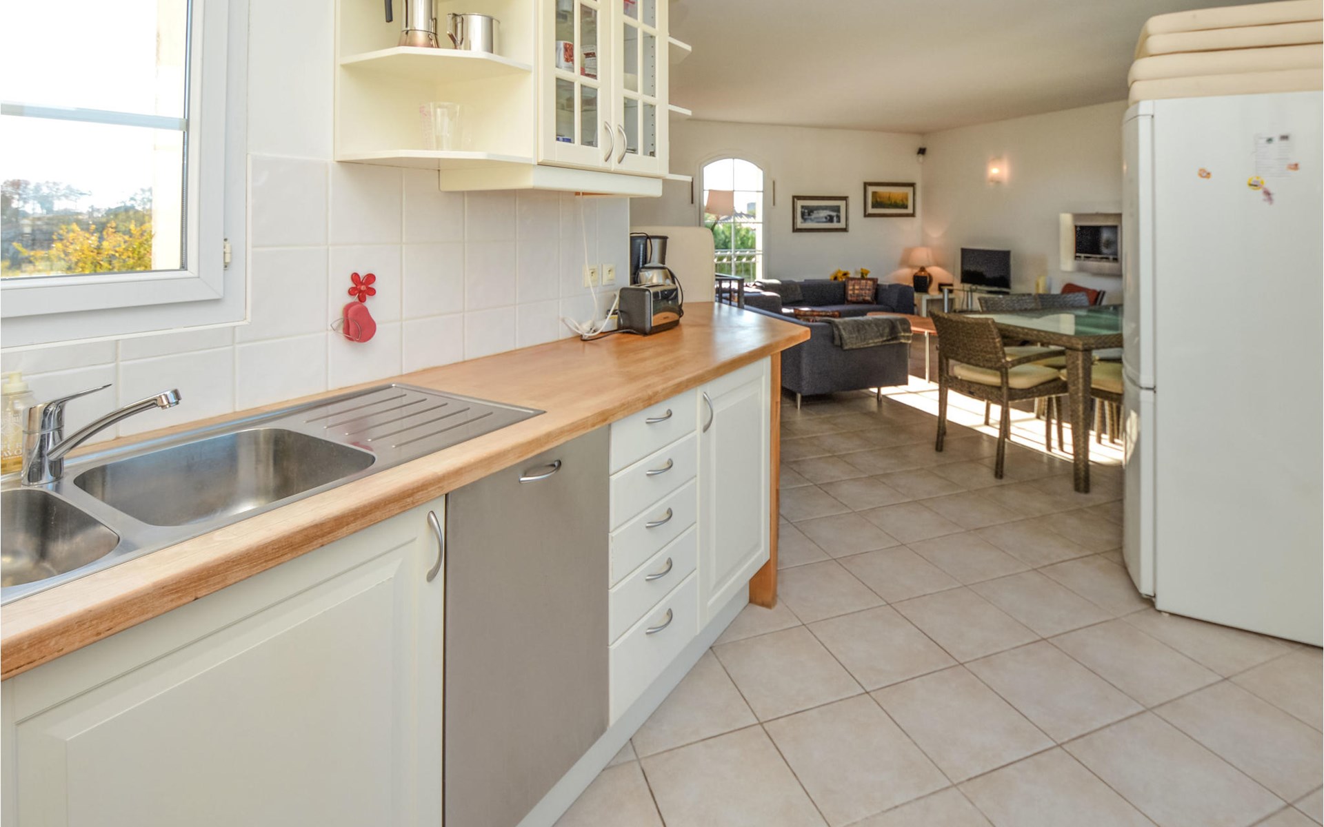 De flat ligt op minder dan een uur van de bruisende en historische steden Nîmes, Arles, Avignon en Montpellier. Raak in de ban van de unieke Carmague en ervaar hoe paarden, stieren en trekvogels rondspringen in de woeste vlakten en zoutpannen van dit regionale natuurpark, waar water en zon elkaar afwisselen.