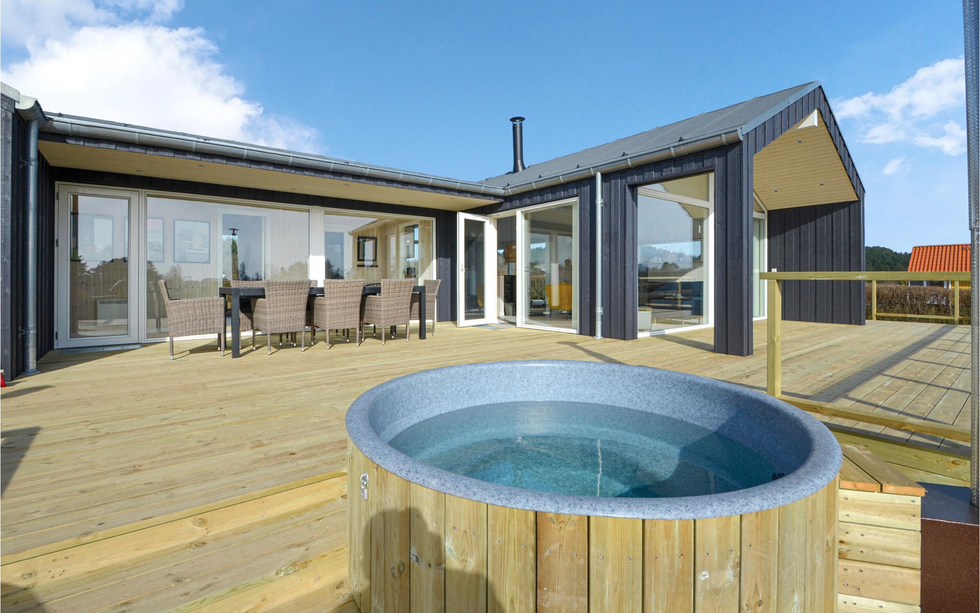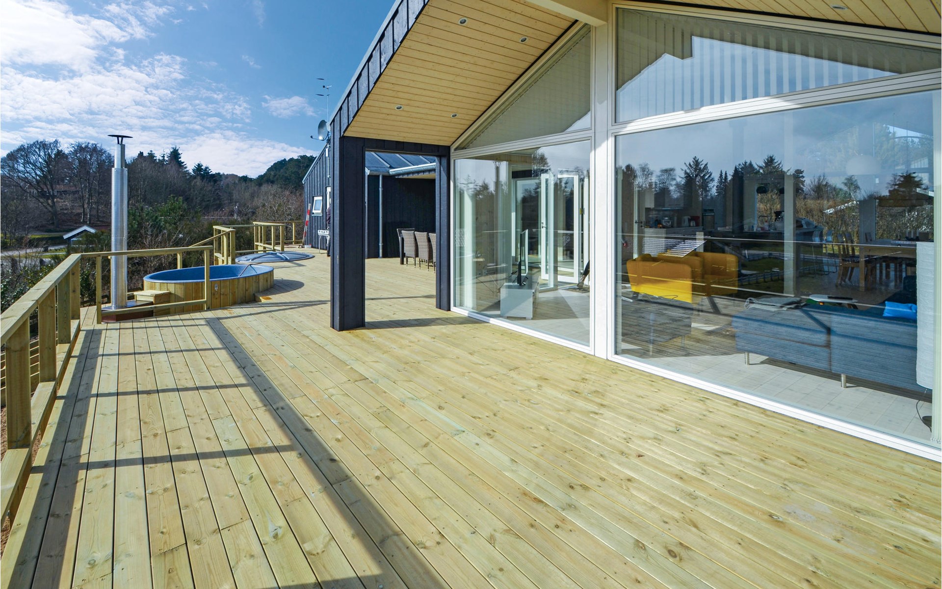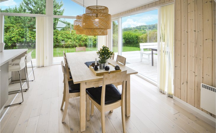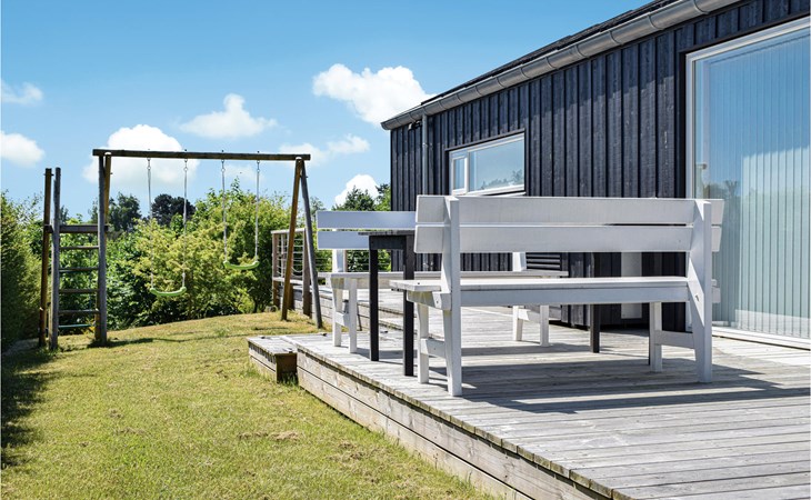 Modern en supermooi vakantiehuis met hoogwaardige inrichting. De inrichting is optimaal, er zijn ook 2 luxe badkamers, waarvan één de sauna herbergt. Binnen in het huis en in de tuin vindt u veel ruimte. Op het grote terras staat een Fins bad voor maximaal acht personen. Het vakantiehuis is hoog gelegen en biedt een prachtig uitzicht. Op loopafstand bevinden zich het strand, de kruidenier en diverse restaurants. Misschien wilt u het Nationaal Park Mols Bjerge of het dierenpark Ree bezoeken.