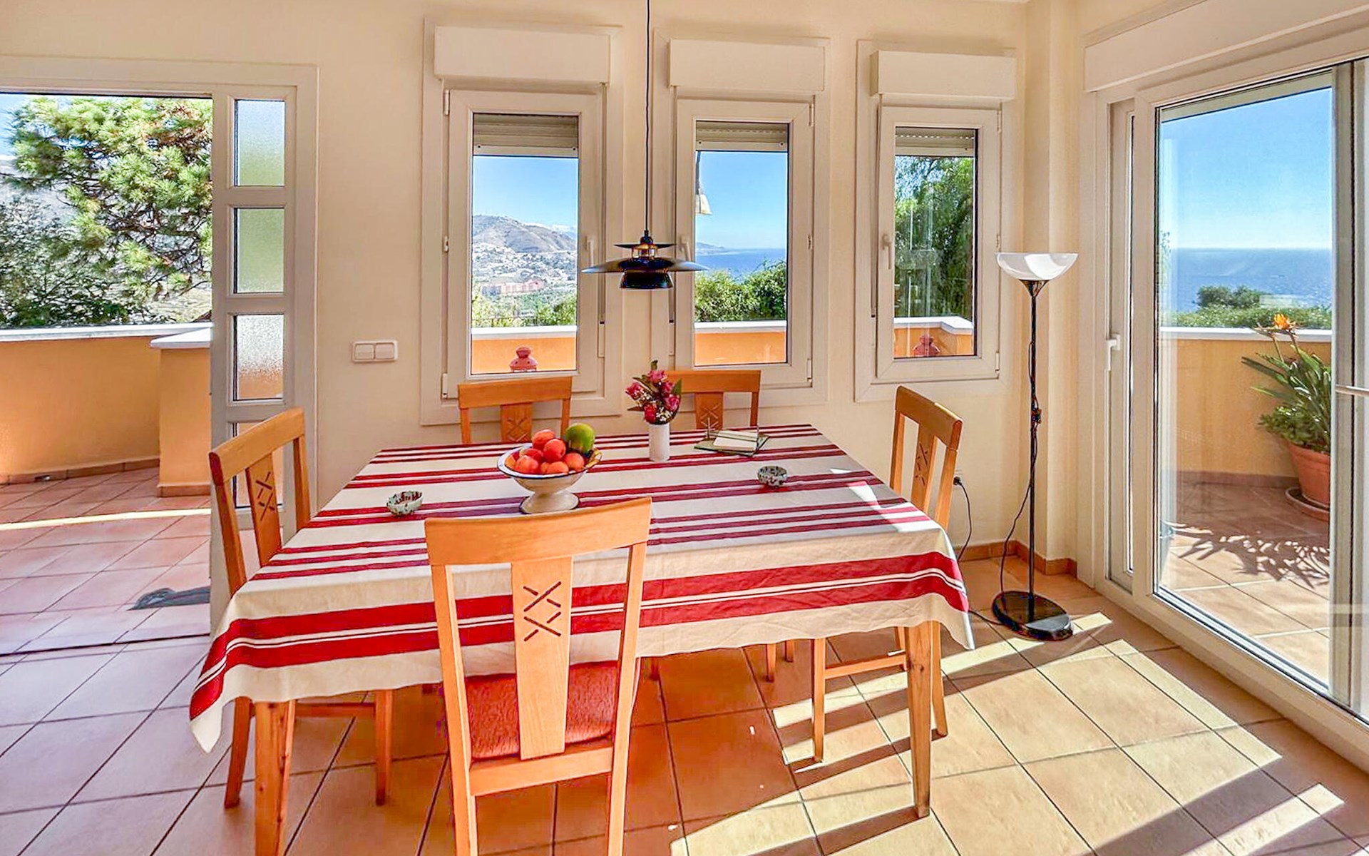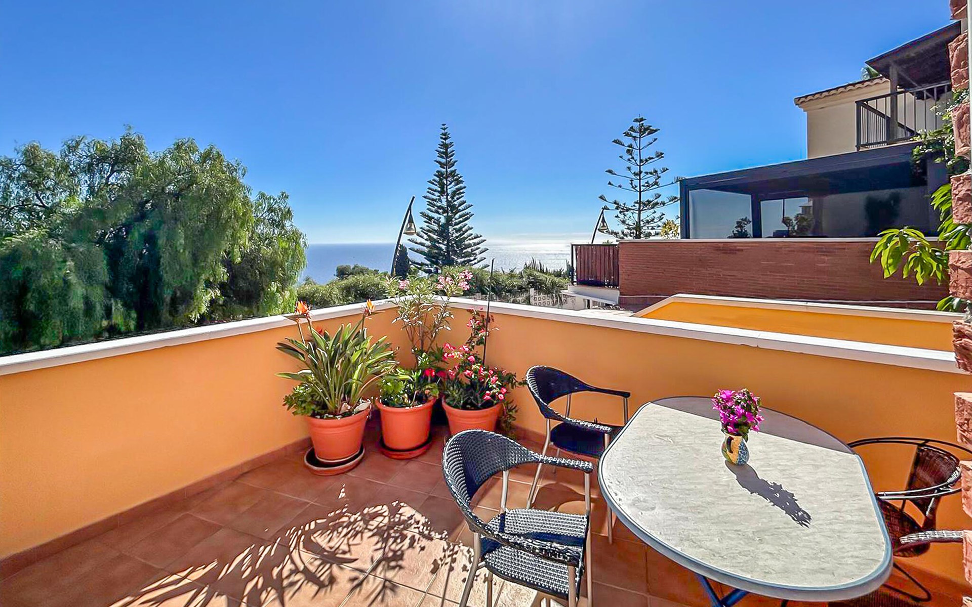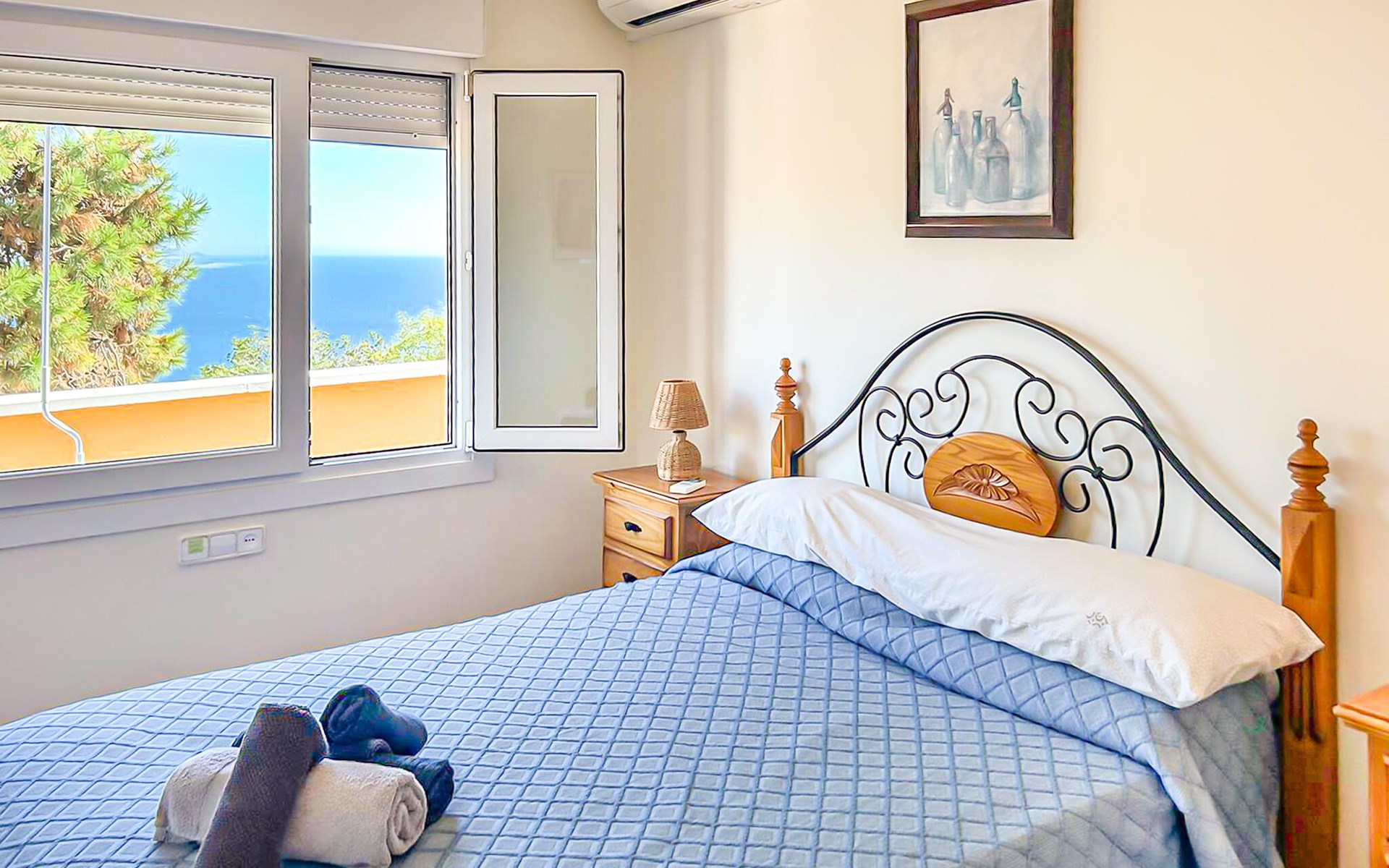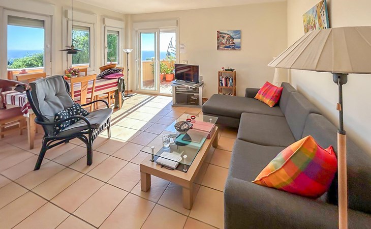 Breng een gezellige vakantie door in dit comfortabele vakantiehuis met uitzicht op zee en toegang tot het zwembad.