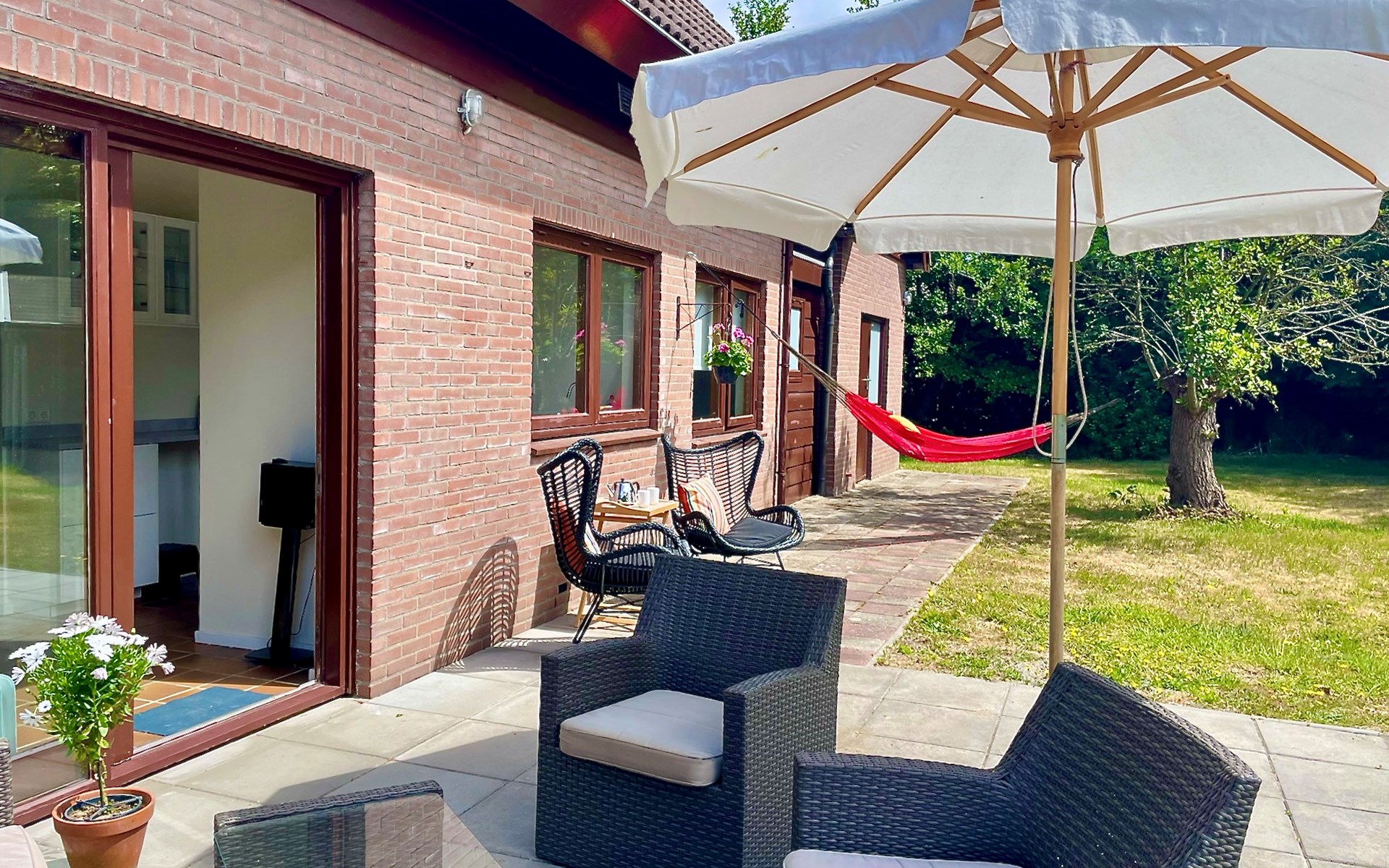 Das Ferienhaus mit seinem großen Garten ist ideal für Familien.