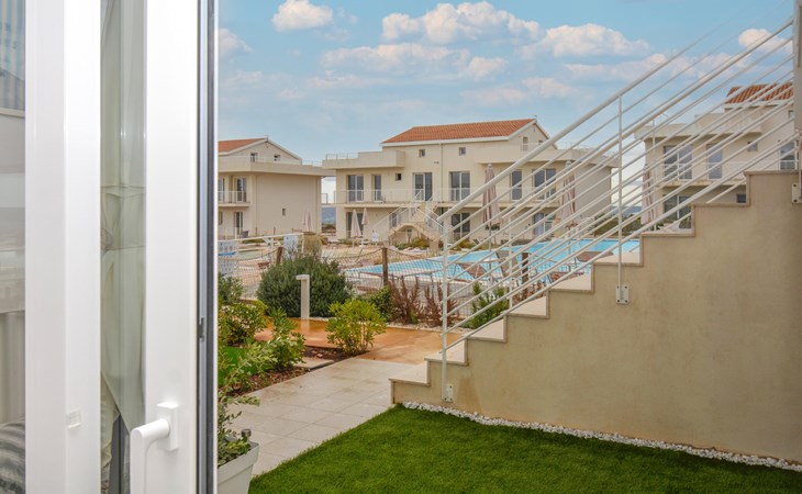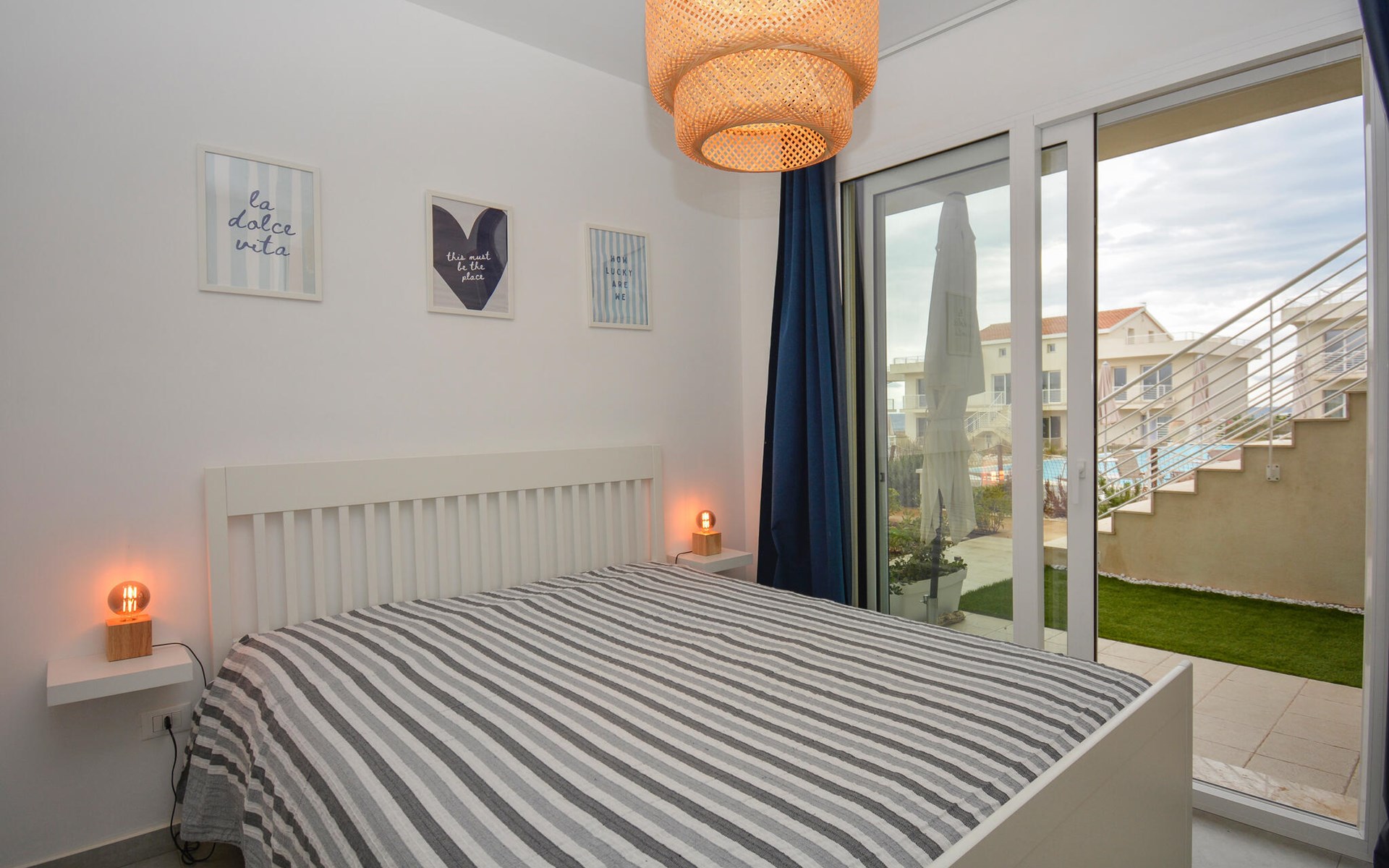 Stap naar buiten en neem plaats op je privéterras. Begin de ochtend met een ontbijt onder de luifel en laat je blik dwalen over het zwembad en de zee. Ontspan 's middags met een boek of sluit de dag af met een glas wijn. Maak gebruik van het ruime gemeenschappelijke zwembad voor een verfrissende duik en geniet van het goed onderhouden terrein, dat wordt omringd door olijfbomen en andere mediterrane planten.