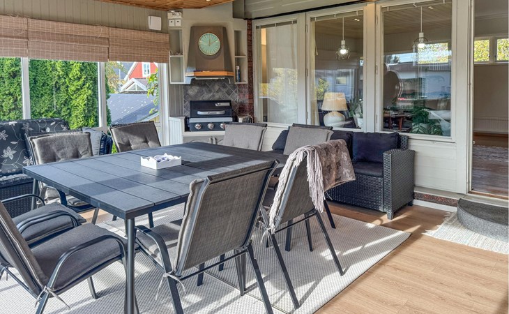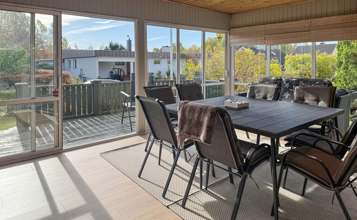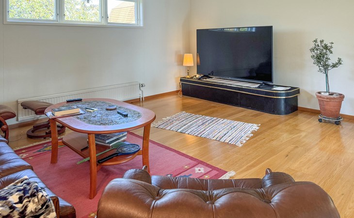 Geniet van rust en comfort in dit goed onderhouden vakantiehuis, dat indruk maakt met zijn smaakvolle inrichting en uitnodigende sfeer. Warme houten vloeren en stijlvolle meubels creëren een gezellige sfeer in de ruime woonkamer. Maak het jezelf gemakkelijk op de gezellige bank, kijk een film op de tv of lees in een rustige omgeving. De eethoek biedt ruimte voor gezamenlijke maaltijden, terwijl de mooie eetkeuken uitnodigt tot gezellige kookmomenten. Je kunt ook dineren in de serre, die door de grote ramen uitzicht biedt op de goed onderhouden tuin. Na een actieve dag zorgt de sauna voor gezellige warmte en ontspanning.