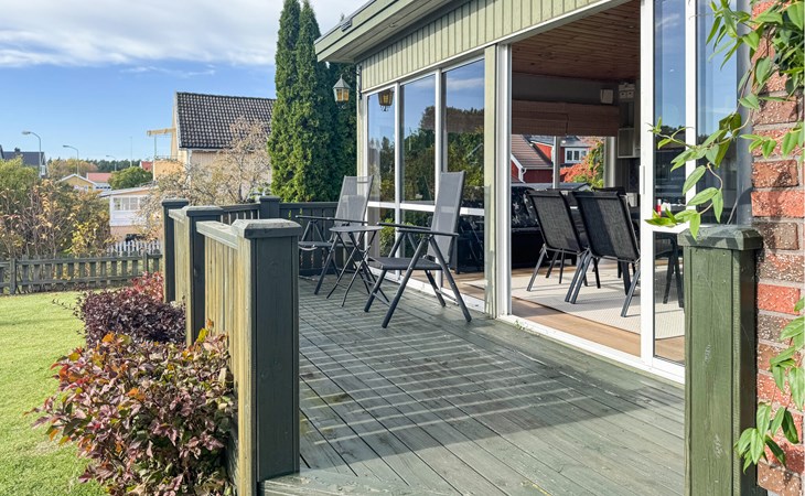 Stap het overdekte terras op en ontspan op het comfortabele tuinmeubilair of rond de dag af met een barbecue. Het ruime gazon nodigt kinderen uit om te spelen en volwassenen om te zonnebaden.