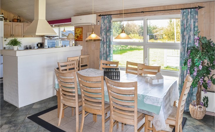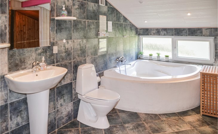 Dit mooie en kindvriendelijke vakantiehuis met houten massagebad en sauna ligt op een gedeeltelijk afgesloten natuurperceel op slechts 20 minuten lopen van een 18-holes golfbaan, een manege en de natuurparel Blåbjerg Plantage voor prachtige natuurervaringen. De woonkamer met toegang tot het grote terras op het zuiden en de slaapkamers zijn ruim. Een fietspad leidt naar het Noordzeestrand, Henne Strand, naar verluidt het beste aan de Noordzee. U kunt ook fietsen naar het Filsø natuurreservaat. Voor het diner raden we het gastronomische restaurant Henne Kirkeby Kro aan.