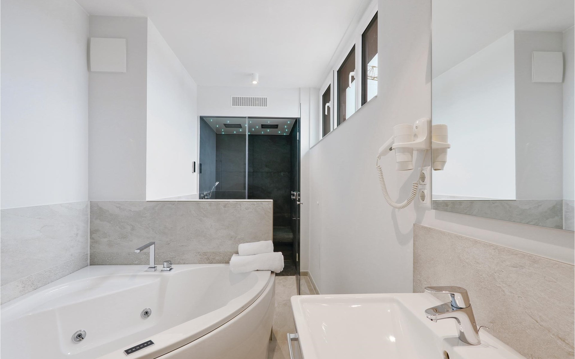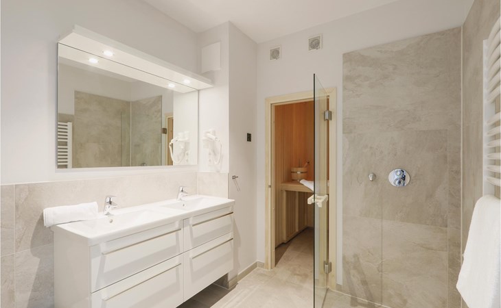 De vier aparte slaapkamers hebben elk een gezellig tweepersoonsbed. Het penthouse op de 4e verdieping is stijlvol en modern ingericht, alle kamers zijn licht en helder. De keuken en het woongedeelte bevinden zich in één ruimte. De eerste badkamer heeft een dubbele regendouche, stoombad en whirlpool. In de tweede badkamer kun je opwarmen in de sauna na een lange wandeling in de koele lucht van de Baltische Zee.