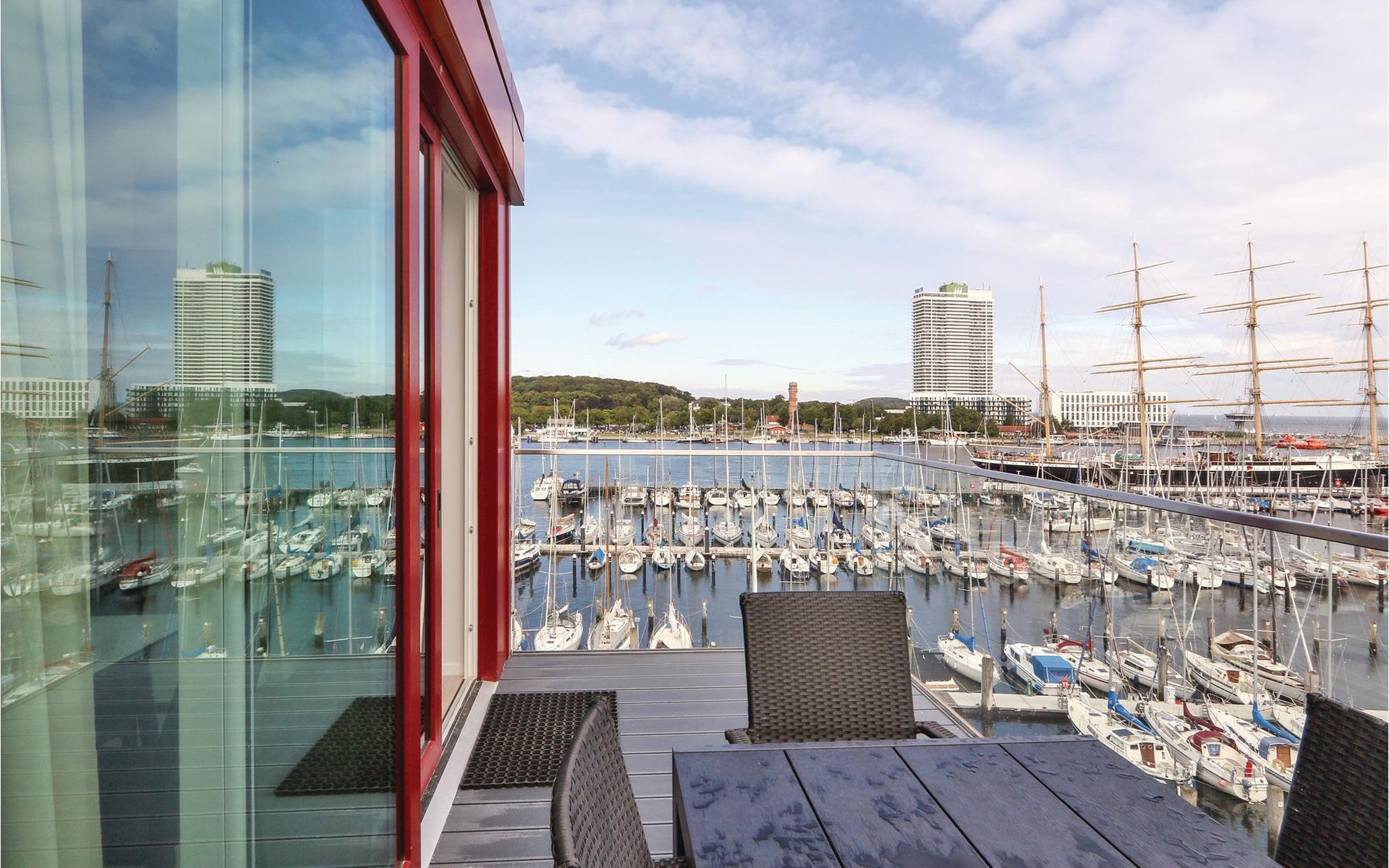 s Ochtends kun je met het hele gezin ontbijten op het balkon. Op de 4e verdieping heb je een prachtig uitzicht op de glinsterende golven van de Oostzee en de haveningang met de voorbijvarende schepen.