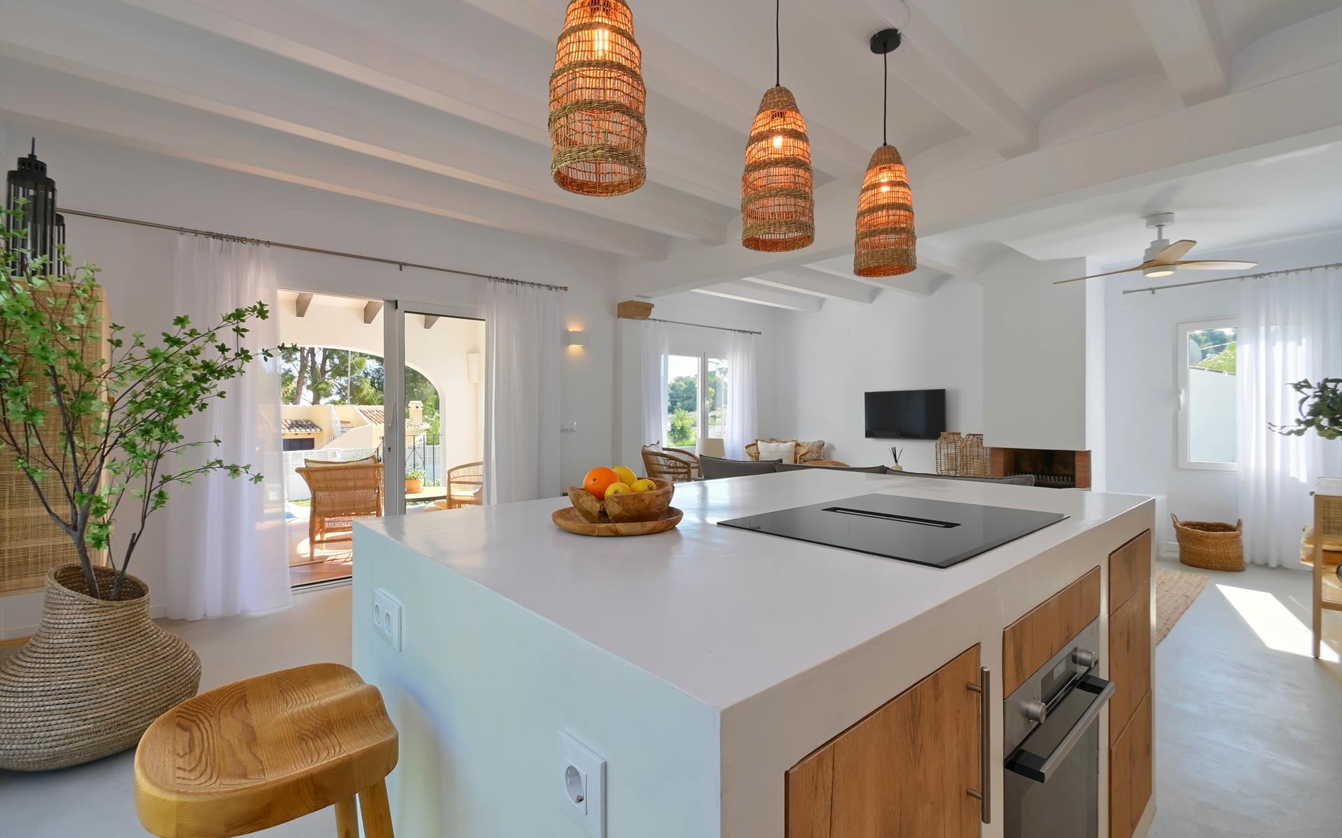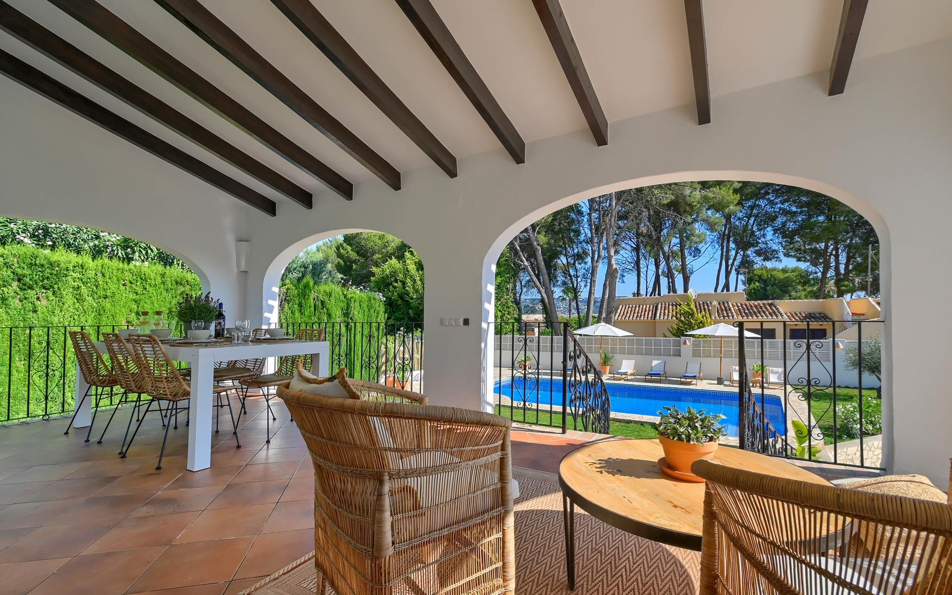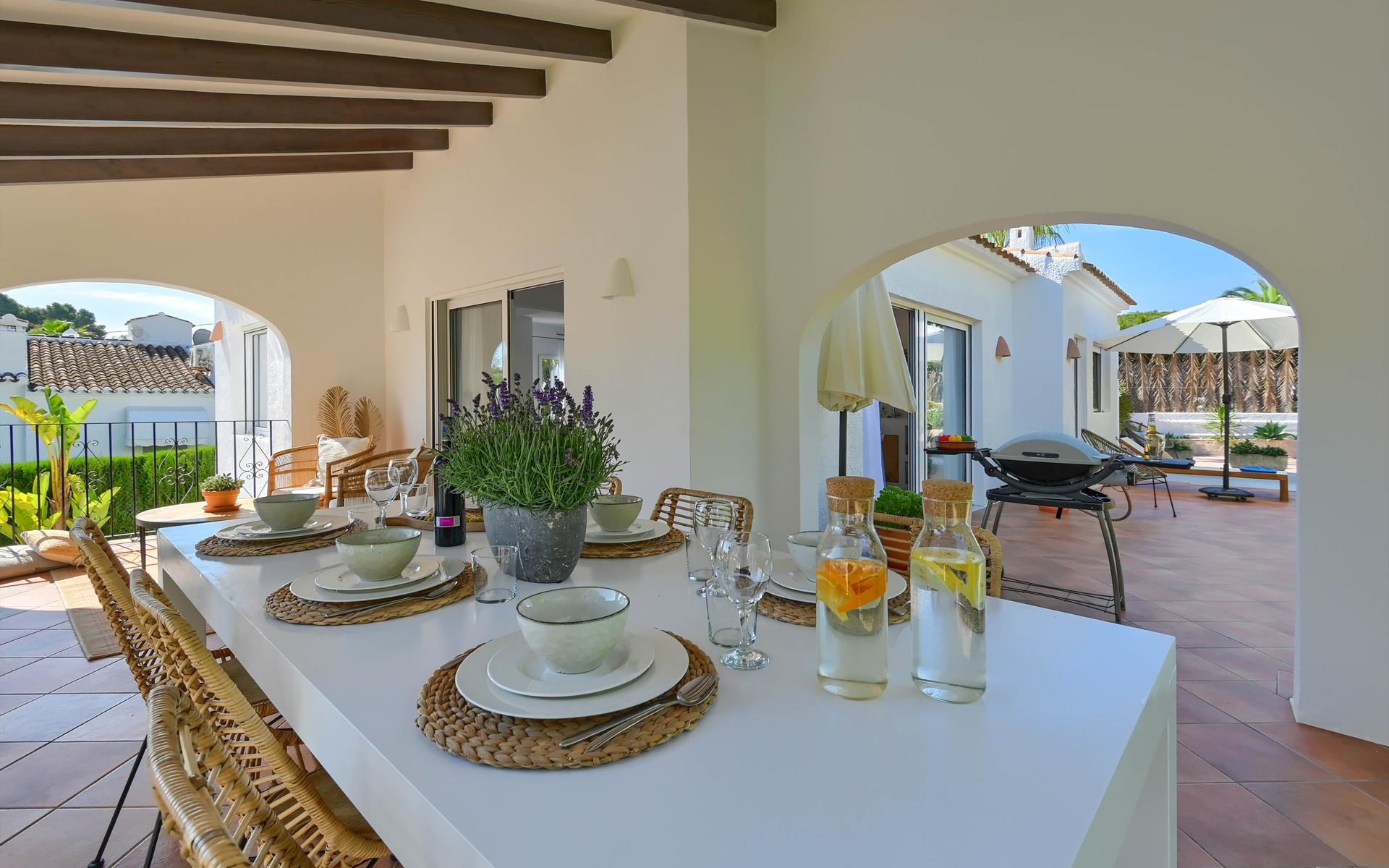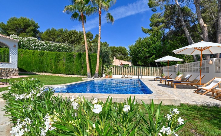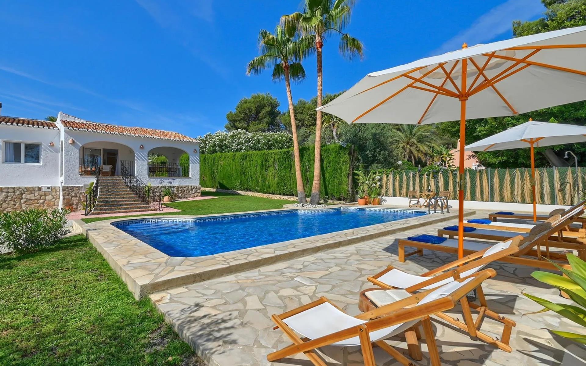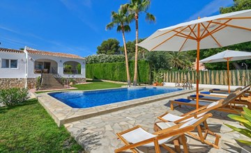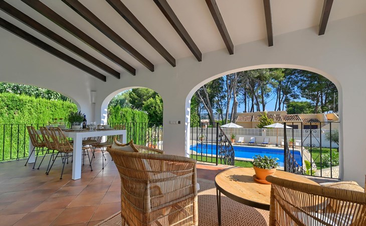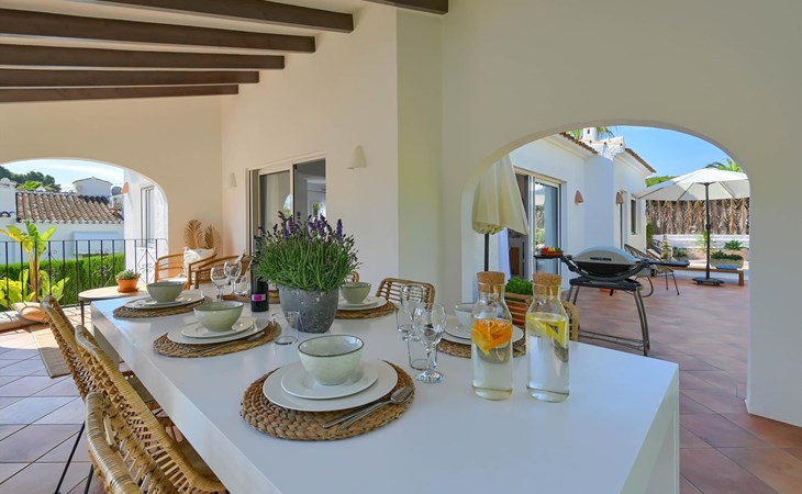 Moderne en gezellige villa met privé zwembad in Javea, Costa Blanca, Spanje voor 6 personen. De vakantievilla ligt in een residentiële omgeving en op 2 km van het strand van El Arenal, Javea.