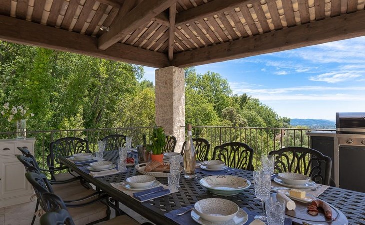 Prachtige en luxe villa in Spéracèdes, aan de Cote d'Azur, Frankrijk met verwarmd zwembad voor 14 personen. De vakantievilla ligt in een heuvelachtige, landelijke en bosrijke omgeving. De accommodatie biedt veel privacy, een mooie tuin met gazon, gravel en bomen, een prachtig verwarmd zwembad en prachtig uitzicht op het dal, het platteland en de bergen. Het comfort en de nabijheid van gelegenheden om te winkelen, mogelijkheden om te sporten en uitgaansgelegenheden maken dit een ideale villa voor uw vakantie in Frankrijk met familie of vrienden.