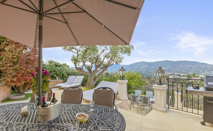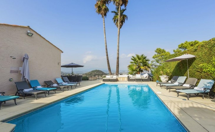 Prachtige en luxe villa in Theoule sur mer, aan de Cote d'Azur, Frankrijk met verwarmd zwembad voor 12 personen. De villa ligt in een heuvelachtige en residentiële omgeving, dichtbij restaurants en bars, winkels, supermarkten en een tennisbaan en op 500 m van het strand van Suveret.