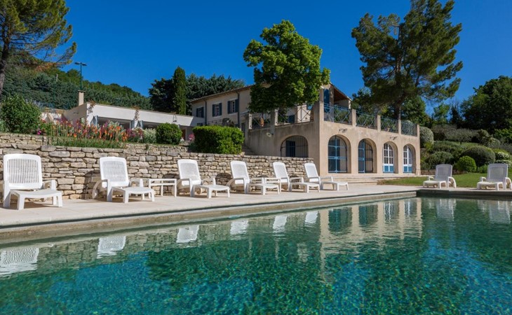 Mooie en comfortabele villa met privé zwembad in Apt, in de Provence, Frankrijk voor 16 personen. De vakantievilla ligt in een heuvelachtige en landelijke omgeving.