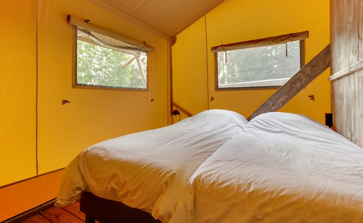 Dichter bij de natuur kun je niet komen in deze comfortabel uitgeruste Duin Lodge. Deze knusse safaritent biedt plek aan vijf personen en zijn ingericht met natuurlijke materialen. De kamers worden van elkaar gescheiden door stevige wanden. Er is één kleine badkamer met douche en toilet aanwezig.