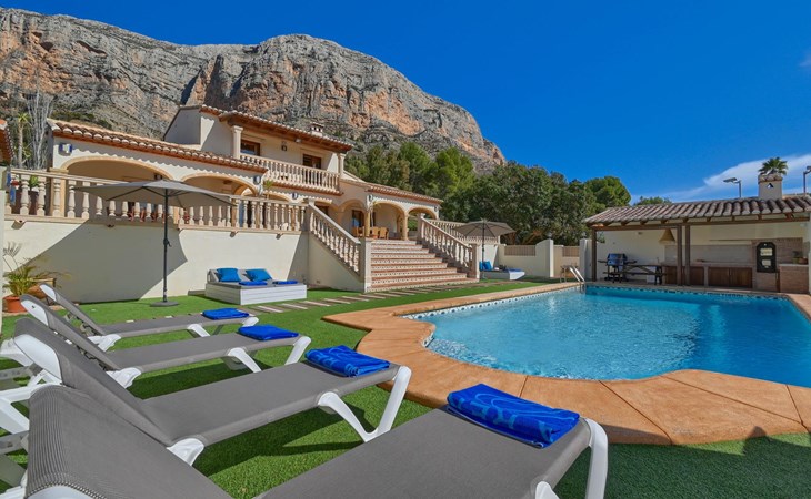 Prachtige en comfortabele villa met privé zwembad in Javea, Costa Blanca, Spanje voor 6 personen. De vakantievilla ligt in een residentiële omgeving en op 4 km van het strand van La Grava, Javea.