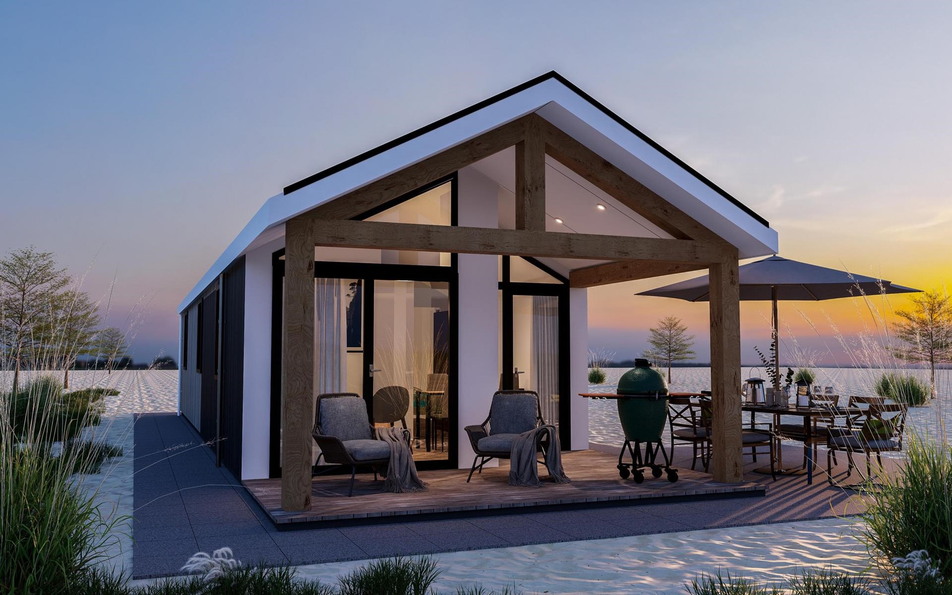 Met drie slaapkamers en een royaal woonoppervlak van circa 64m2 biedt deze exclusieve recreatiewoning voldoende ruimte voor een groep van zes personen. Speciaal ontwikkeld voor de kust, is de Duinhelm bestand tegen de zilte omgeving, waardoor je zorgeloos van je vakantie kunt genieten.