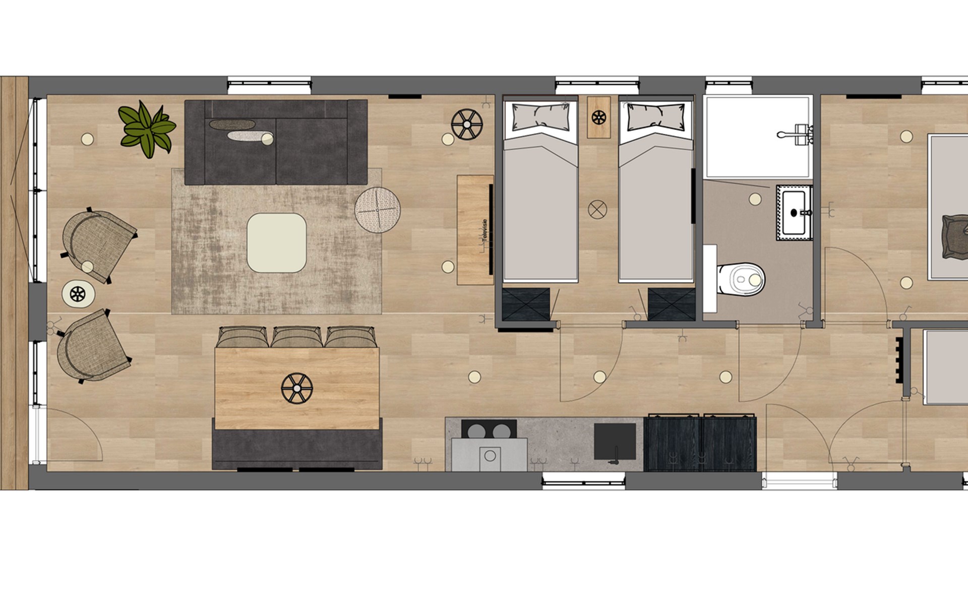 Ontdek de luxe van het Duinhelm-type, de ruimste woning op ons park, geschikt voor zes personen. Met een Zeeuws ontwerp en gebouwd door een Nederlandse fabrikant, is deze woning 100% Nederlands vakmanschap. Ervaar het hele jaar door comfort in dit sfeervolle en duurzame chalet, perfect geïsoleerd en uitgerust met kunststof kozijnen en dubbel glas.
