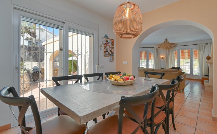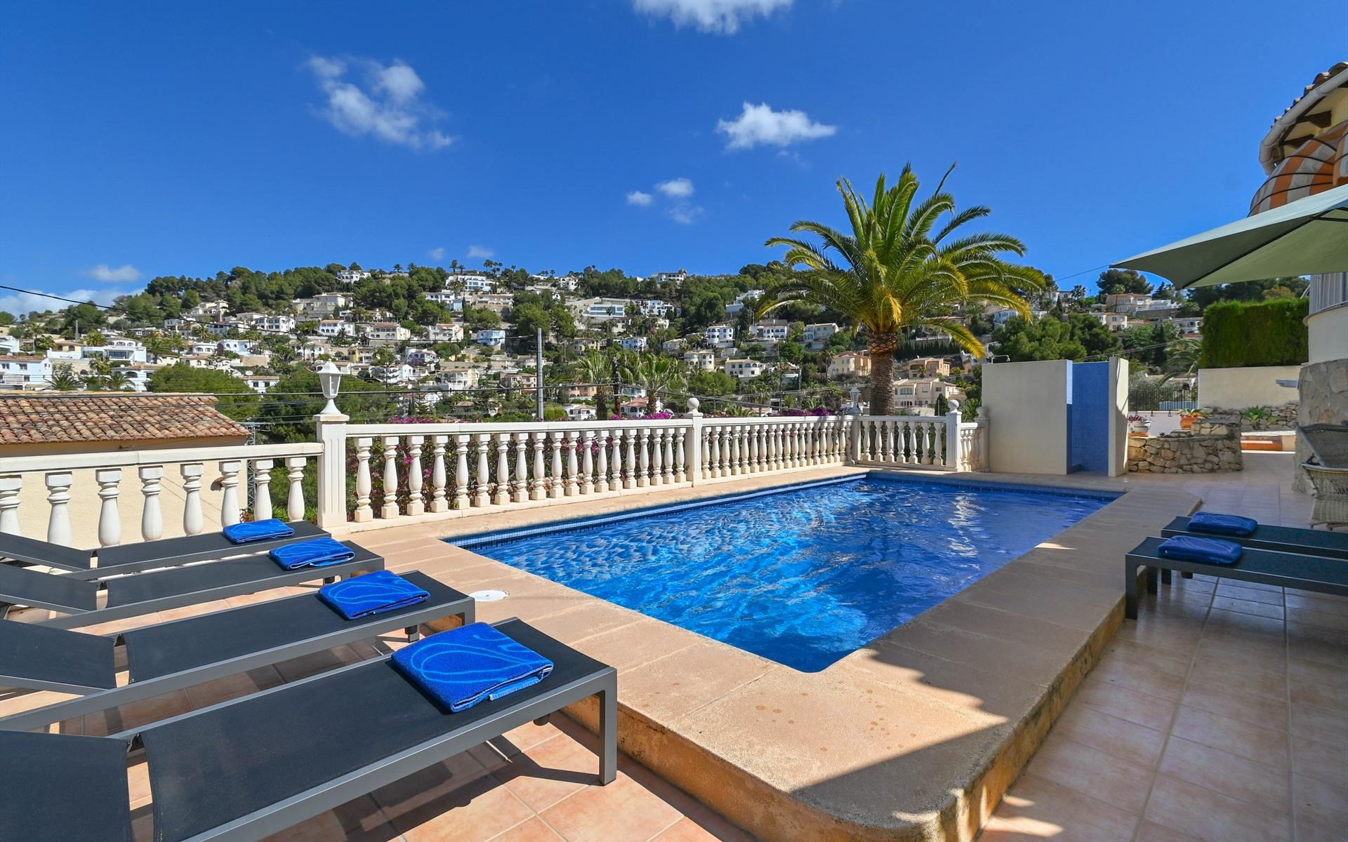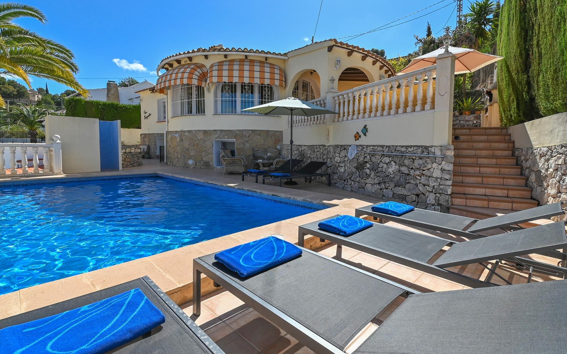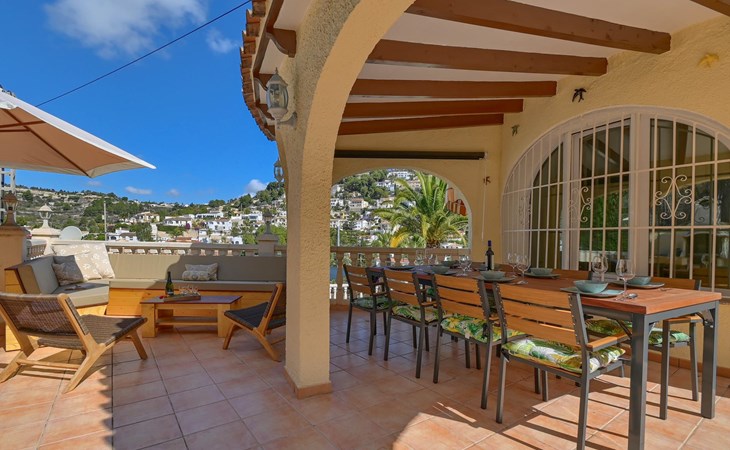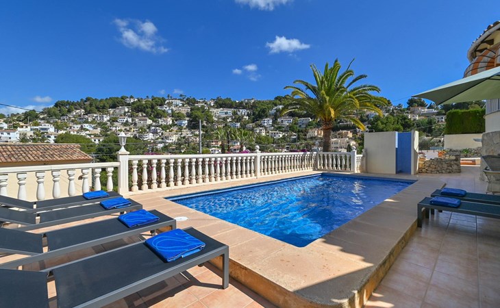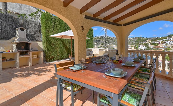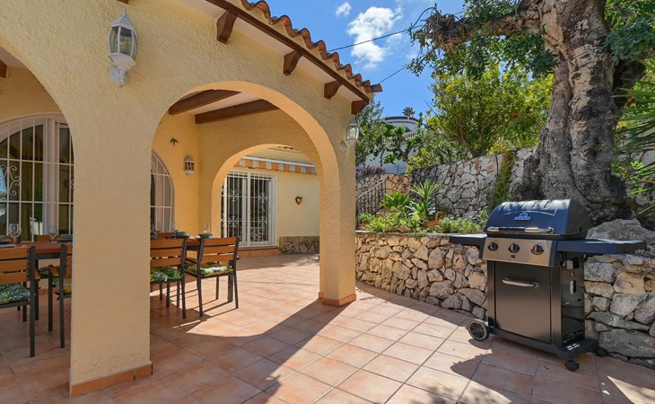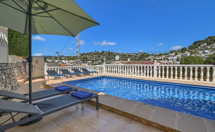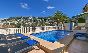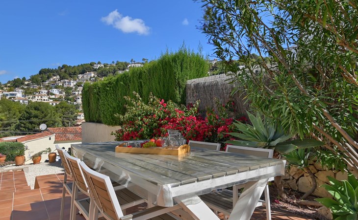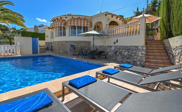 Mooie en gezellige villa met privé zwembad in Benissa, Costa Blanca, Spanje voor 6 personen. De vakantievilla ligt in een heuvelachtige en residentiële omgeving, op 2 km van het strand van Cala Baladrar en op 5 km van Moraira.