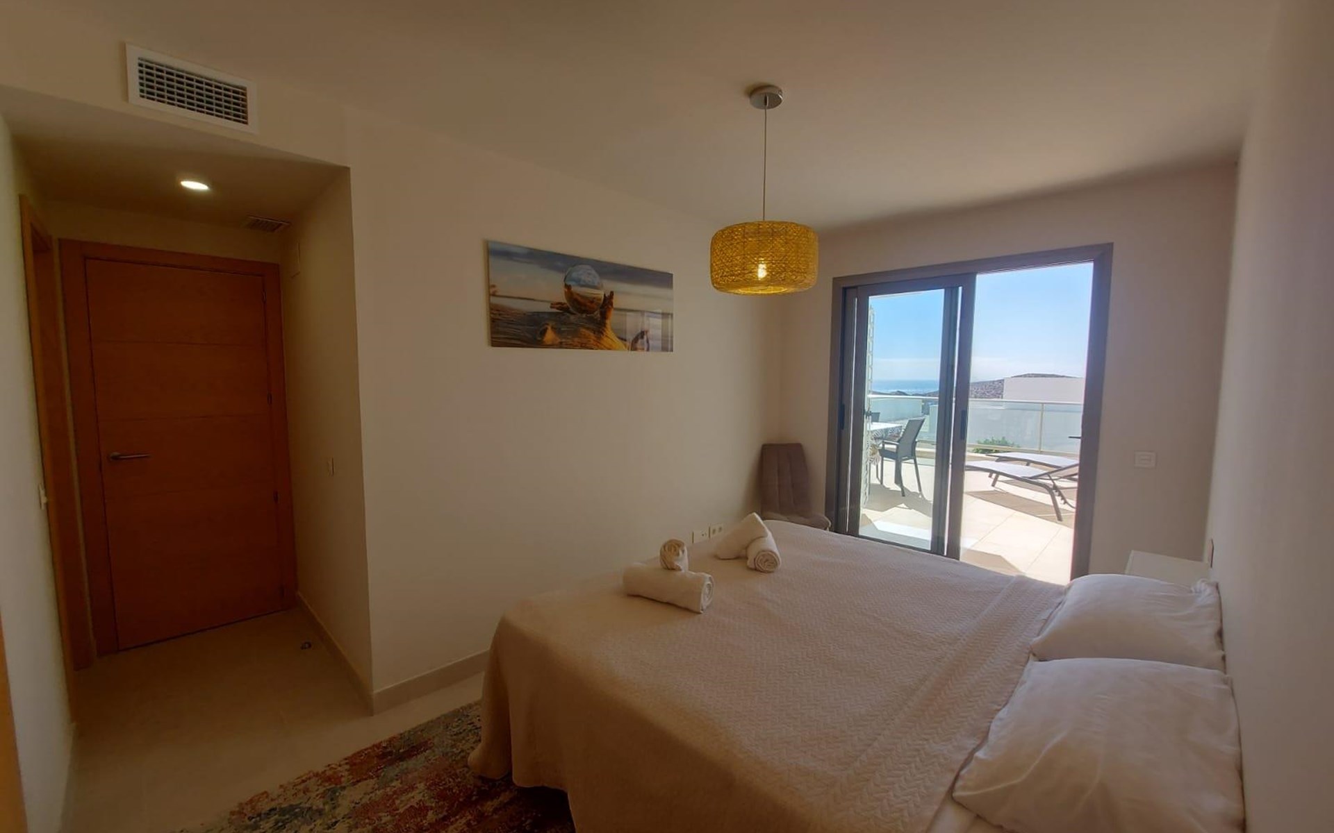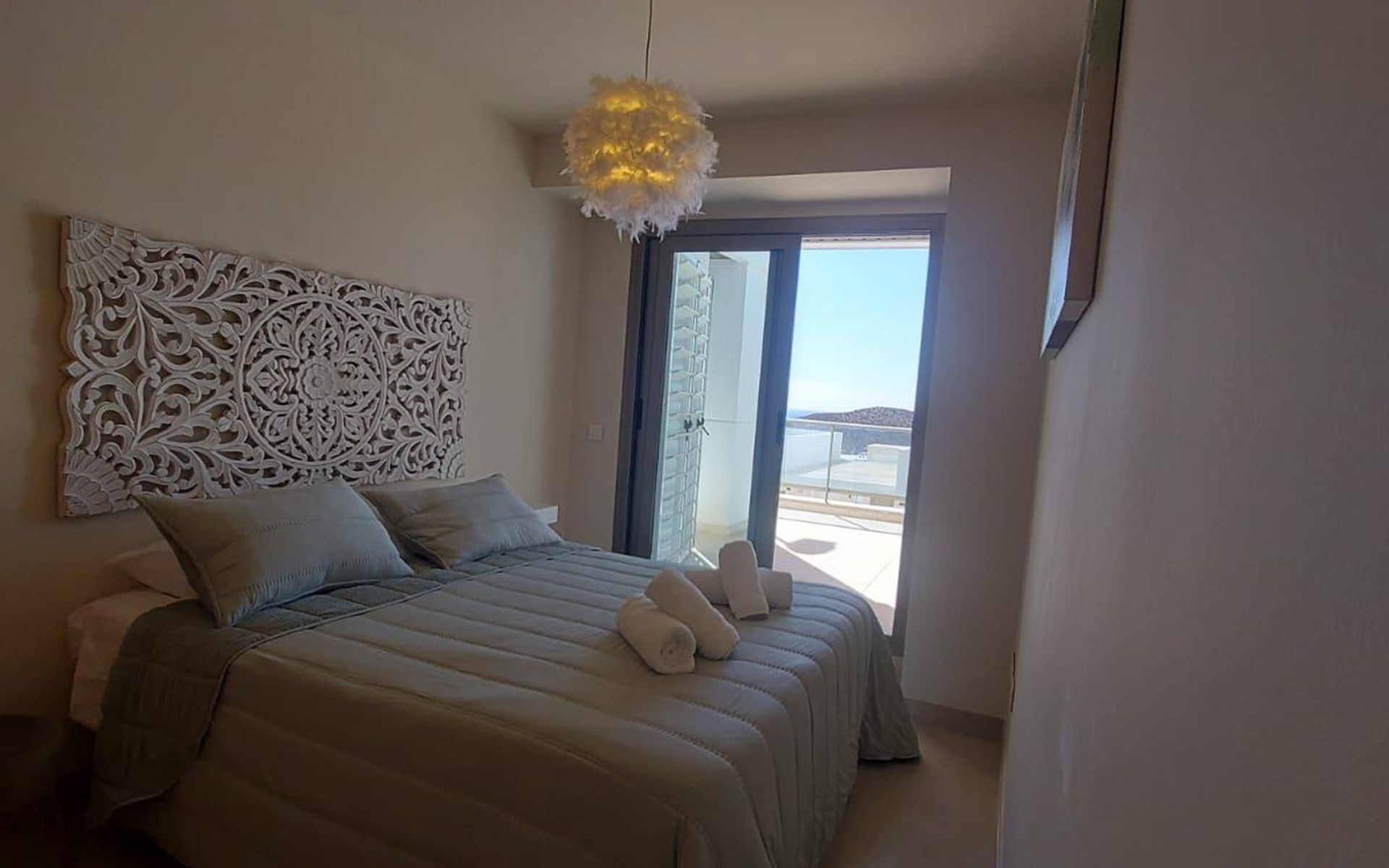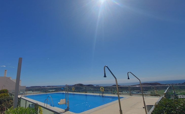 De woning heeft 3 slaapkamers en 2 badkamers. De accommodatie biedt een gemeenschappelijke tuin met gazon, prachtig uitzicht op de golfbaan en mooi uitzicht op de baai, de zee, het dal, de bergen, het zwembad en de tuin. De nabijheid van het strand, mogelijkheden om te sporten, bezienswaardigheden en cultuur maakt dit een geschikt appartement voor uw vakantie in Spanje met familie of vrienden.