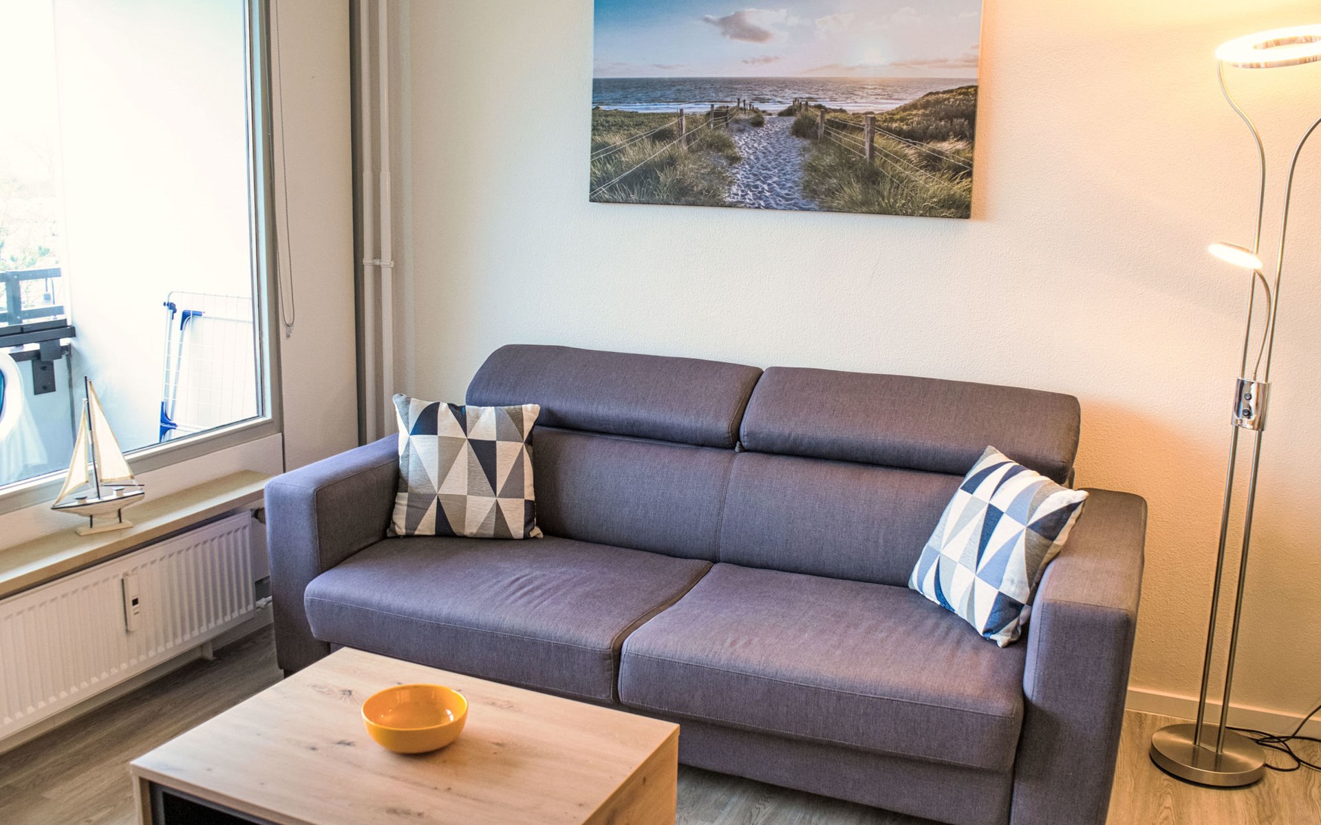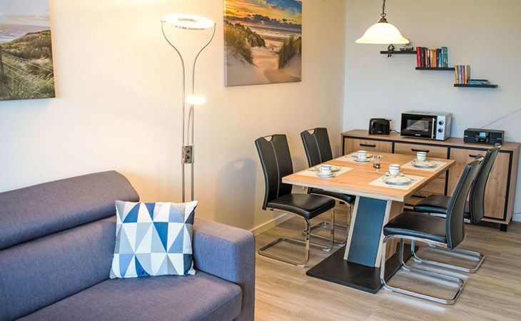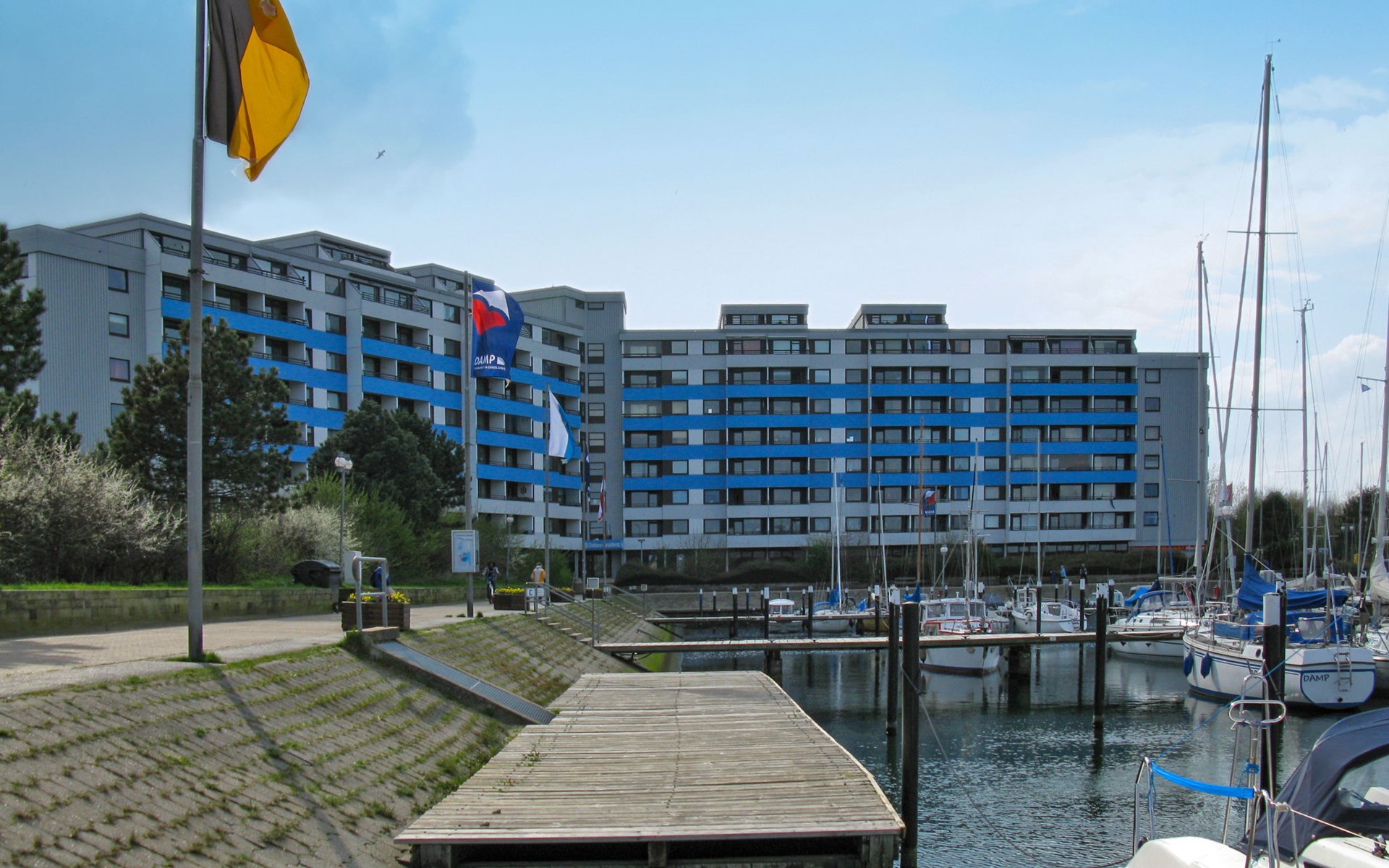 Vakantiecomplex "Ostsee Residenz", van 7 verdiepingen. In het centrum van Damp, 20 km van het centrum van Eckernförde, 40 km van het centrum van Schleswig, 100 m van zee, directe toegang tot het strand. Voor medegebruik: kinderspeelplaats. In het complex: restaurant, bar, fitnessruimte (extra). Bowlingbaan, tafeltennis (alles extra), winkel, boetiek, lift, centrale verwarming, fietsverhuur. Parkeerplaats op 100 m. Supermarkt, restaurant, bakkerij, bushalte 100 m, zandstrand 150 m, overdekt zwembad 300 m. Jachthaven 100 m, golfterrein (18 holes) 1 km, tennis 1 km, midgetgolf 300 m, manege 1 km. Kinderopvang mogelijk (extra). Nachtclub/disco in de buurt.