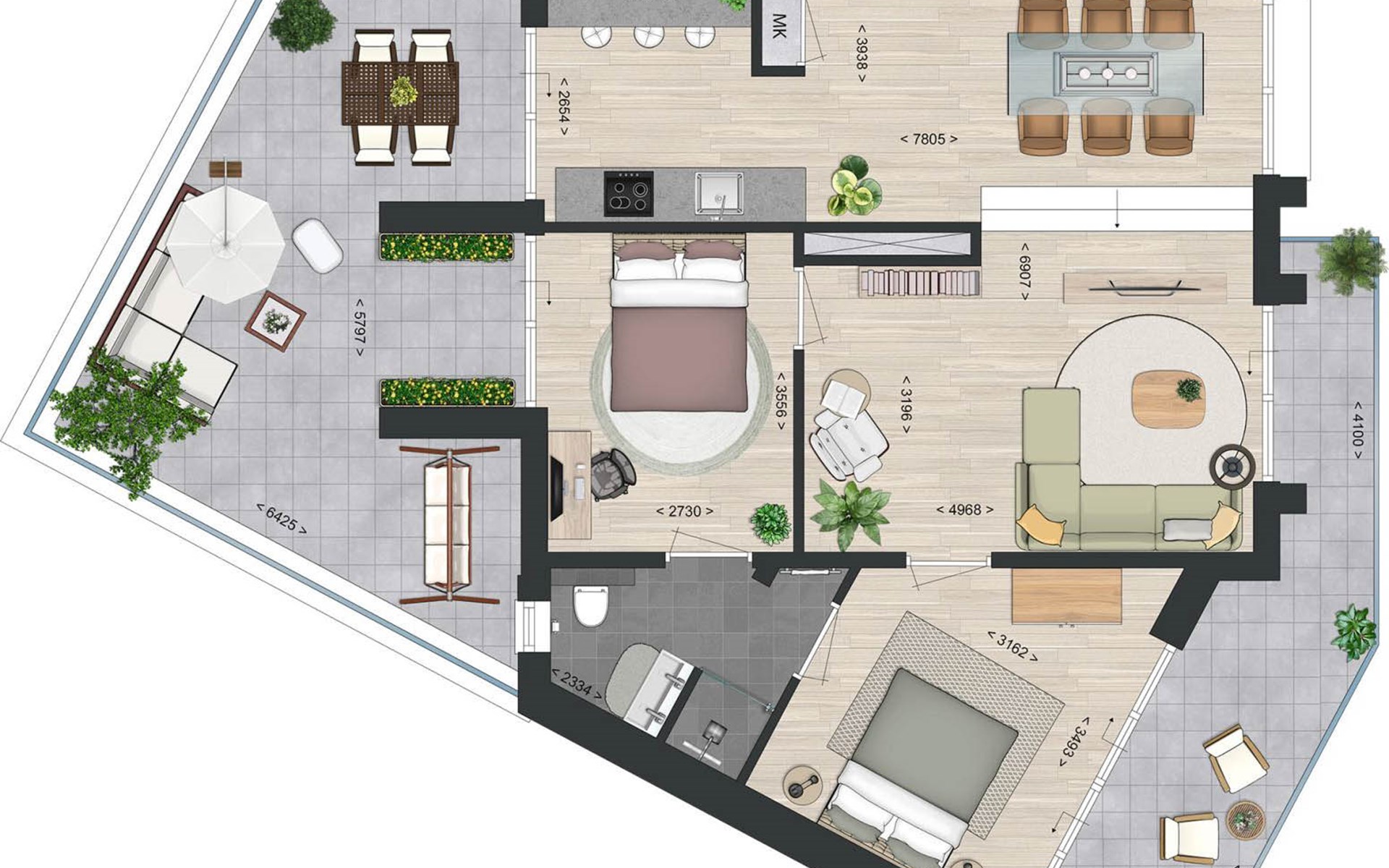 Het appartement beschikt over twee balkons met een totale oppervlakte van 34 m². Aan beide zijden van het appartement is een balkon, zodat je altijd kunt genieten van de zon of de schaduw. Op het balkon aan de zuidzijde/havenzijde staat een fijne tuinset met zes stoelen en vier ligbedden. En op het balkon aan de noordzijde/strandzijde vind je een gezellige koffietafel met twee stoelen.