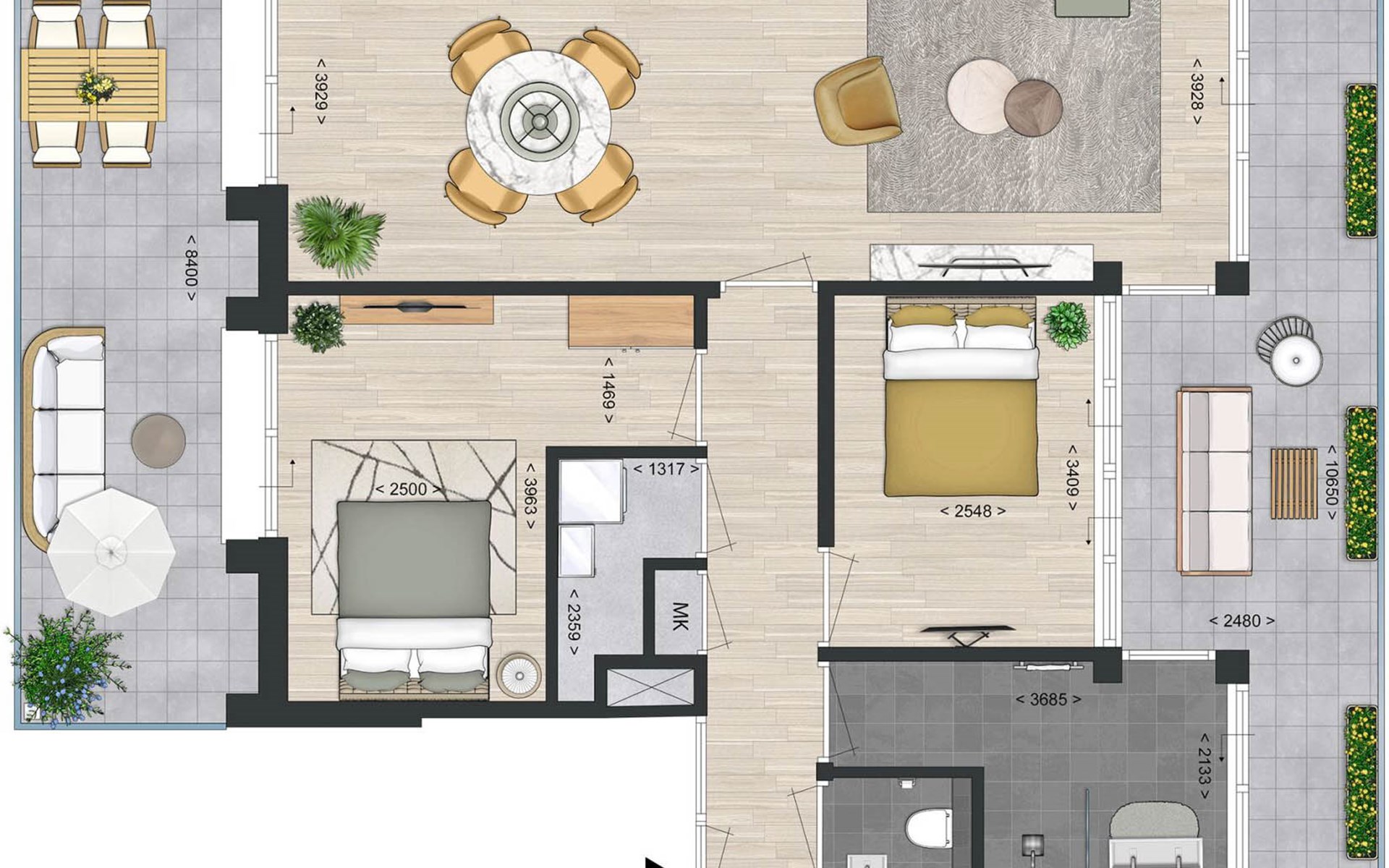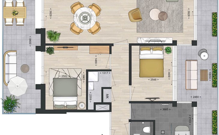 Met twee balkons van in totaal 34 m² kun je zowel aan de zuid- als noordzijde genieten van het buitenleven. Het balkon aan de zuidzijde heeft een tuinset met vier stoelen en uitzicht over de haven, terwijl het balkon aan de noordzijde een koffietafel met twee stoelen biedt met een prachtig uitzicht over de Oosterschelde.