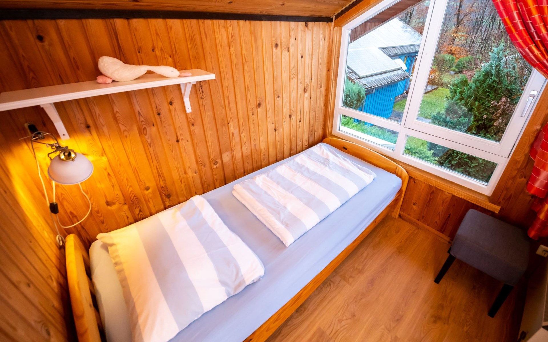 Rott 7 km van Bösingfeld: Vakantiedorp "Ferienpark Extertal". Buiten de plaats, rustige, zonnige ligging. Parkeerplaats op 20 m. Winkel 7 km, levensmiddelenwinkel 7 km, supermarkt 7 km, restaurant 7 km, bushalte 200 m, treinstation "Rinteln" 11 km, openluchtzwembad 10 km, overdekt zwembad 10 km. Golfterrein (18 holes) 19 km, manege 15 km. Bekende meren kunnen gemakkelijk worden bereikt: Doktorsee 12 km. Auto noodzakelijk.