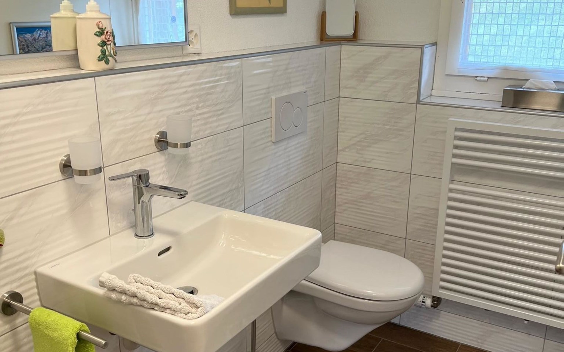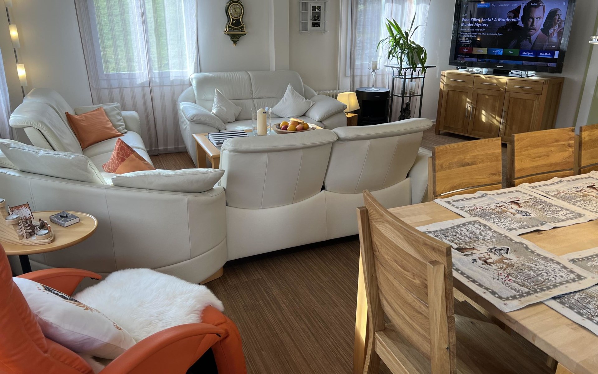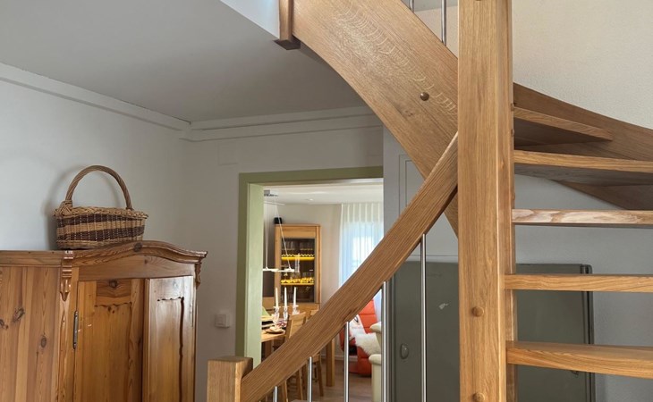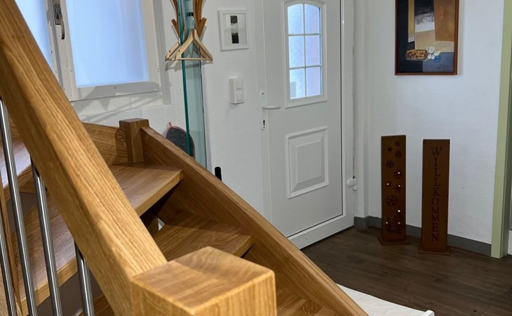 Holiday apartment with modern kitchen, TV/audio/W-LAN, 2 bed rooms with each 2 beds, 1 bed room with 3 beds, 1 bed room with 1 bed, living room, dressing room, 2 bathrooms with whirlpool and wellness shower, 1 separte toilette, privat laundry room, Barbecue, table tennis, football box.