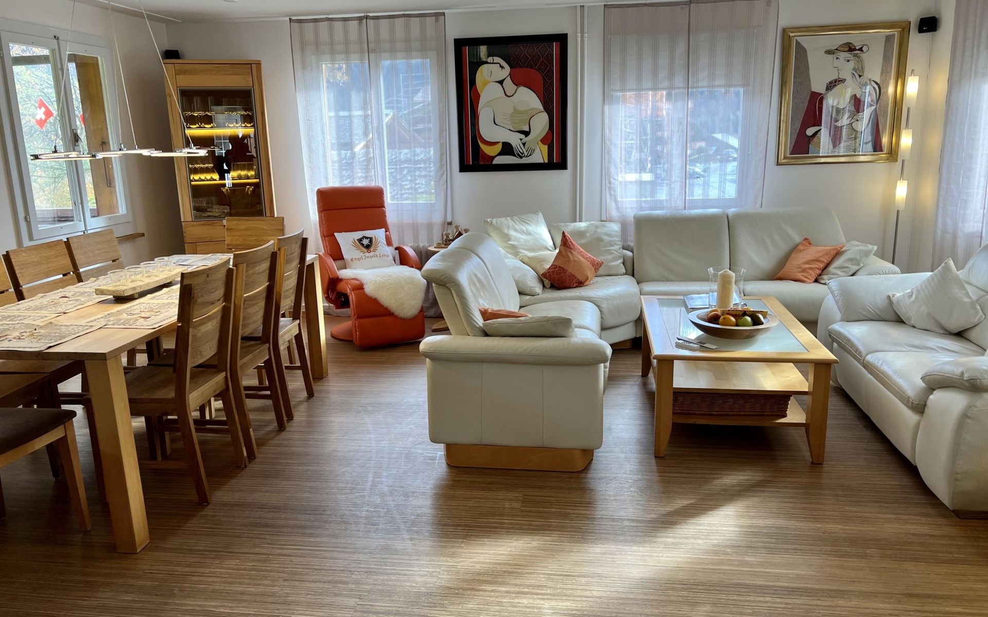 Kitchen, bathroom and bed linen, kitchen cleaning products/soaps free of charge, other additional costs such as electricity, water, heating, W-lan, TV, parking, bed linen CHF 25.00 per person and final cleaning CHF 250.00 as well as taxes are included in the total price. Breakfast optons and extra bed offers for children and adults please contact us directly www.engelingoldlodge.ch / info@engelingoldlodge.ch.