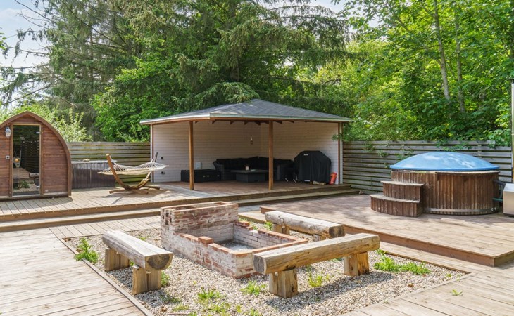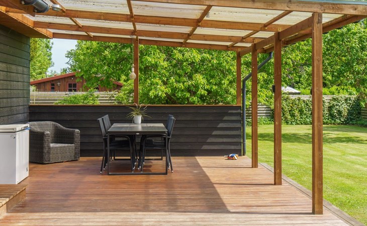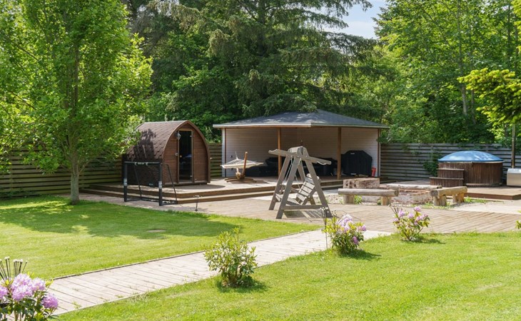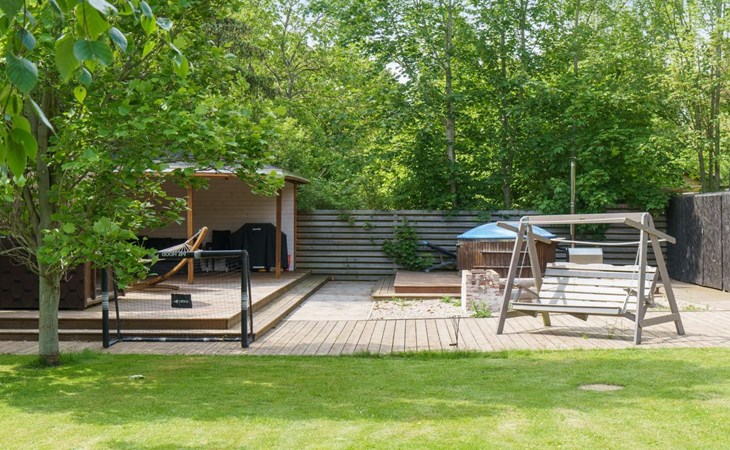 Eengezinswoning, bouwjaar 1967. 11 km van zee. Voor medegebruik: tuin. Voor alleengebruik: terrein 1.461 m2, verzorgde tuin (omheind). Terras (100 m2), barbecue. In het huis: trampoline, wasmachine, droger. Parkeerplaats bij het huis. Levensmiddelenwinkel 4.7 km. Golfterrein 12 km. De eigenaar accepteert geen jeugdgroepen.