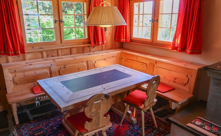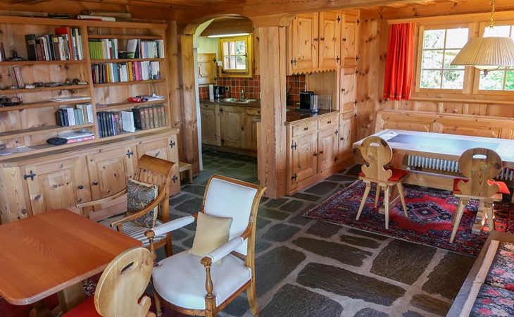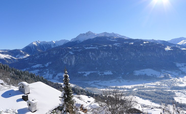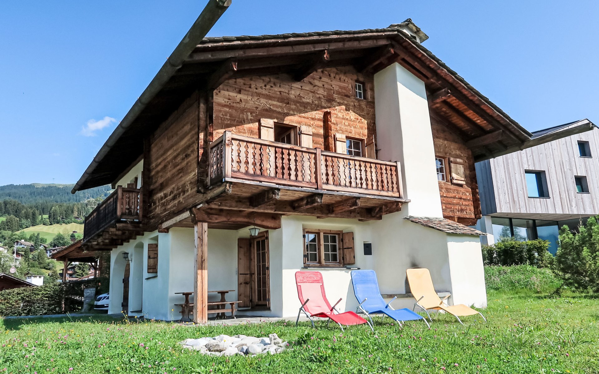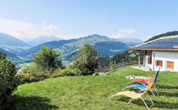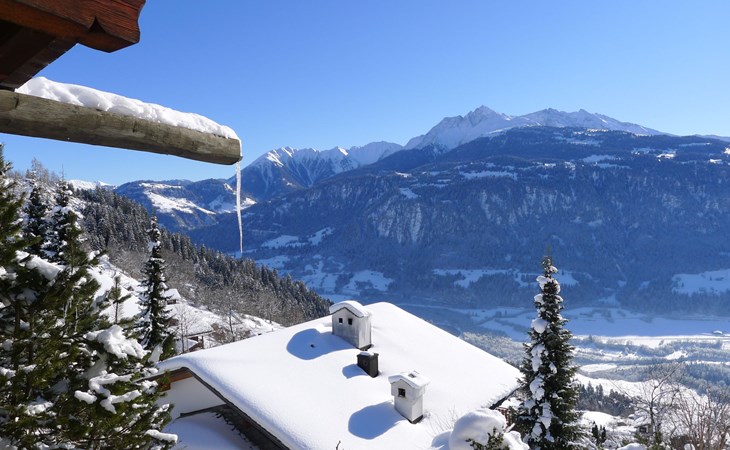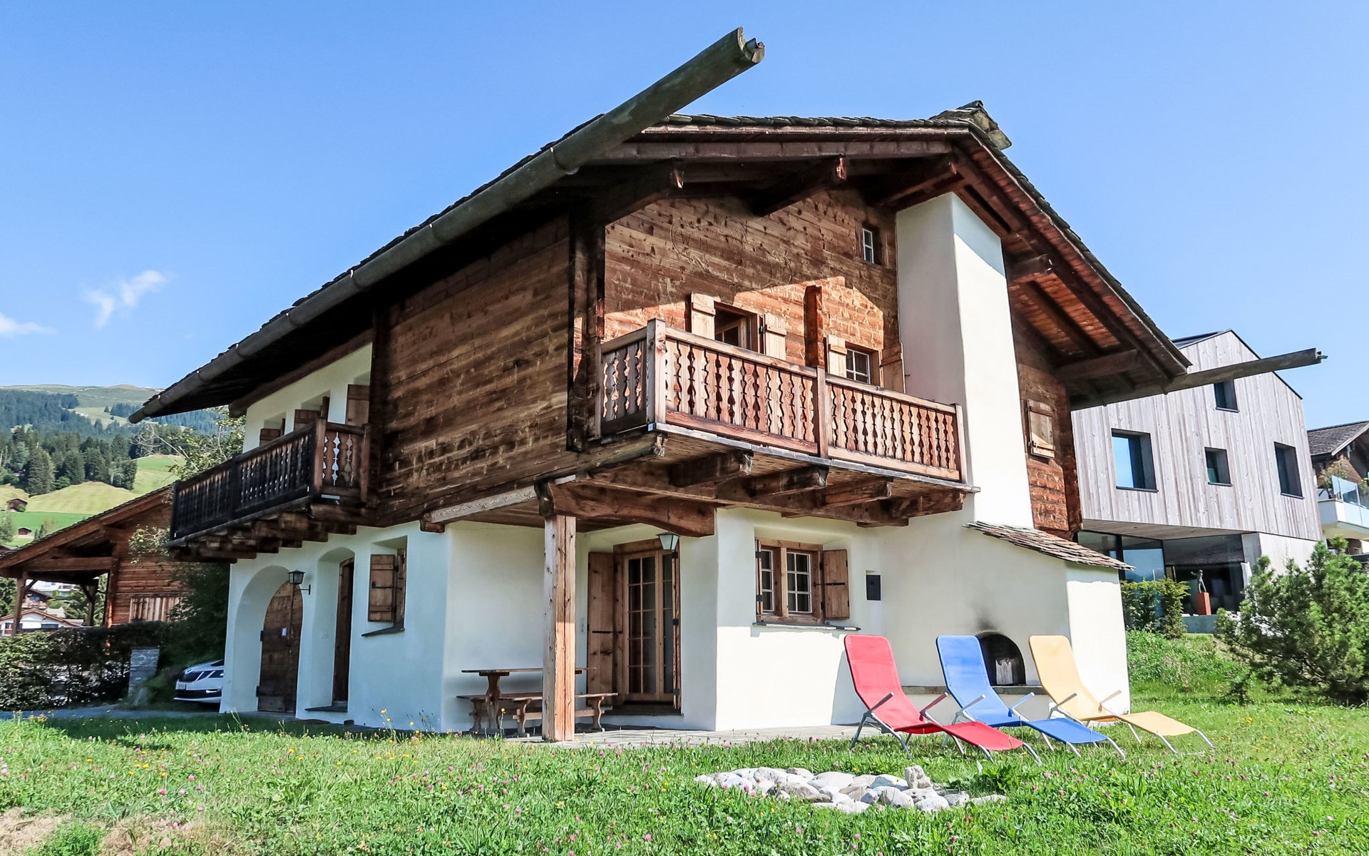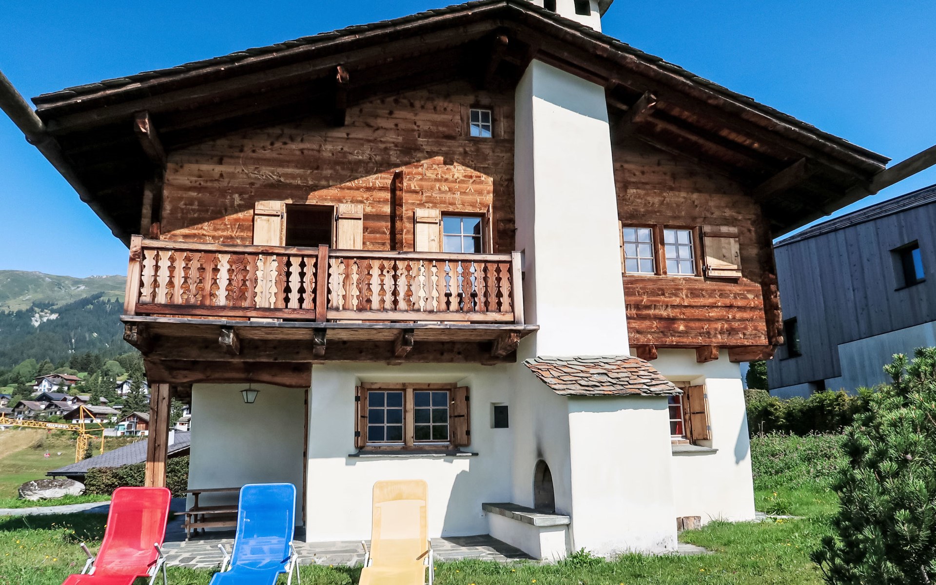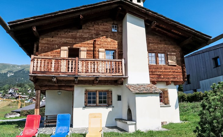 Falera 2 km van Laax: Mooi, rustieke chalet "Chistiala Dadens", 1.200 m boven zeeniveau, van 2 verdiepingen. Aan de rand van de plaats, 300 m van het centrum, rustige, zonnige, verhoogde ligging, 3 km van het meer, 500 m van het skigebied, aan een doodlopende weg. Voor alleengebruik: terrein, tuin, ligweide. In het huis: bergruimte voor fietsen, berging voor ski's, centrale verwarming. Smalle toegangsweg tot aan het huis (bergweg). 's winters 4x4 aanbevolen. Parkeerplaats (voor 2 auto's) bij het huis, eigen garage. Oplaadstation. Levensmiddelenwinkel 300 m, supermarkt 8 km, restaurant 300 m, bushalte 500 m, station "Ilanz" 8 km, openluchtzwembad 3 km, overdekt zwembad 3 km, meer (zwemmen) "Laaxersee" 3 km. Golfterrein 6 km, kabelbaan 4 km, skilift 500 m, stoeltjeslift, ski faciliteiten, skipisten, skischool, rodelbaan, langlaufloipe, ijsbaan 3 km, kinderspeelplaats 300 m. Bekende skigebieden kunnen gemakkelijk worden bereikt: Weisse Arena 500 m. Oplaadstation voor elektrische auto's in de garage.