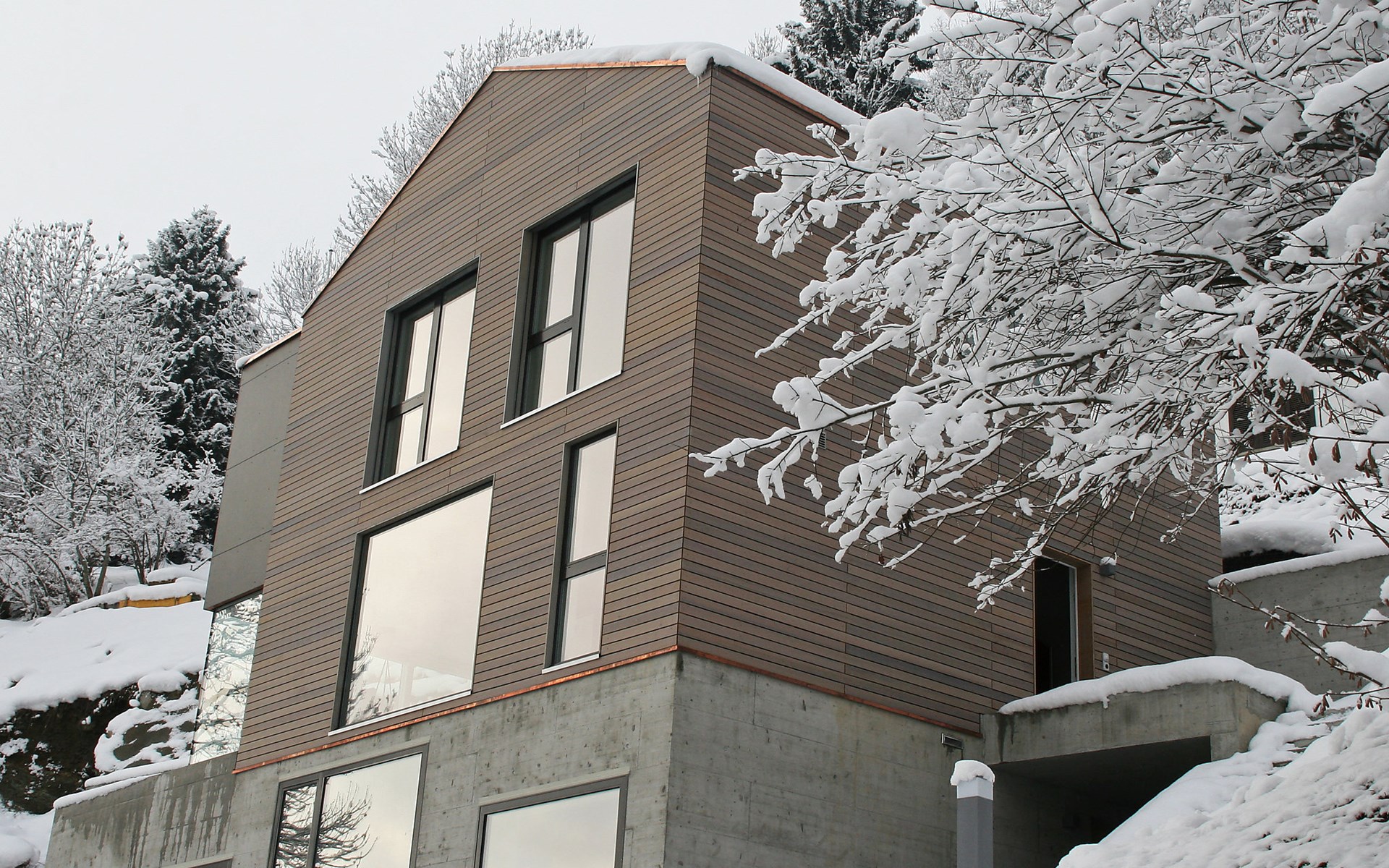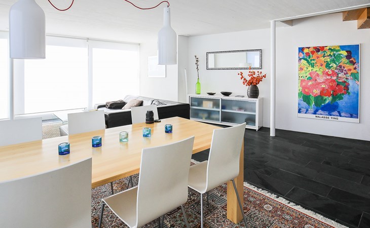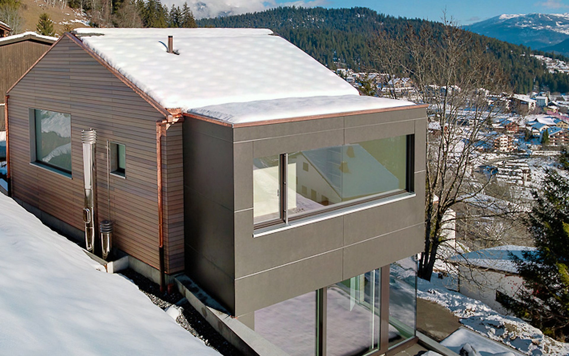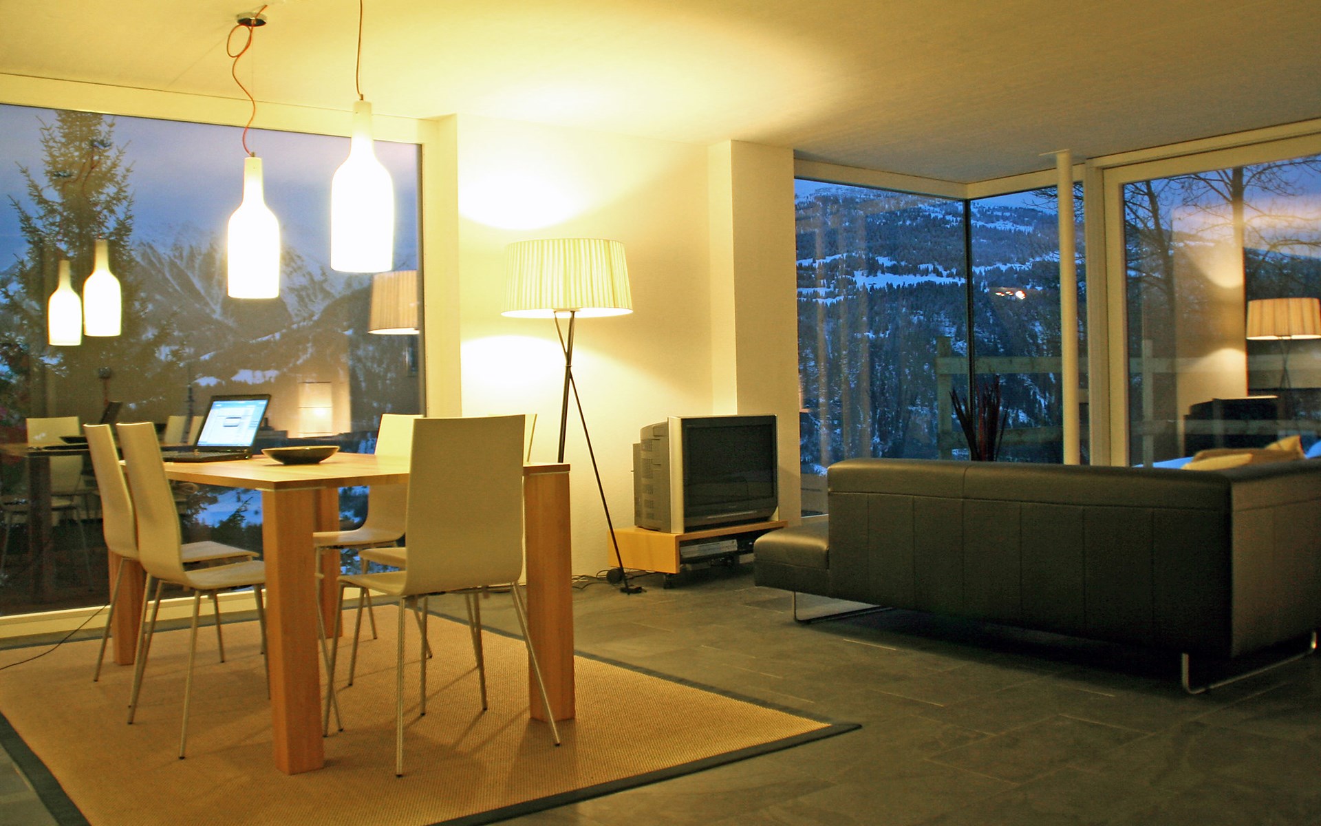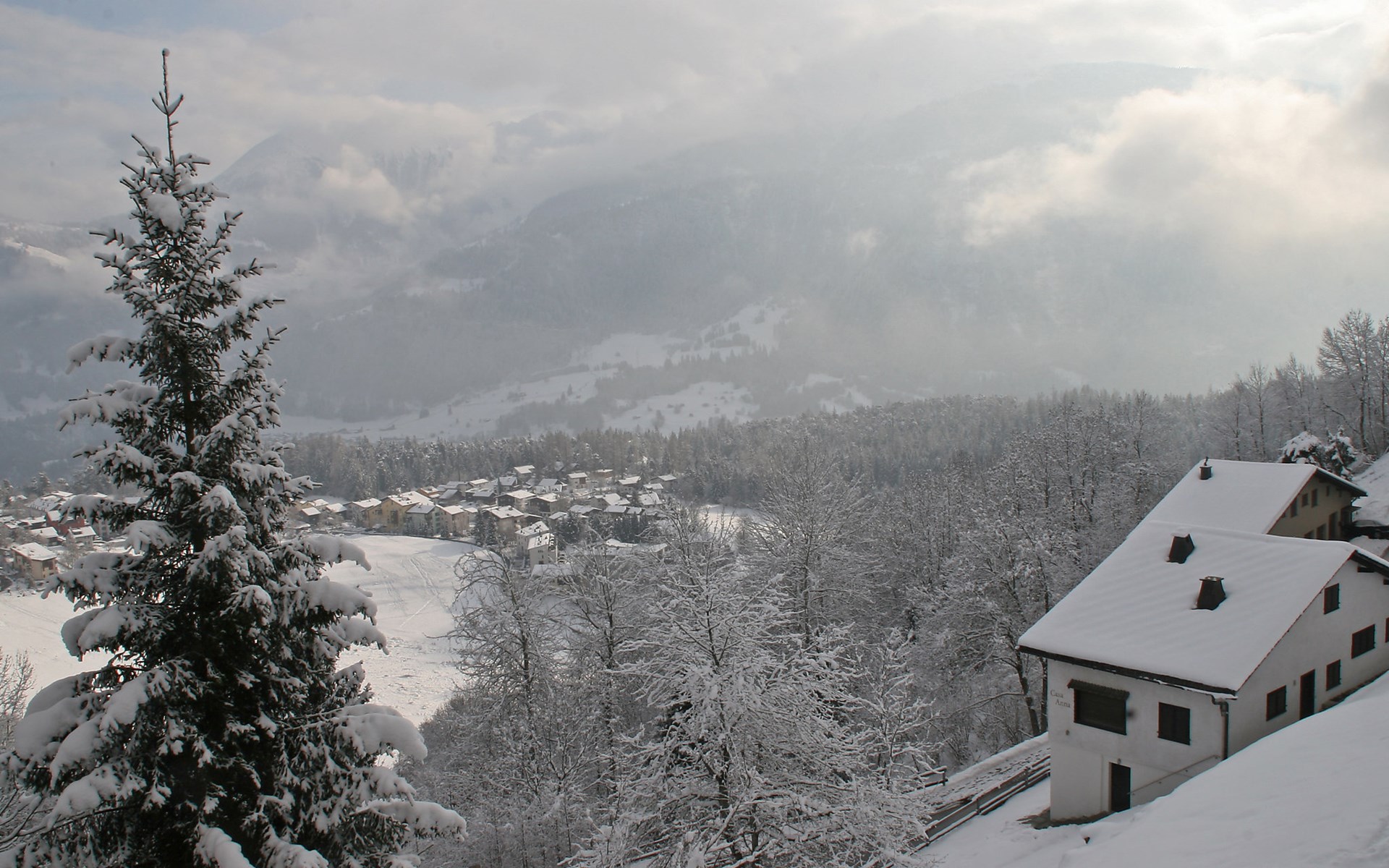 Moderne, mooi, luxueus Huis met 2 woningen "Melina", bouwjaar 2009. Aan de rand van de plaats, geïsoleerde, rustige, zonnige, verhoogde ligging tegen een helling, aan een doodlopende weg, te midden van groen. Voor medegebruik: barbecue. In het huis: centrale verwarming. Smalle toegangsweg tot aan het huis. Trappenweg (15 treden) naar het huis. Eigen garage. Winkel 500 m, levensmiddelenwinkel, restaurant, bushalte 200 m, openluchtzwembad. Golfterrein 5 km, tennis 2.5 km, kabelbaan 2.5 km, skilift 2.5 km, skischool 2.5 km, langlaufloipe 500 m.