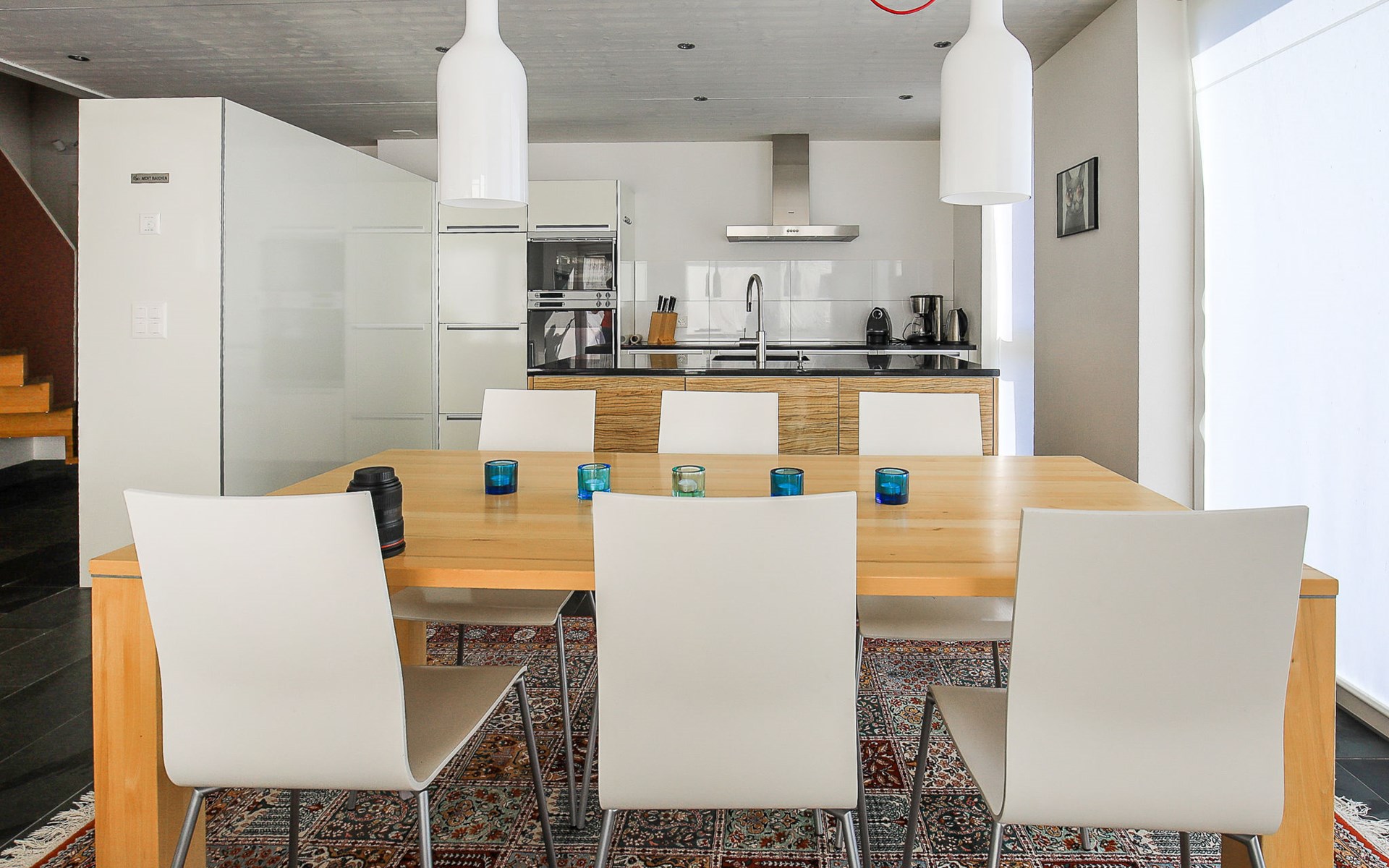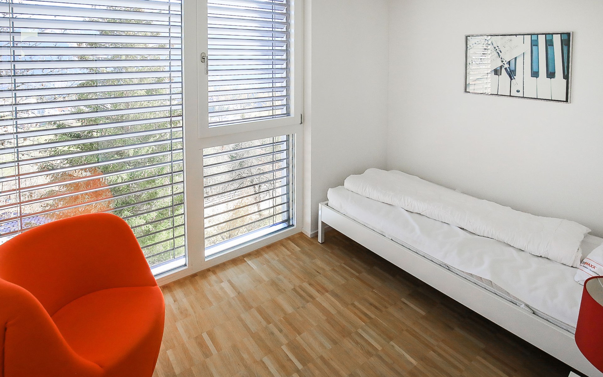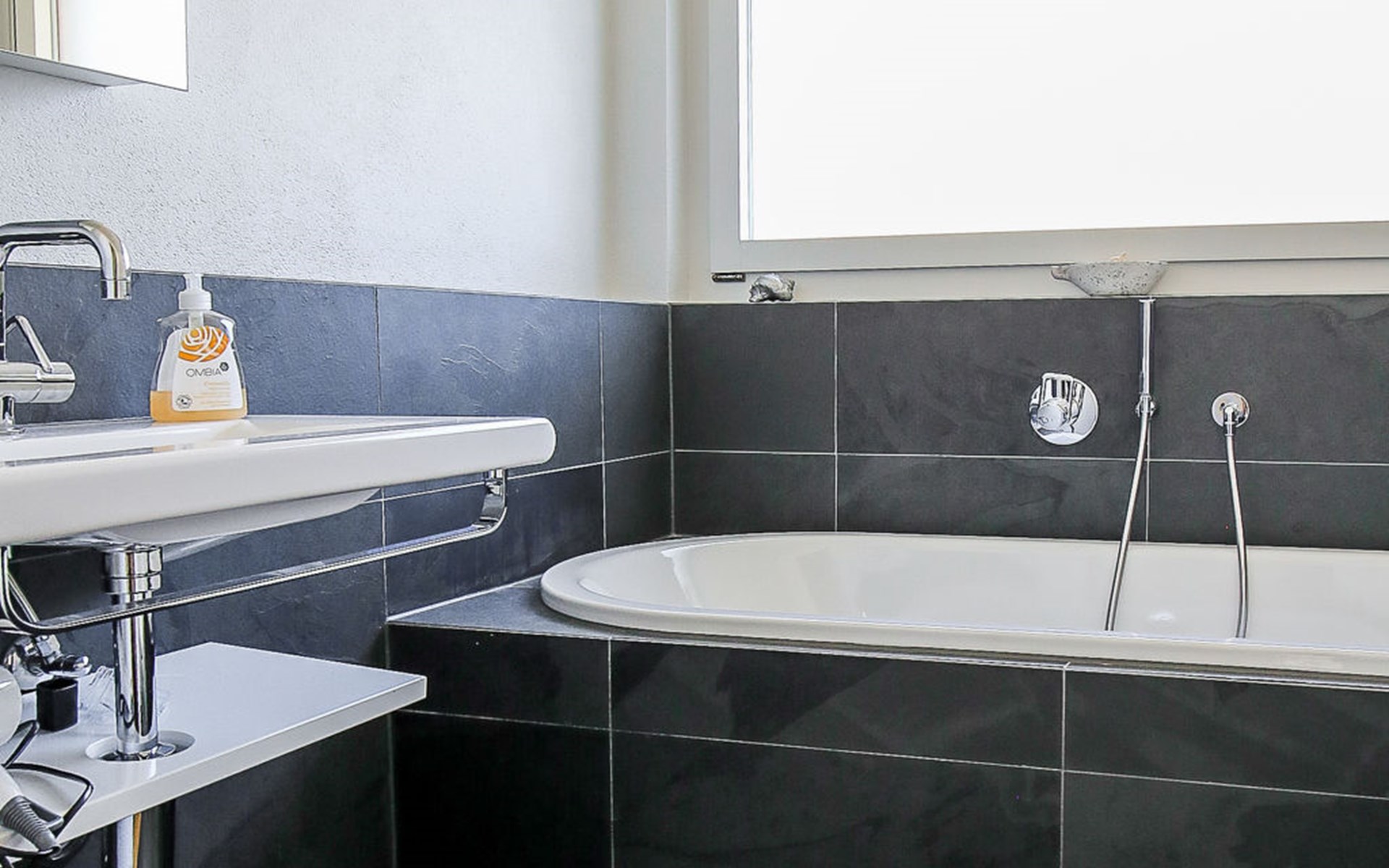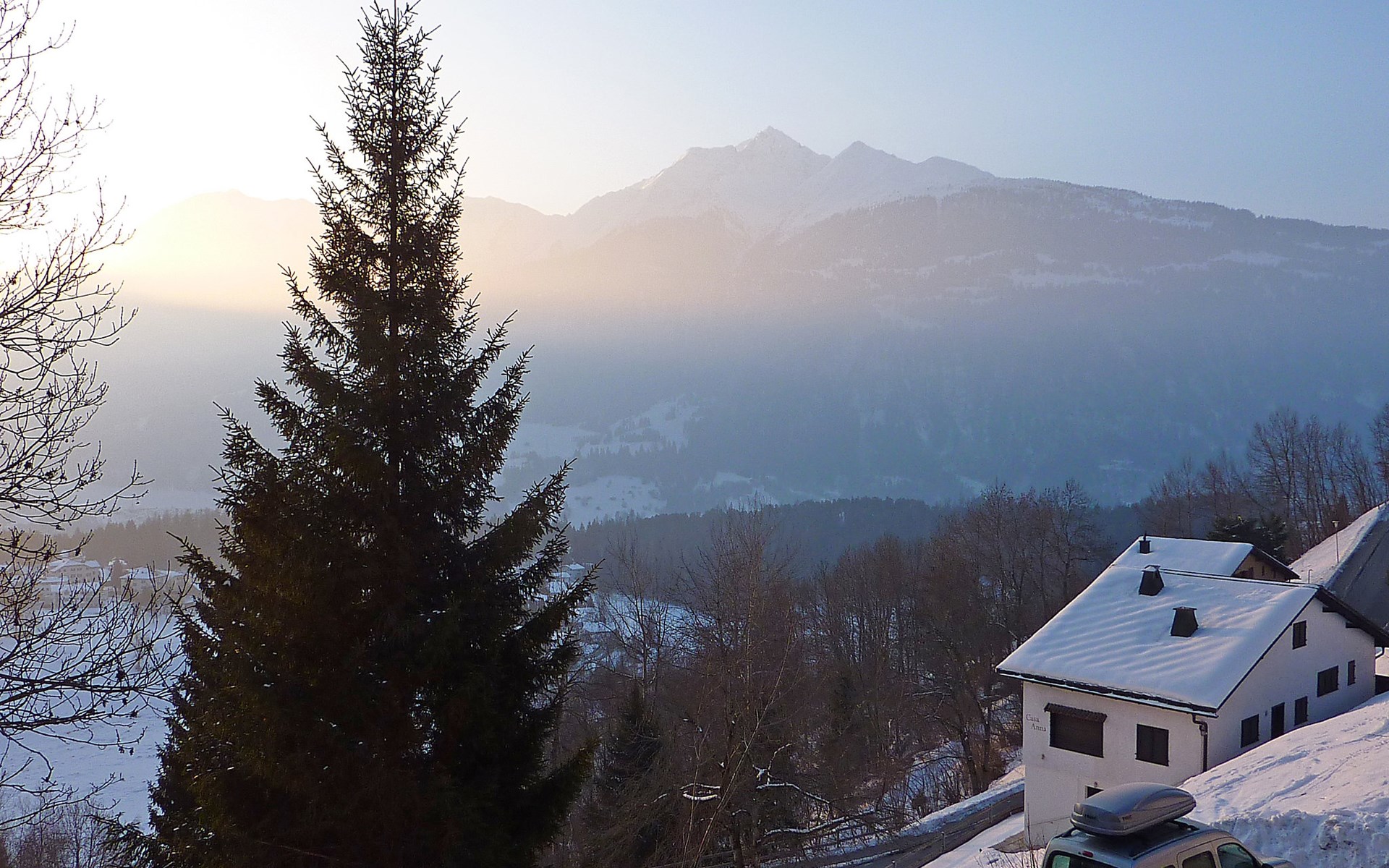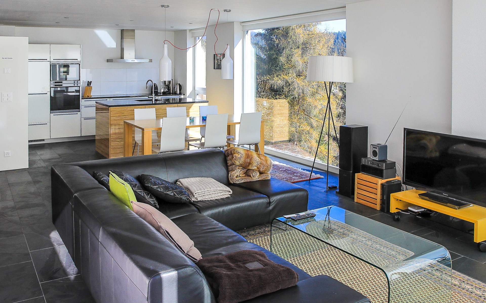 Moderne, mooi, luxueus Huis met 2 woningen "Melina", bouwjaar 2009. Aan de rand van de plaats, geïsoleerde, rustige, zonnige, verhoogde ligging tegen een helling, aan een doodlopende weg, te midden van groen. Voor medegebruik: barbecue. In het huis: centrale verwarming. Smalle toegangsweg tot aan het huis. Trappenweg (15 treden) naar het huis. Eigen garage. Winkel 500 m, levensmiddelenwinkel, restaurant, bushalte 200 m, openluchtzwembad. Golfterrein 5 km, tennis 2.5 km, kabelbaan 2.5 km, skilift 2.5 km, skischool 2.5 km, langlaufloipe 500 m.