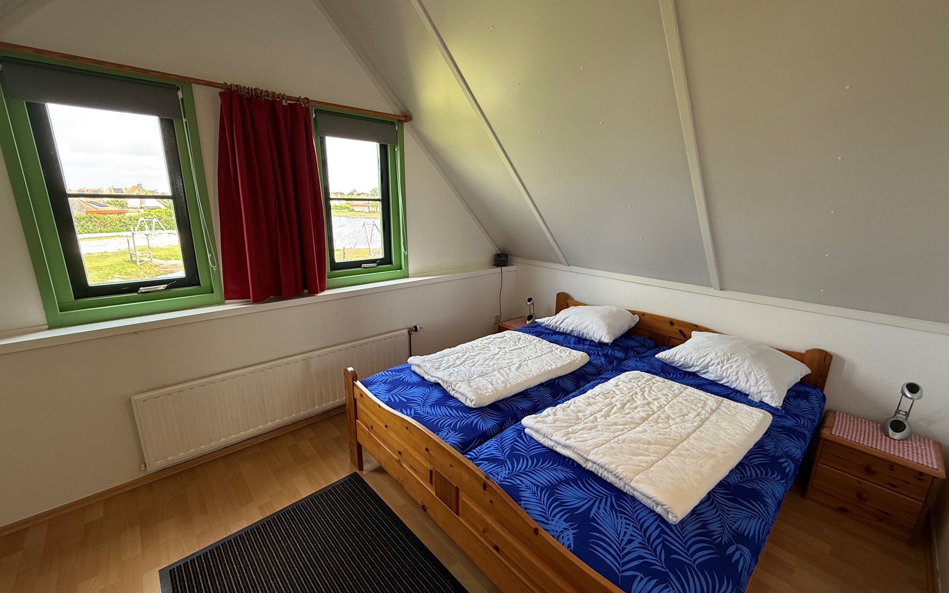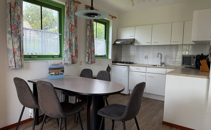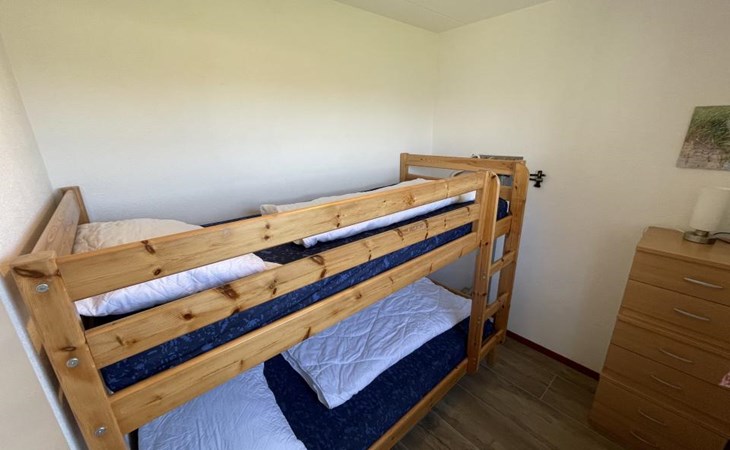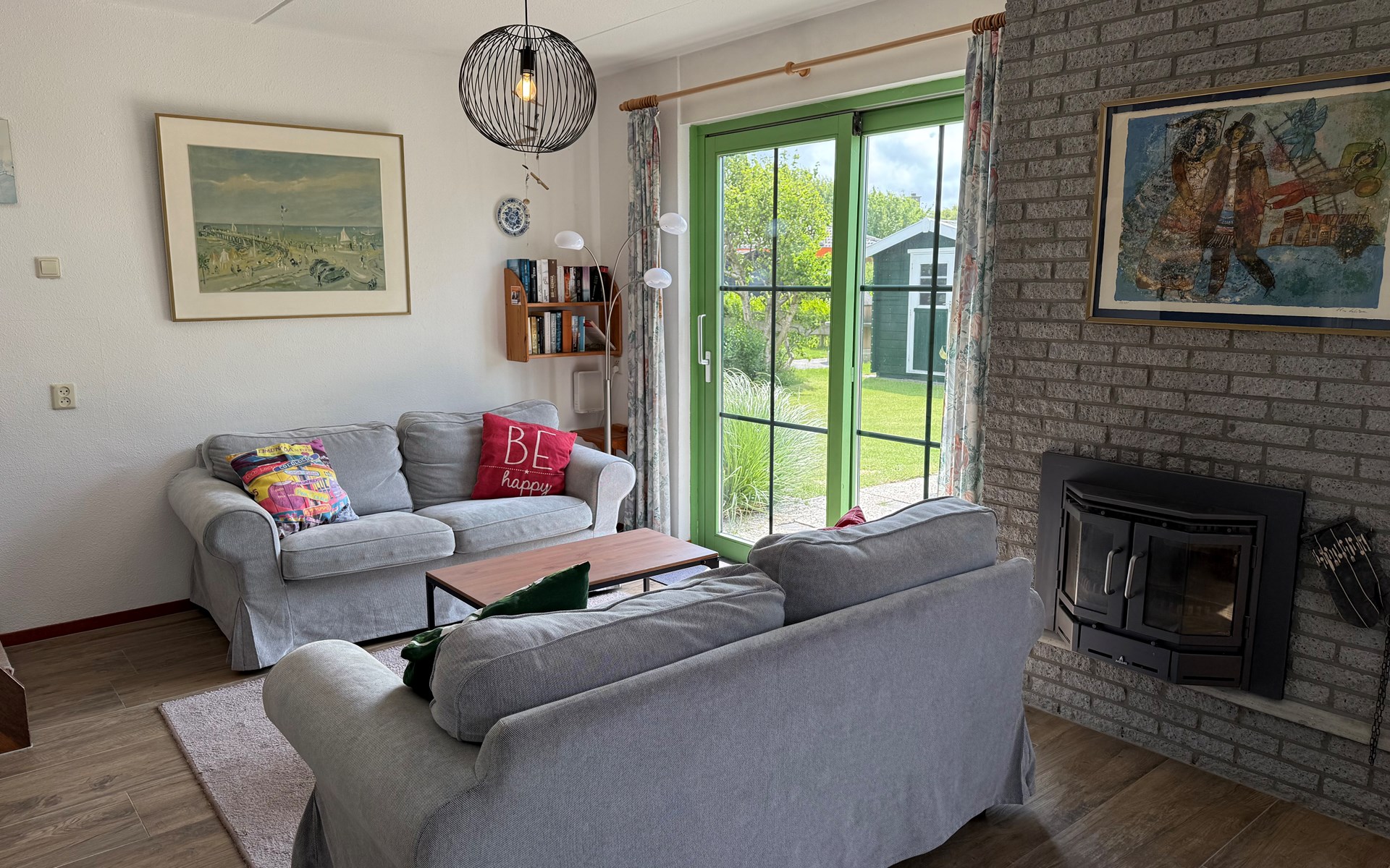 Deze mooie bungalow is gezellig ingericht en heeft een woonkamer met open keuken. De woonkamer is voorzien van een openhaard en heeft een schuifpui naar het terras. De keuken is van alle gemakken voorzien. Een combimagnetron, vaatwasser, broodrooster, koelkast, koffiezetter, waterkoker en gaskookplaat. Verder is er op de begane grond de badkamer met douche, wastafel en apart toilet. Ook is er op de begane grond een slaapkamer met een stapelbed. Op de eerste verdieping zijn 2 slaapkamers en er is een extra 2e toilet. De eerste slaapkamer heeft een tweepersoonsbed met 2 losse matrassen. In de tweede slaapkamer staat ook tweepersoonsbed met 2 losse matrassen. Huisdieren zijn toegestaan, en de grote zonnige tuin compleet met tuinmeubilair is. Deze bungalow kenmerkt zich door de centrale ligging op het park, dus dicht bij het strand, midgetgolf en het restaurant van het park en kijkt uit op de speeltuin en waterspeeltuin.
