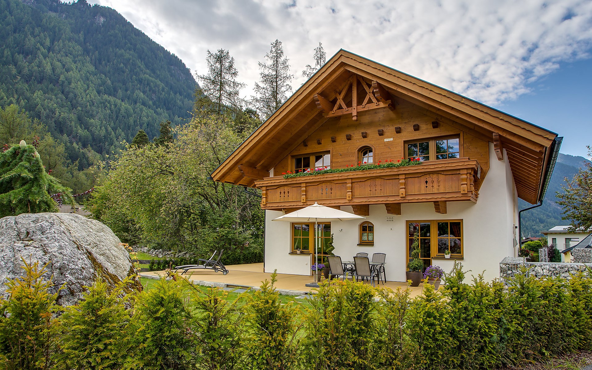 Moderne chalet "Carla", omgeven door weiden. 500 m van het centrum, rustige, zonnige ligging, 8 km van het meer, 6 km van het skigebied. Voor medegebruik: terrein, tuin. Terras. In het huis: Internet (WiFi), berging voor ski's, centrale verwarming. Parkeerplaats bij het huis. Levensmiddelenwinkel, restaurant, bushalte 500 m, thermaalbad "Umhausen" 1 km, natuurlijke zwemvijver 500 m, meer (zwemmen) "Piburg" 8 km. Kabelbaan op 6 km, skiverhuur 6 km, skibushalte 600 m, skischool 6 km, langlaufloipe 500 m. Attracties in de buurt: Outdoor Park 'Area 47' 15 km, Aqua Dome 7 km, Stuibenfall 3 km. Bekende skigebieden kunnen gemakkelijk worden bereikt: Hochötz 6 km, Sölden 22 km. Gratis skibus. De eigenaar woont in hetzelfde huis. De omgeving is gevoelig voor geluidsoverlast. Gelieve geen lawaai te maken en de rust te bewaren.