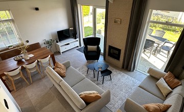 Deze bungalow is perfect gelegen aan de rand van het park, met een prachtig uitzicht op de duinen. Het interieur is stijlvol en gezellig ingericht, met een open keuken die naadloos overgaat in de woonkamer. De grote schuifpui biedt toegang tot de zonnige tuin, waar u heerlijk kunt genieten van de buitenlucht. In de woonkamer zorgt de openhaard voor een knusse sfeer, ideaal voor de koelere maanden.