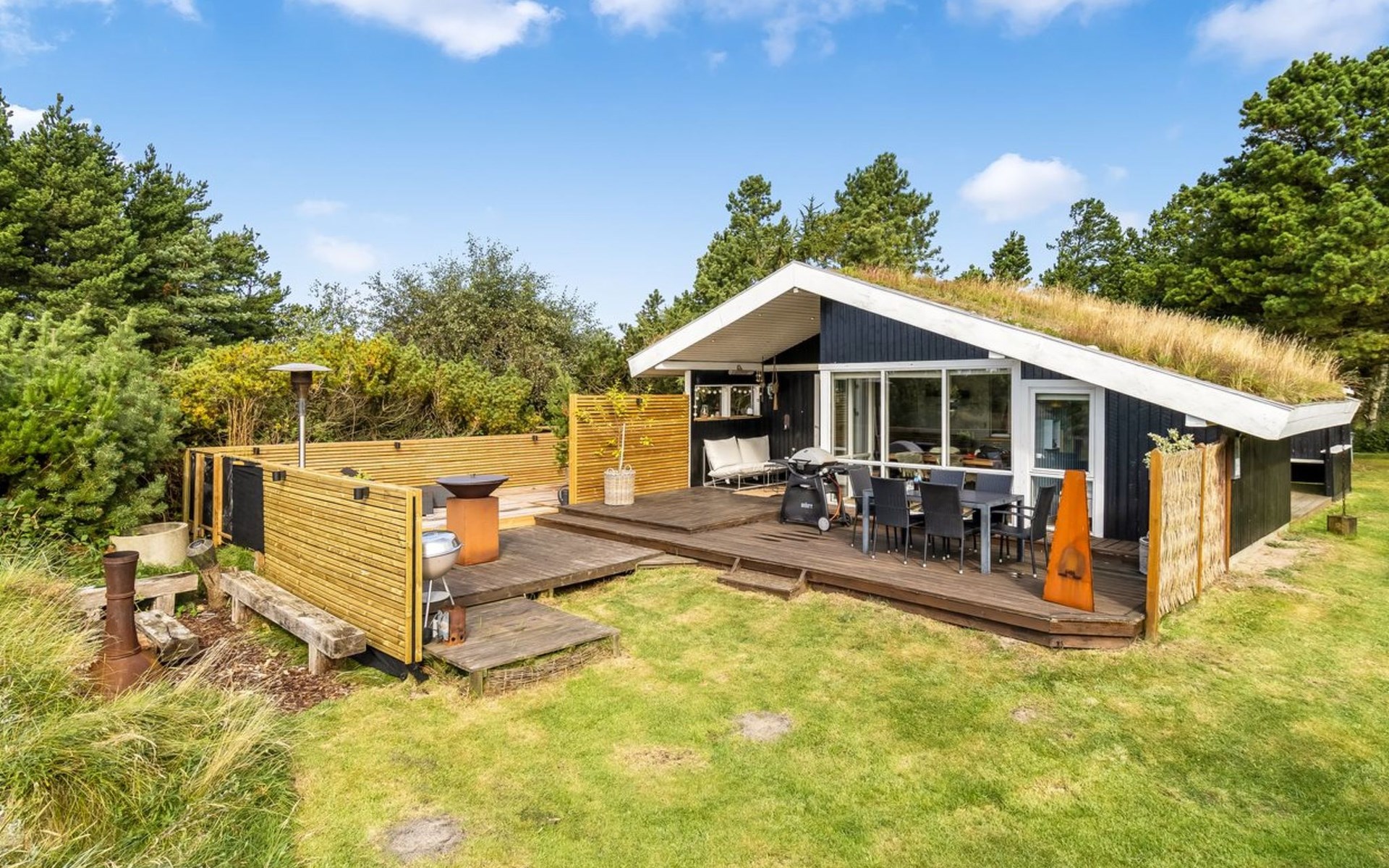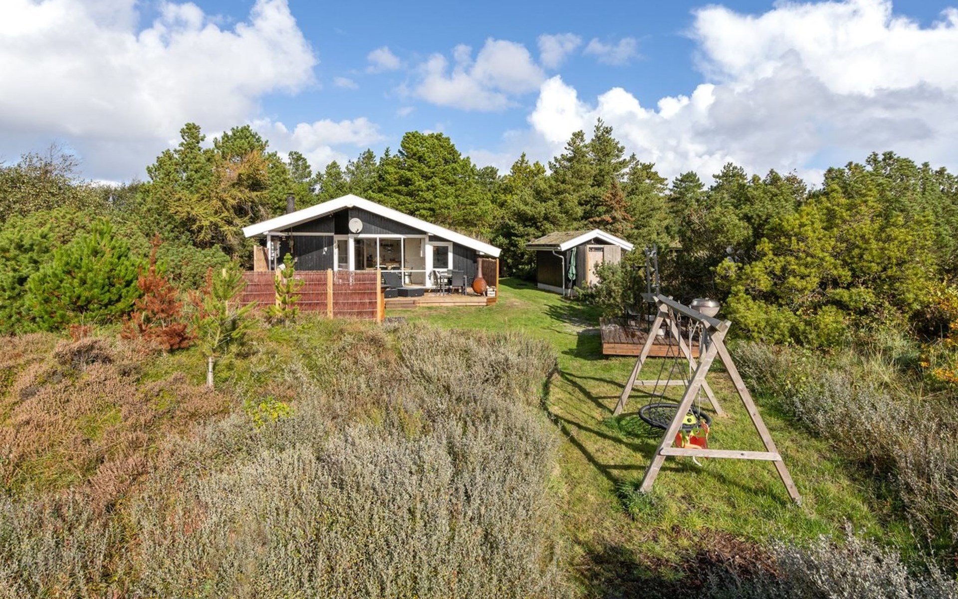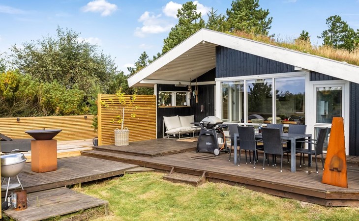 Eengezinswoning, bouwjaar 1977. 2 km van zee. Voor alleengebruik: wild terrein 2.500 m2. Terras (30 m2), barbecue, stookplaats, kinderspeelplaats (schommel). In het huis: sauna, wasmachine, droger. Parkeerplaats bij het huis. Levensmiddelenwinkel 4.3 km. De eigenaar accepteert geen jeugdgroepen.