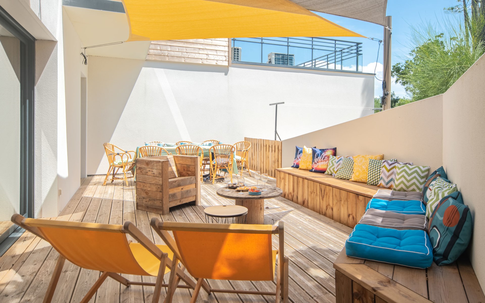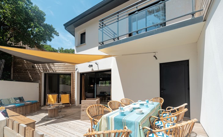 Mooi rijtjeshuis "Ocean forest", bouwjaar 2023. In de plaats, 900 m van het centrum van Mimizan Plage, 450 m van zee, 10 km van het meer, van het strand. Parkeerplaats (voor 2 auto's). Winkel 400 m, levensmiddelenwinkel, winkelcentrum 6 km, restaurant 400 m, bakkerij 300 m, fietsverhuur 500 m, zandstrand "Remember" 100 m, meer (zwemmen) "Aureilhan" 10 km. Surfschool 500 m, manege 9 km, fietspad 100 m. Attracties in de buurt: Skate parc 950 m, Eco musée de Marquèze 40 km, Disc golf 100 m, Casino jeux 1 km, Biscarrosse 35 km, Arcachon 70 km.