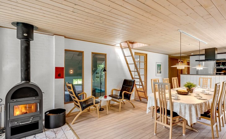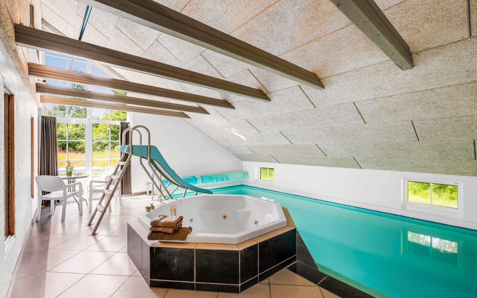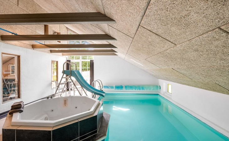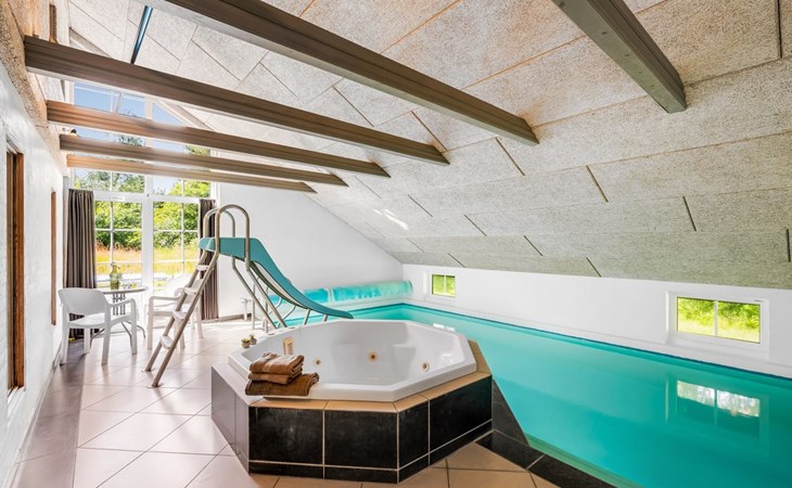 Eengezinswoning, bouwjaar 1994. 5 km van zee. Voor alleengebruik: wild terrein 1.800 m2, overdekt zwembad (3 x 6 m, 18 m2, 120 - 120 cm diepte). Terras (60 m2), barbecue, stookplaats, kinderspeelplaats (glijbaan, schommel). In het huis: sauna, trampoline, wasmachine, droger. Parkeerplaats bij het huis. Oplaadstation. Levensmiddelenwinkel 7.5 km. De eigenaar accepteert geen jeugdgroepen.