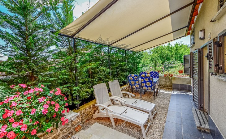 Bungalow "Karolina", van 2 verdiepingen. Boven Lovran, in het gehucht Oprić, 3 km van het centrum van Lovran, rustige, zonnige ligging, 3 km van zee, 3 km van het strand, aan een doodlopende weg. Voor alleengebruik: terras (16 m2), tuinmeubelen. In het huis: internetaansluiting, wasmachine. Parkeerplaats bij het huis op het terrein. Winkel 2 km, restaurant 3 km, bushalte 300 m, kiezelstrand 3 km, strandbad 3 km, betonnen strand 3 km. De eigenaar woont op hetzelfde terrein. Object referentie: HR3050.317 is gelegen op hetzelfde terrein.