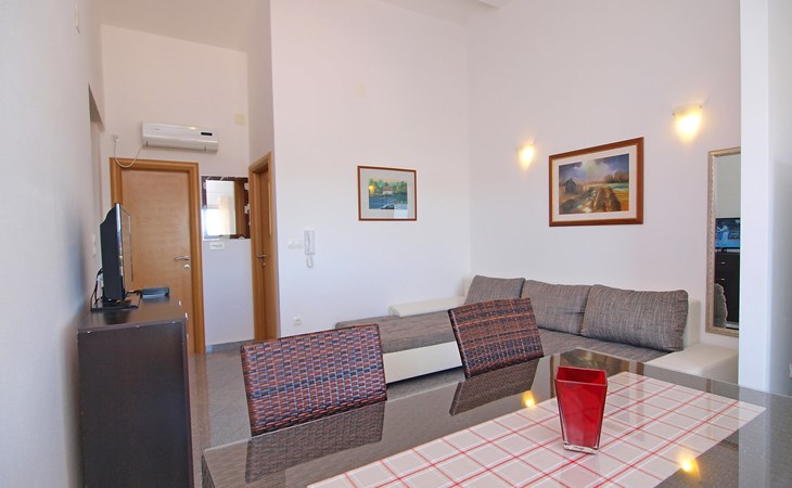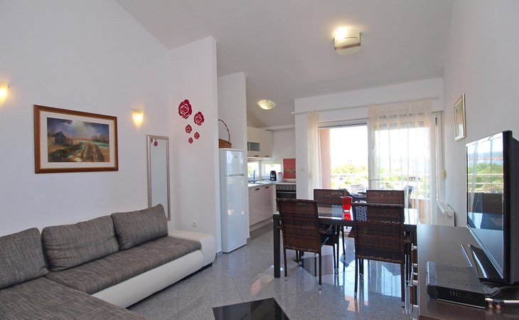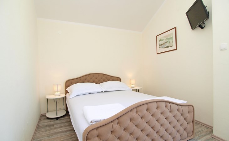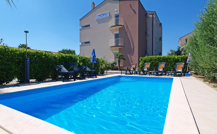 Bibinje 10 km van Zadar: Appartementencomplex "Marko". 2 km van het centrum van Bibinje, zonnige ligging, 70 m van zee, 70 m van het strand. Voor medegebruik: terrein 700 m2 (omheind), verzorgde tuin met gazon en bomen, openluchtzwembad hoekig verwarmd (7 x 3 m, 24 m2, 150 cm diepte, seizoensgebonden beschikbaarheid: 15.Mei. - 19.Okt.) met trap. Buitendouche, poolhouse met koelkast, WC en fornuis, terras (32 m2), tuinmeubelen, barbecue, kinderspeelplaats (schommel). In het huis: internetaansluiting. Parkeerplaats bij het huis op het terrein. Winkel, restaurant 650 m, café 100 m, bushalte 2.9 km, kiezelstrand 70 m, duikschool 100 m, strandbad 70 m. Jachthaven 50 m, kinderspeelplaats 100 m. Privé aanlegsteiger voor een boot (extra) op aanvraag. Voor medegebruik: terras (20 m2). Mogelijkheid tot het huren van de auto en de boot van de huiseigenaar voor (op aanvraag, extra).