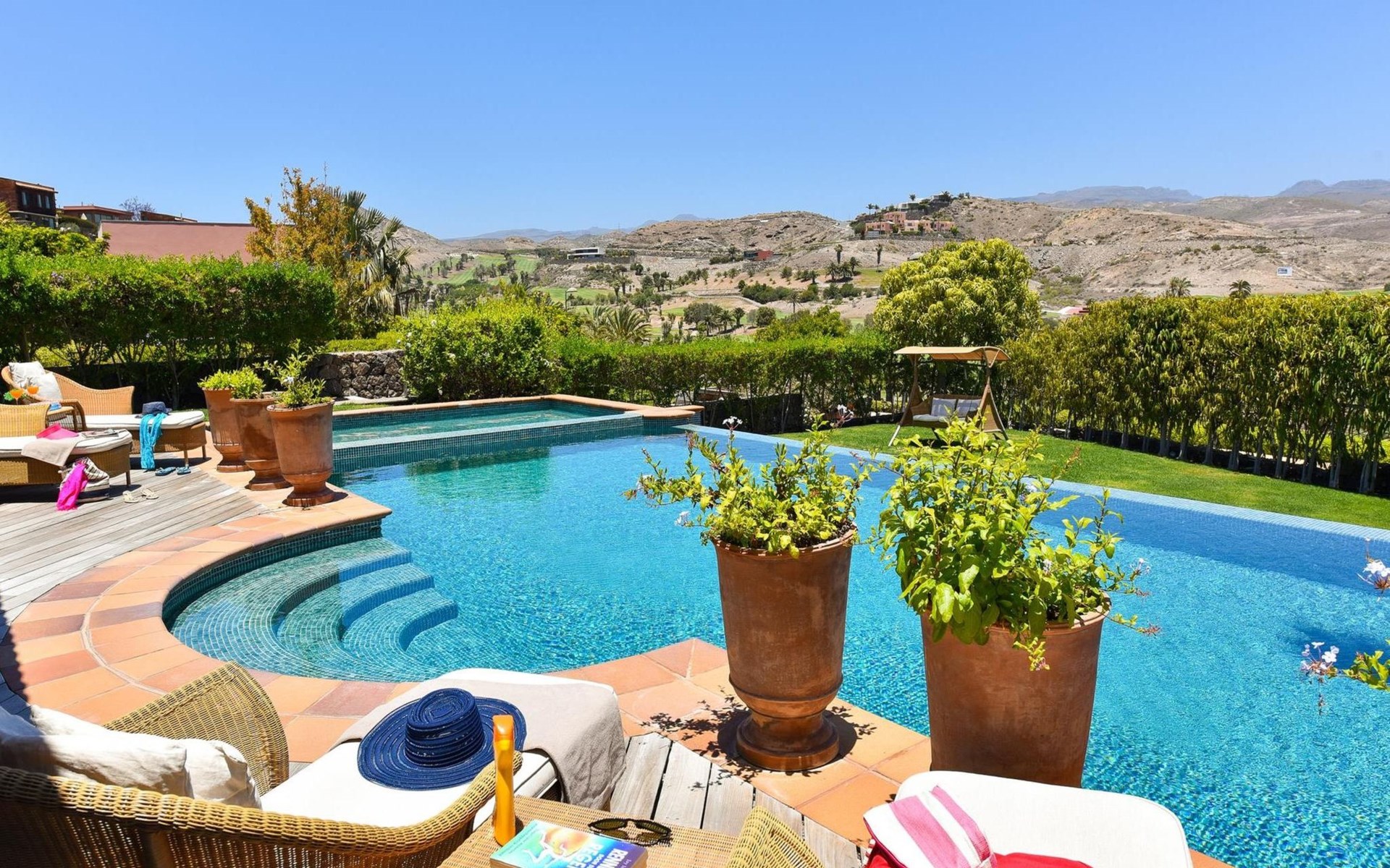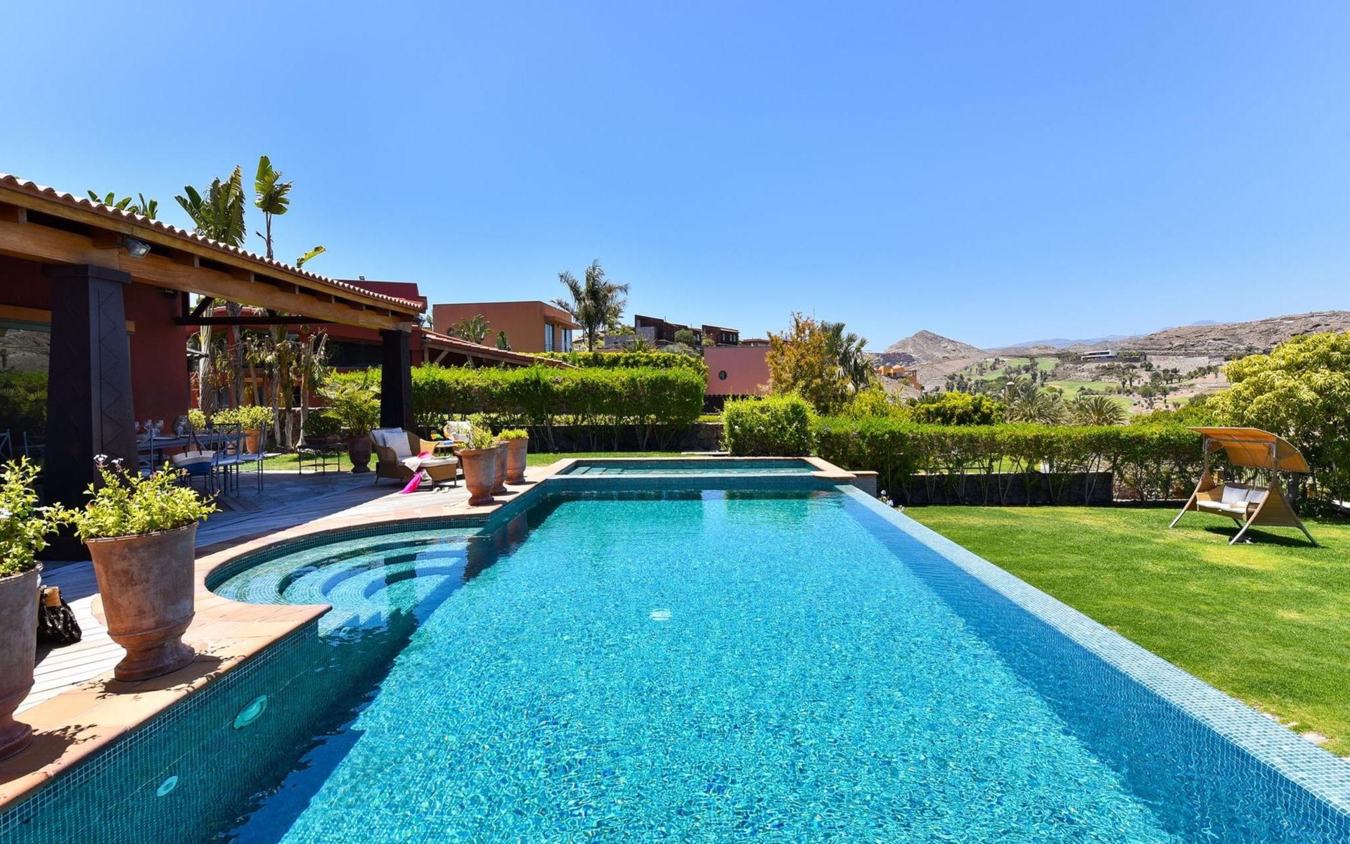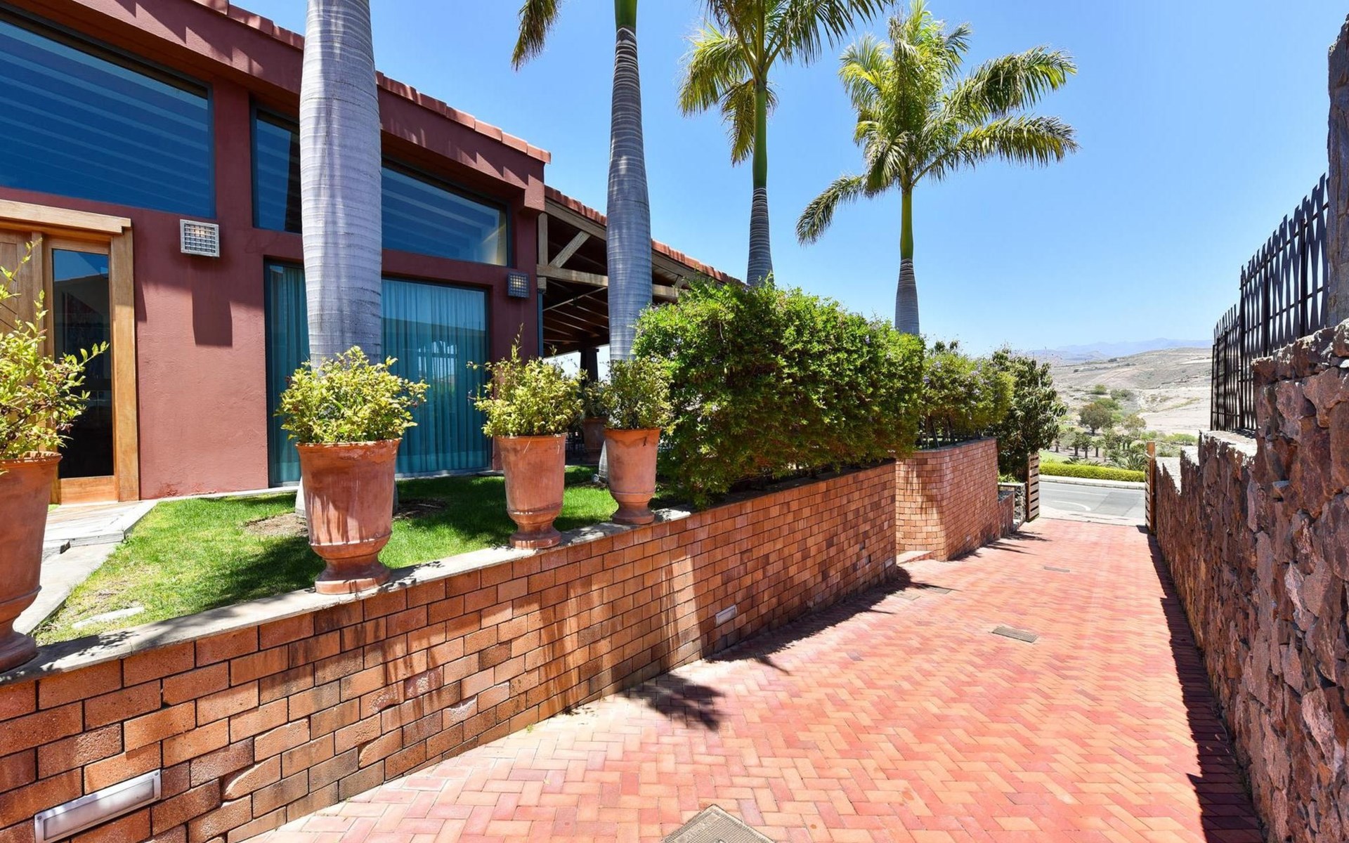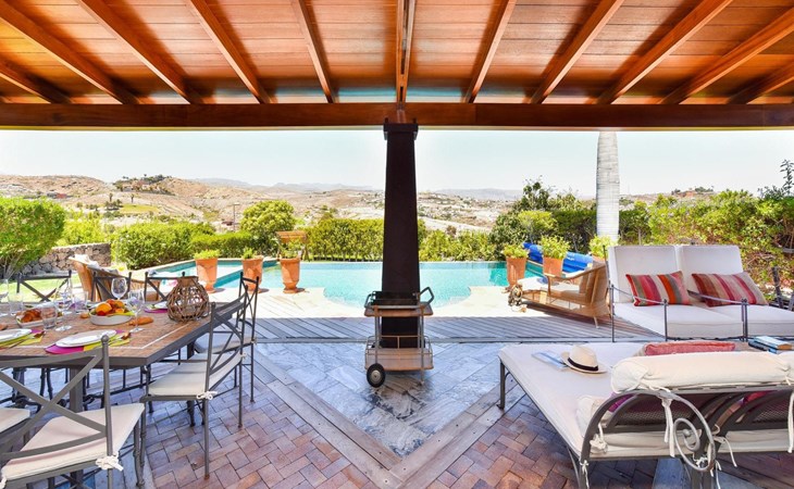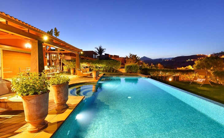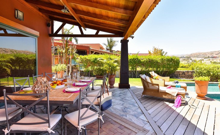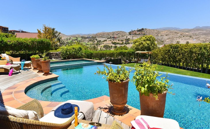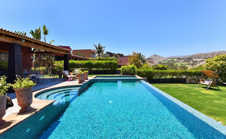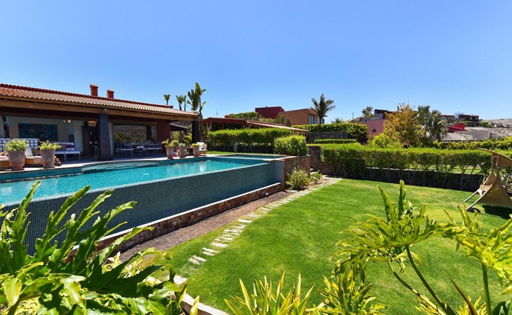 Groot, moderne villa "Canela". In de wijk Maspalomas, in het centrum van Salobre Golf Resort, buiten de plaats Meloneras, rustige, zonnige, verhoogde ligging. Voor medegebruik: terrein 1.000 m2 (omheind), tuin, ligweide. Voor alleengebruik: terrein 1.000 m2 (omheind), tuin, ligweide, openluchtzwembad (10 x 5 m, seizoensgebonden beschikbaarheid: 01.Jan. - 31.Dec.). Kinderzwembad, buitendouche, barbecue. In het huis: Internet (WiFi), centrale verwarming, air-conditioning, wasmachine, droger. Parkeerplaats bij het huis. Winkel, levensmiddelenwinkel 200 m, supermarkt 3 km, restaurant 200 m, bushalte "Las Crucitas" 19 km, zandstrand "3000". Golfterrein (18 holes) 100 m. Auto noodzakelijk. Geschikt voor families, geschikt voor senioren baby uitrusting op aanvraag. De eigenaar accepteert geen jeugdgroepen. Autobaan 1 km van het huis. Hoofdstraat 50 m van het huis. De omgeving is gevoelig voor geluidsoverlast. Gelieve geen lawaai te maken en de rust te bewaren.