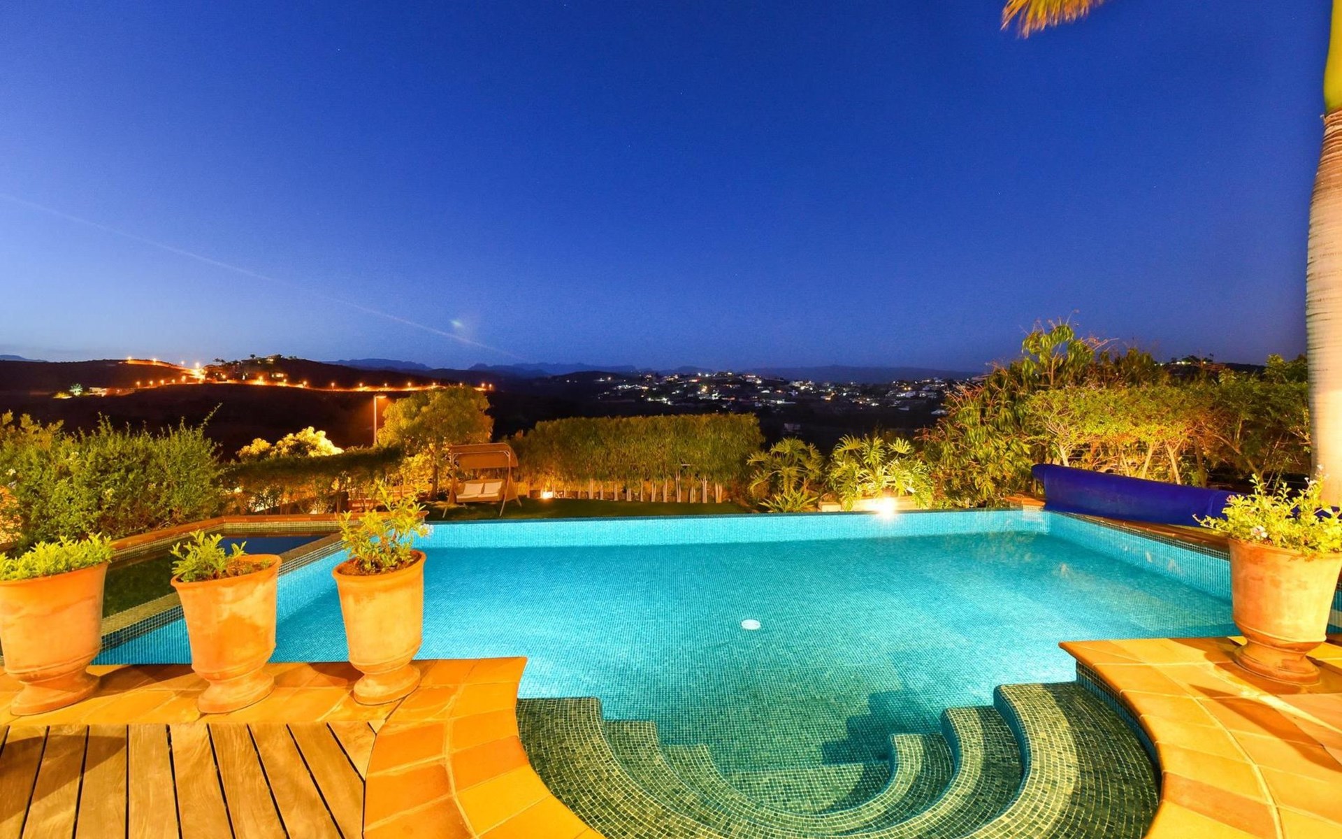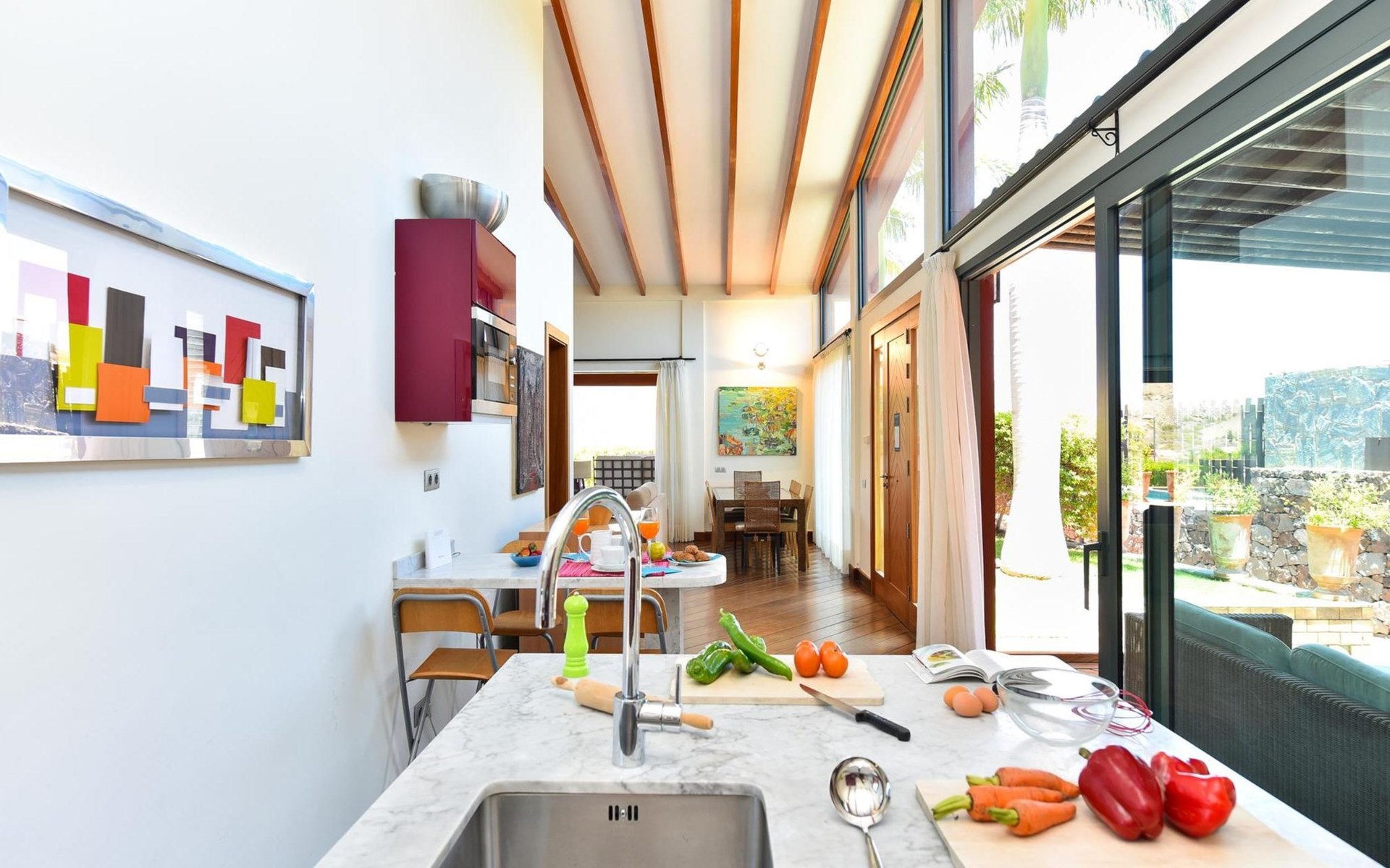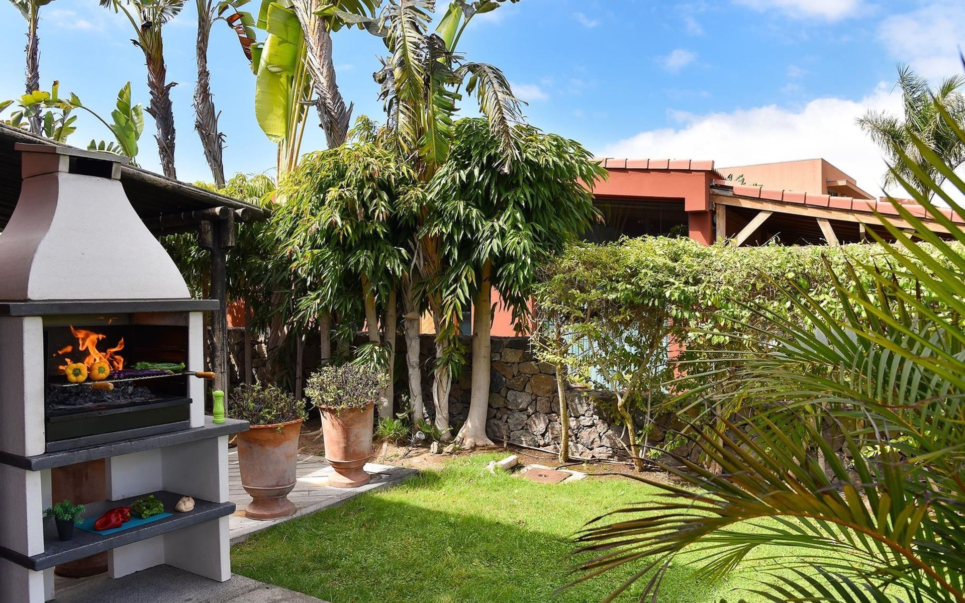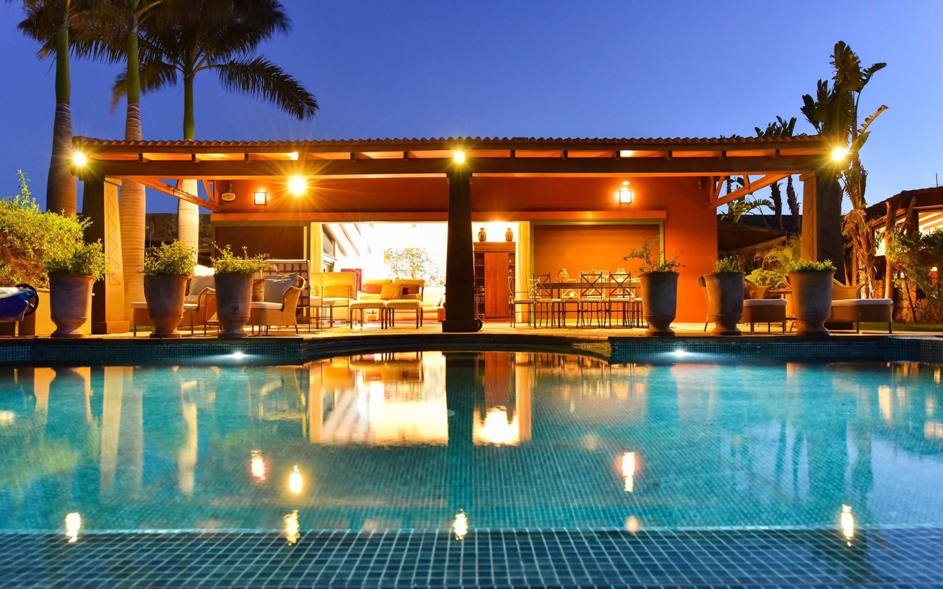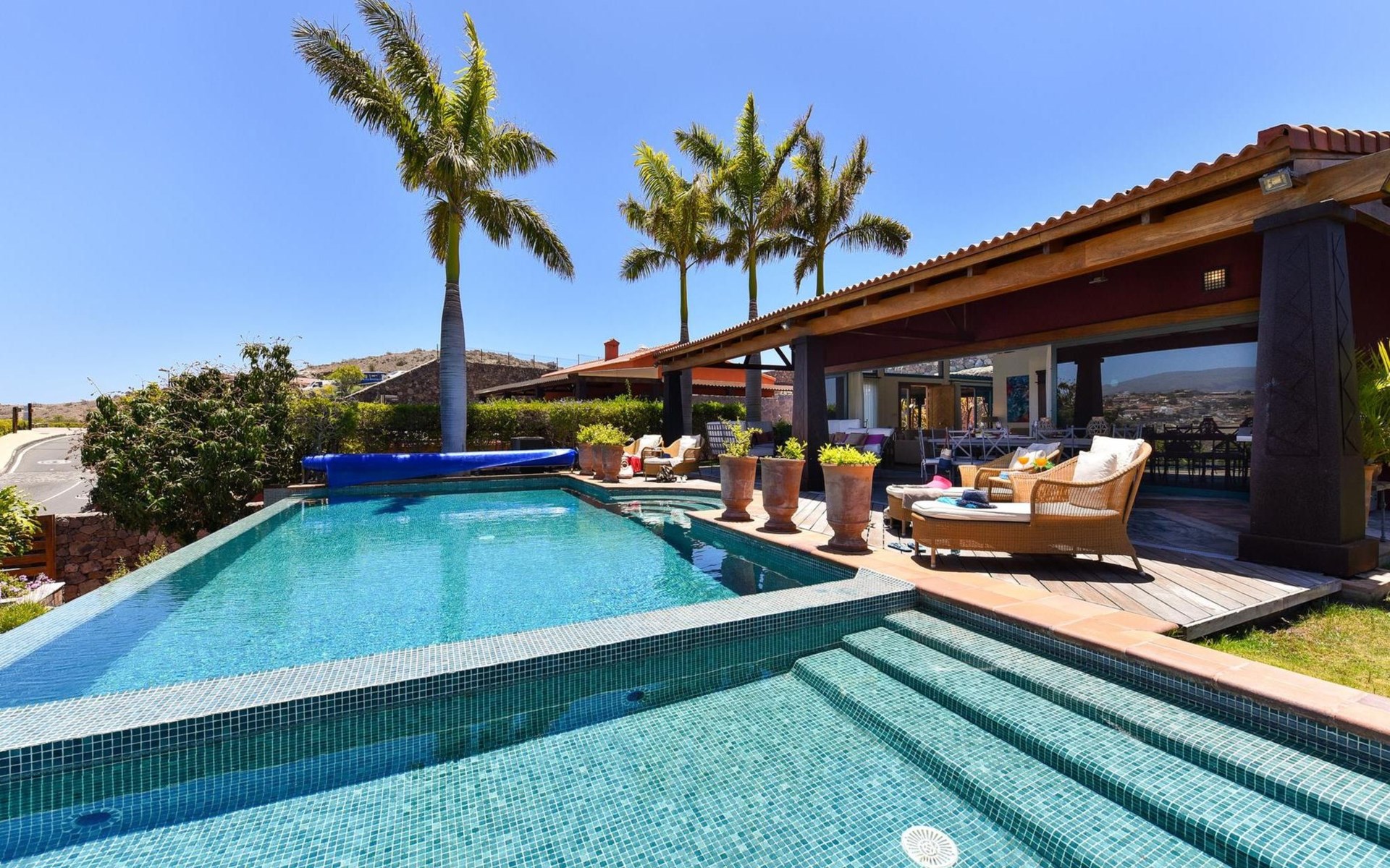Groot, moderne villa "Canela". In de wijk Maspalomas, in het centrum van Salobre Golf Resort, buiten de plaats Meloneras, rustige, zonnige, verhoogde ligging. Voor medegebruik: terrein 1.000 m2 (omheind), tuin, ligweide. Voor alleengebruik: terrein 1.000 m2 (omheind), tuin, ligweide, openluchtzwembad (10 x 5 m, seizoensgebonden beschikbaarheid: 01.Jan. - 31.Dec.). Kinderzwembad, buitendouche, barbecue. In het huis: Internet (WiFi), centrale verwarming, air-conditioning, wasmachine, droger. Parkeerplaats bij het huis. Winkel, levensmiddelenwinkel 200 m, supermarkt 3 km, restaurant 200 m, bushalte "Las Crucitas" 19 km, zandstrand "3000". Golfterrein (18 holes) 100 m. Auto noodzakelijk. Geschikt voor families, geschikt voor senioren baby uitrusting op aanvraag. De eigenaar accepteert geen jeugdgroepen. Autobaan 1 km van het huis. Hoofdstraat 50 m van het huis. De omgeving is gevoelig voor geluidsoverlast. Gelieve geen lawaai te maken en de rust te bewaren.
