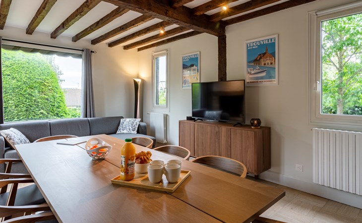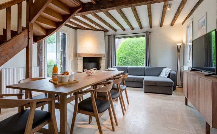 Touques: Zeer mooi, gezellig, comfortabel landhuis "La Normande", van 2 verdiepingen, gerenoveerd in 2023. In de plaats, 1.7 km van het centrum, zonnige ligging, 3 km van zee, 3 km van het strand, op het zuidoosten. Voor alleengebruik: terrein (omheind) met gazon 200 m2 bloemen, parkeerplaats (voor 2 auto's) op het terrein. Winkel 1.7 km, levensmiddelenwinkel 1 km, supermarkt 1 km, bakkerij 1.5 km, centrum te voet bereikbaar in 20 minuten, bushalte "Rue du haut bois" 300 m, station "de Deauville Trouville sur Mer" 1.9 km, zandstrand 2.5 km, thermaalbad "cures marines de Trouville" 2.4 km. Golfterrein (18 holes) 5 km, zeilschool 4.3 km, tennis 2.6 km. Attracties in de buurt: casino de Trouville sur Mer 2.4 km, hippodrome de Deauville Clairefontaine 4.2 km, Honfleur, village normand 14 km. Geschikt voor families. De sleuteloverdracht vindt plaats bij het agentschap Interhome in Deauville, 3 km.