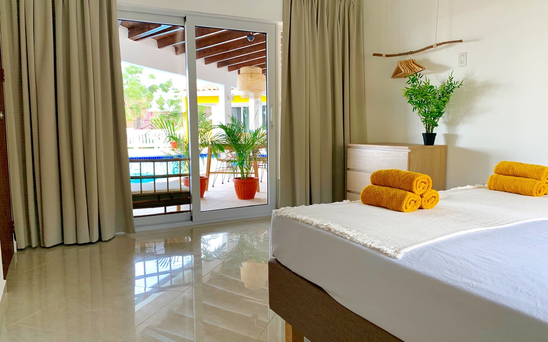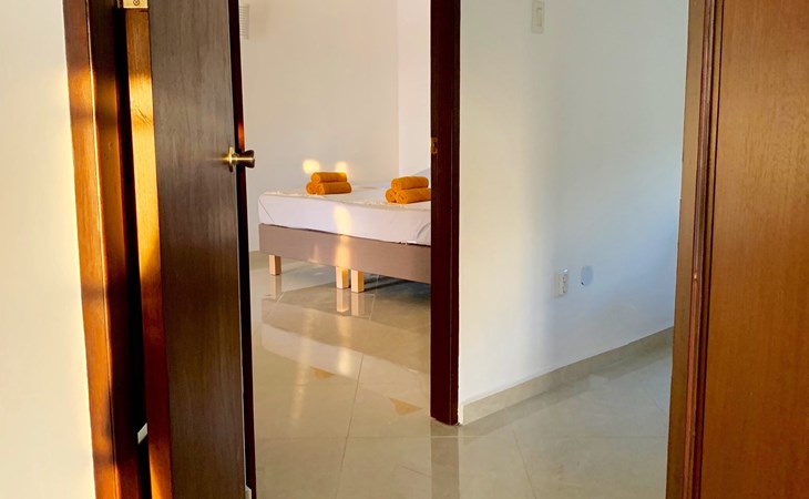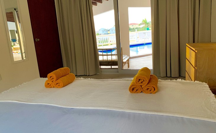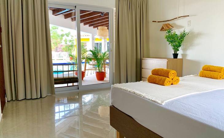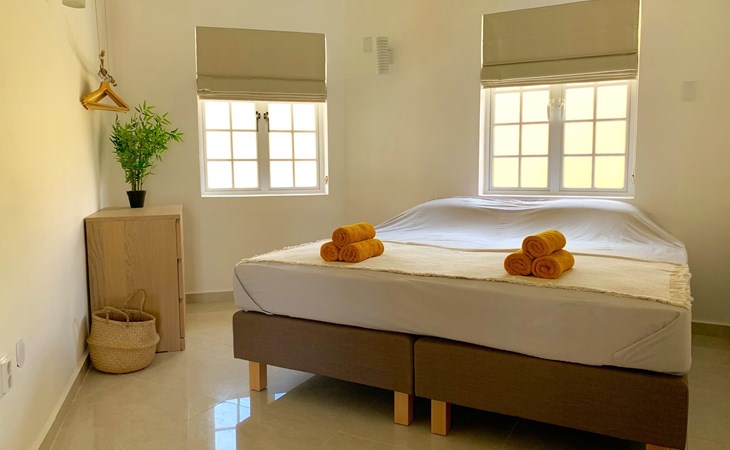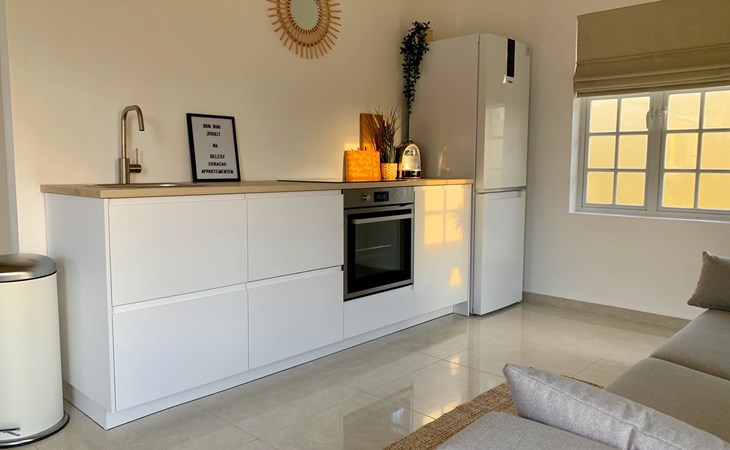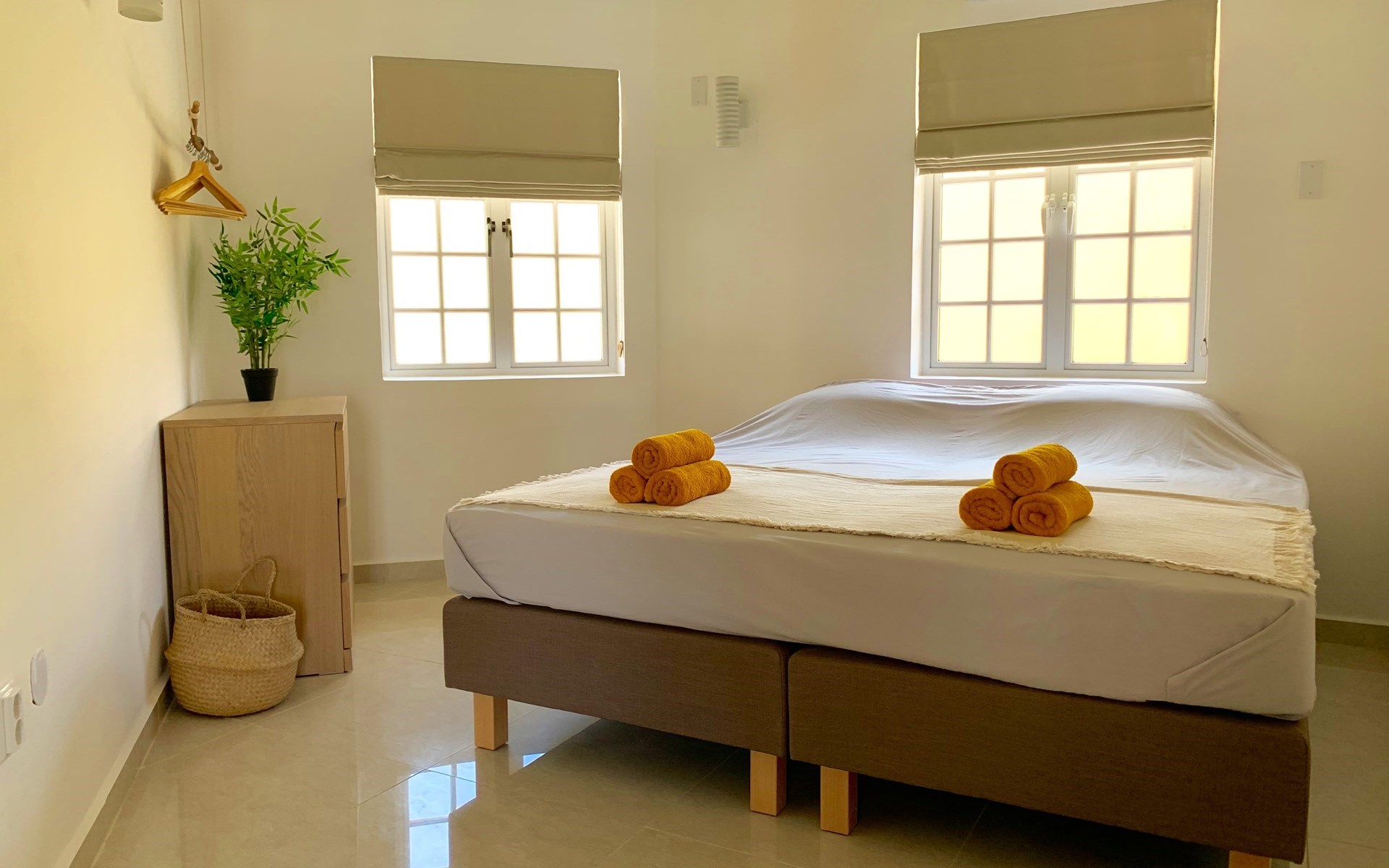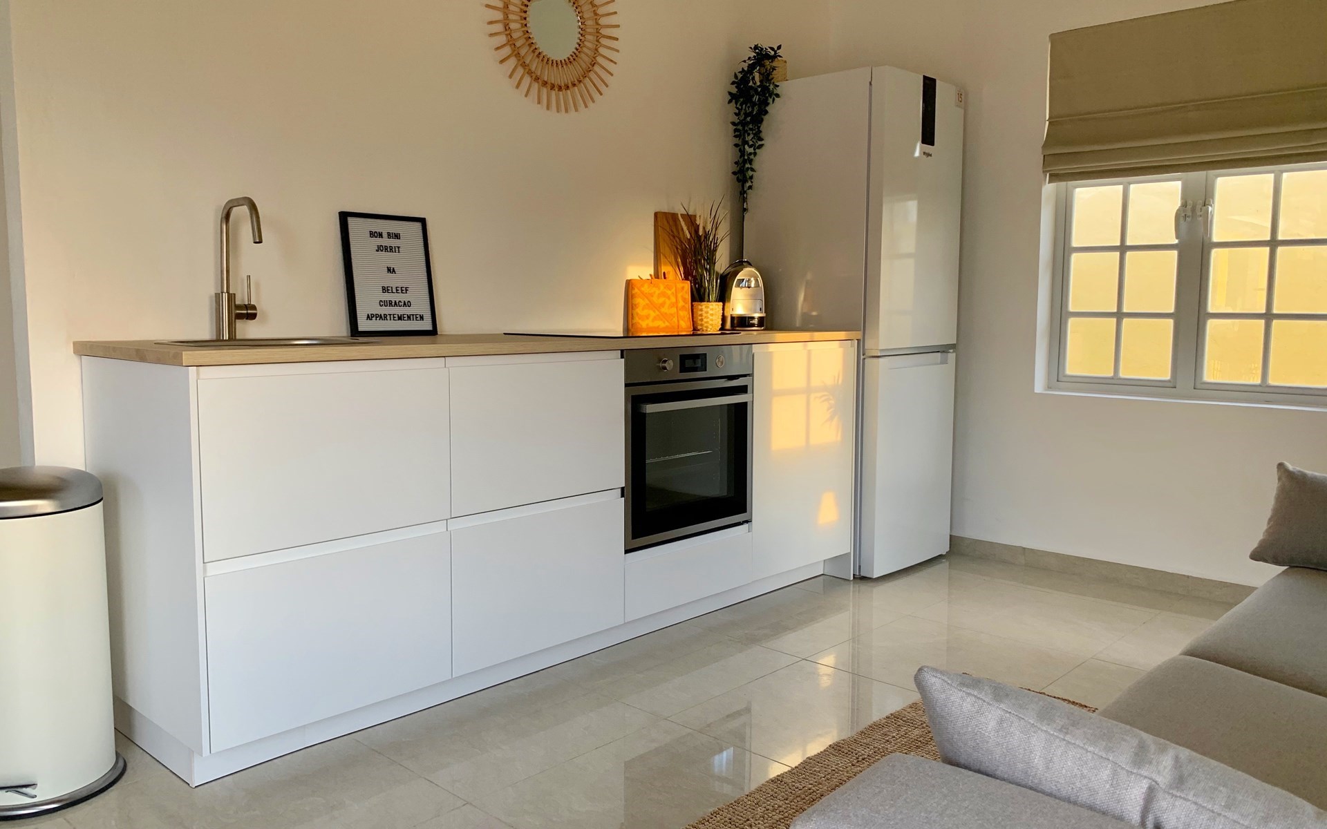 Het appartement is licht, sfeervol en gezellig ingericht, met een harmonieuze mix van natuurlijke kleuren en warme accenten. De knusse woonkamer heeft een mooie, frisse keuken en is volledig uitgerust en praktisch, zodat je makkelijk zelf kunt koken. De eerste slaapkamer biedt een rustgevende sfeer, met een comfortabel opgemaakt bed voor een goede nachtrust. Via de eerste slaapkamer bereik je de tweede slaapkamer die erg ruim te noemen is. De slaapkamers beschikken over een comfortabel tweepersoonsbed, ingericht in frisse kleuren met houten accenten. De kamer straalt een relaxte, tropische sfeer uit en is de perfecte plek om uit te rusten na een dag op Curaçao.