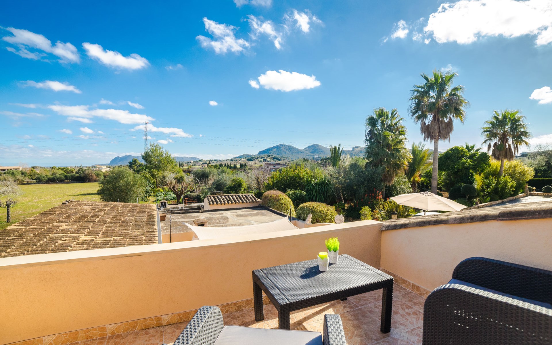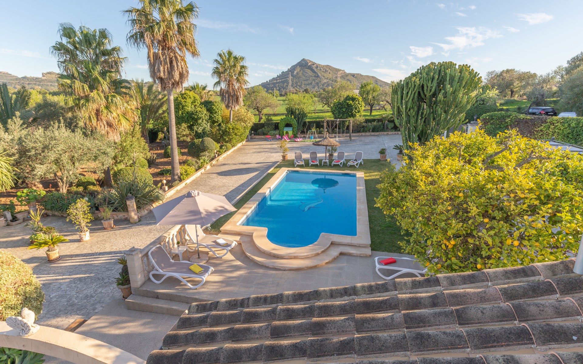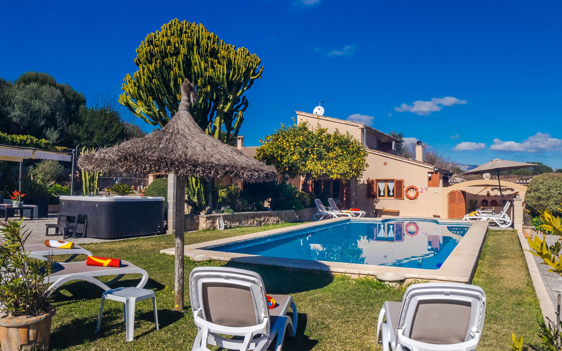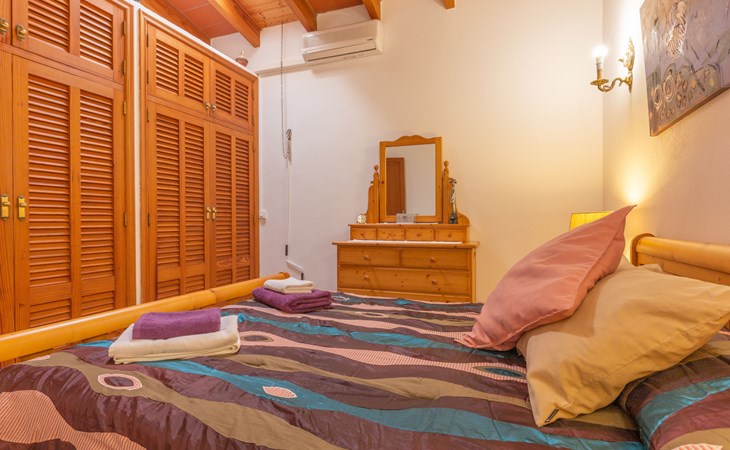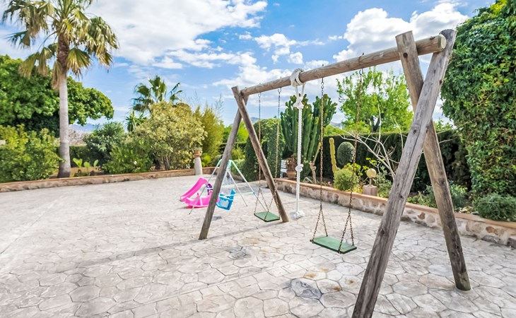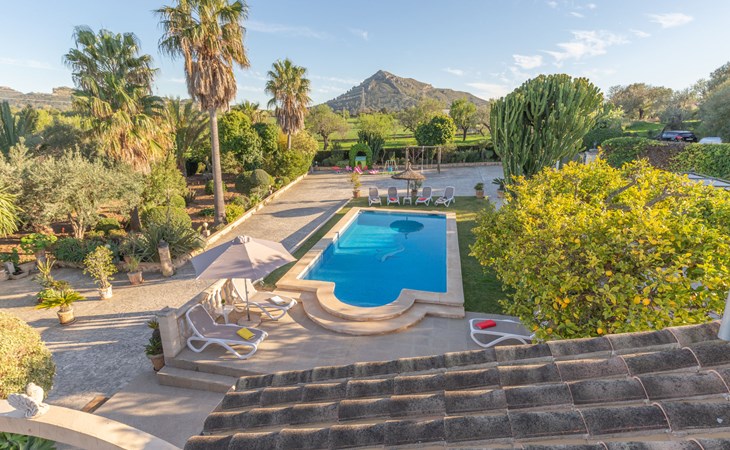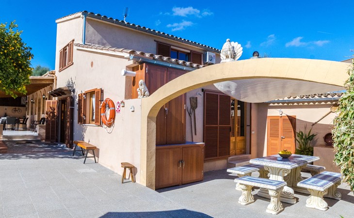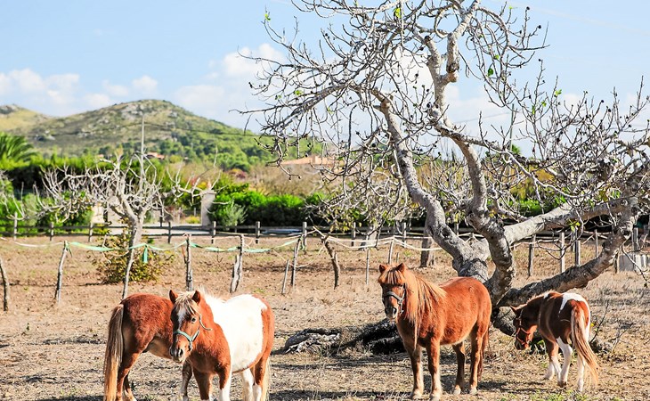 4 km van Alcúdia: Rustieke, comfortabel landgoed "Ca Na Guerrera", van 2 verdiepingen, gerenoveerd in 2018, omgeven door bomen en velden. Buiten de plaats, 4 km van het centrum van Alcudia, rustige, zonnige ligging, 7 km van zee, aan een weg. Voor alleengebruik: terrein 13.000 m2 (omheind) met gazon en planten, boomgaard (omheind), mooie tuin ter ontspanning, openluchtzwembad hoekig (9 x 4 m, seizoensgebonden beschikbaarheid: 20.Mrt. - 07.Nov.). Douche/WC bij het zwembad, buitendouche, hot tub, patio (500 m2), prieel (15 m2), tuinmeubelen, barbecue (schommel). In het huis: internetaansluiting, Internet (WiFi), air-conditioning, wasmachine. Smalle toegangsweg. Parkeerplaats bij het huis op het terrein. Winkel 6 km, levensmiddelenwinkel 6 km, restaurant 6 km, bushalte "Alcudia" 6 km, treinstation 10 km, zandstrand "Bahia de Alcudia" 7 km kiezelstrand 8 km, rotsstrand 8 km. Jachthaven 6 km, jachthaven 6 km, golfterrein (18 holes) 6 km, tennis 8 km, manege 5 km. Auto noodzakelijk. Geschikt voor families, geschikt voor senioren. Het objekt is geschikt voor 7 volwassenen groepen jongeren uitsluitend op aanvraag. Laden en lossen van de baggage is mogelijk bij het huis. Achter het huis, in een afgescheiden gedeelte met toegang rechtstreeks vanaf de tuin staan 5 pony's.