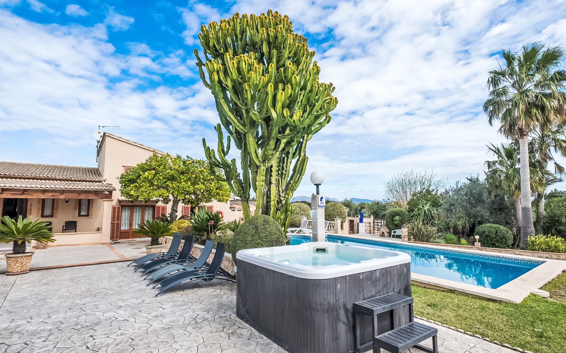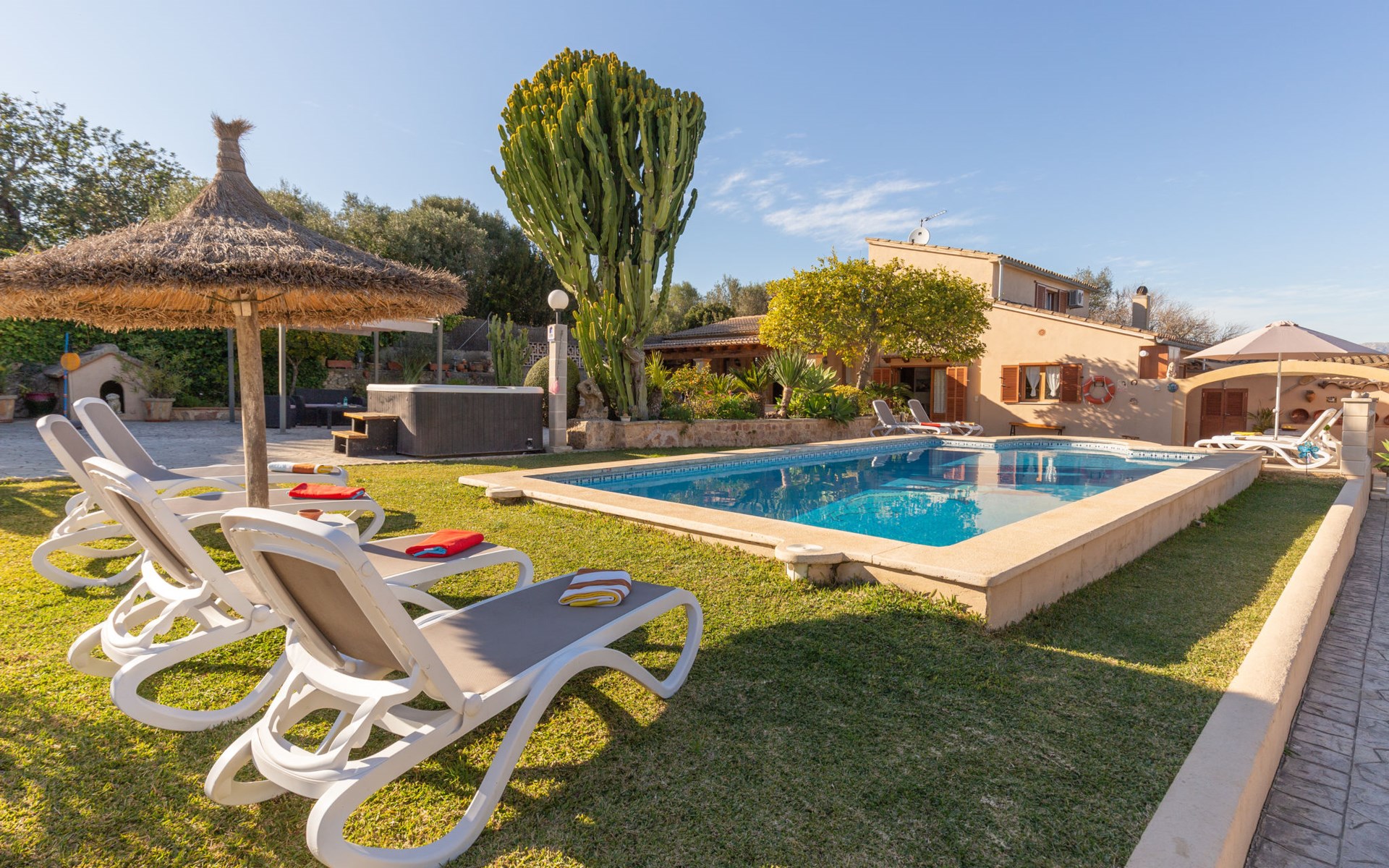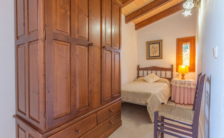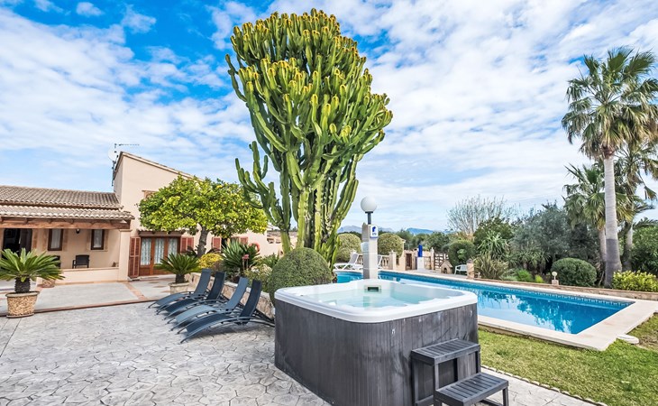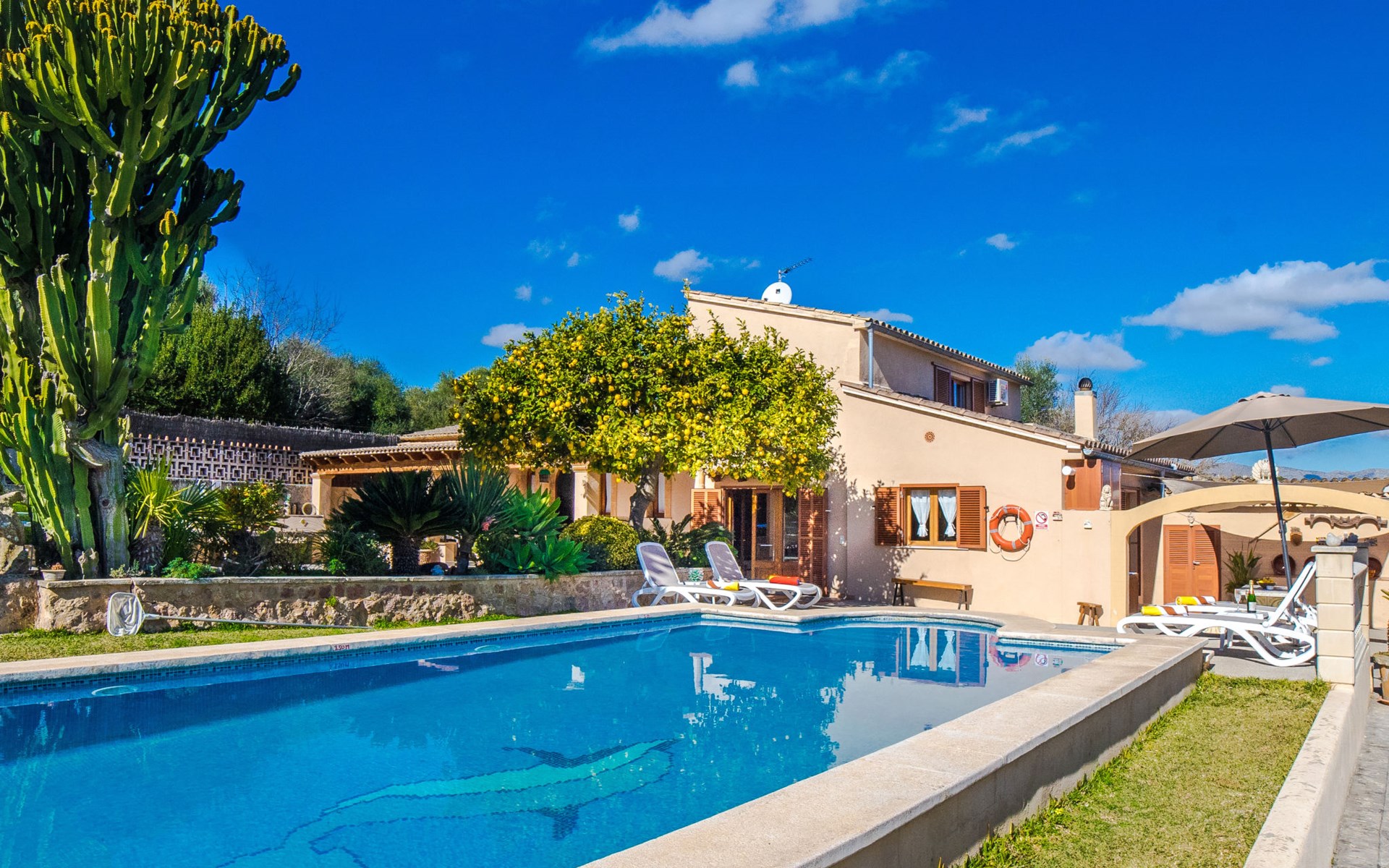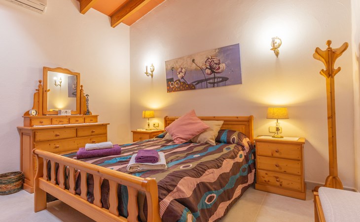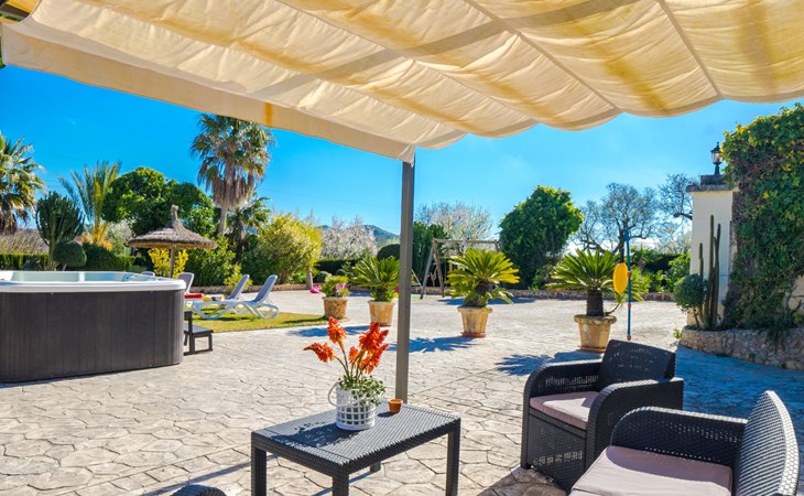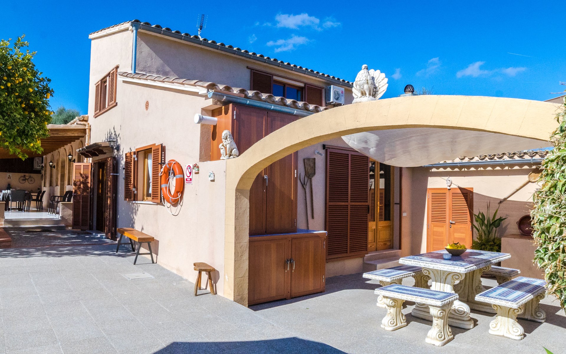 4 km van Alcúdia: Rustieke, comfortabel landgoed "Ca Na Guerrera", van 2 verdiepingen, gerenoveerd in 2018, omgeven door bomen en velden. Buiten de plaats, 4 km van het centrum van Alcudia, rustige, zonnige ligging, 7 km van zee, aan een weg. Voor alleengebruik: terrein 13.000 m2 (omheind) met gazon en planten, boomgaard (omheind), mooie tuin ter ontspanning, openluchtzwembad hoekig (9 x 4 m, seizoensgebonden beschikbaarheid: 20.Mrt. - 07.Nov.). Douche/WC bij het zwembad, buitendouche, hot tub, patio (500 m2), prieel (15 m2), tuinmeubelen, barbecue (schommel). In het huis: internetaansluiting, Internet (WiFi), air-conditioning, wasmachine. Smalle toegangsweg. Parkeerplaats bij het huis op het terrein. Winkel 6 km, levensmiddelenwinkel 6 km, restaurant 6 km, bushalte "Alcudia" 6 km, treinstation 10 km, zandstrand "Bahia de Alcudia" 7 km kiezelstrand 8 km, rotsstrand 8 km. Jachthaven 6 km, jachthaven 6 km, golfterrein (18 holes) 6 km, tennis 8 km, manege 5 km. Auto noodzakelijk. Geschikt voor families, geschikt voor senioren. Het objekt is geschikt voor 7 volwassenen groepen jongeren uitsluitend op aanvraag. Laden en lossen van de baggage is mogelijk bij het huis. Achter het huis, in een afgescheiden gedeelte met toegang rechtstreeks vanaf de tuin staan 5 pony's.