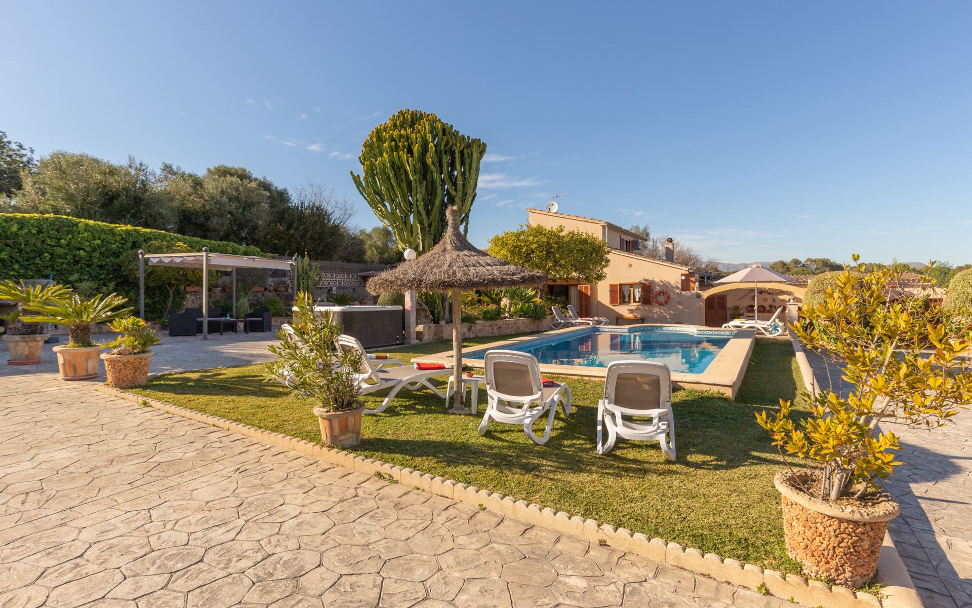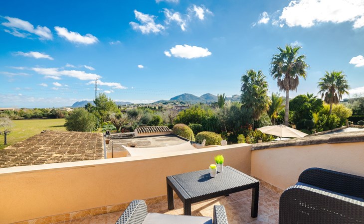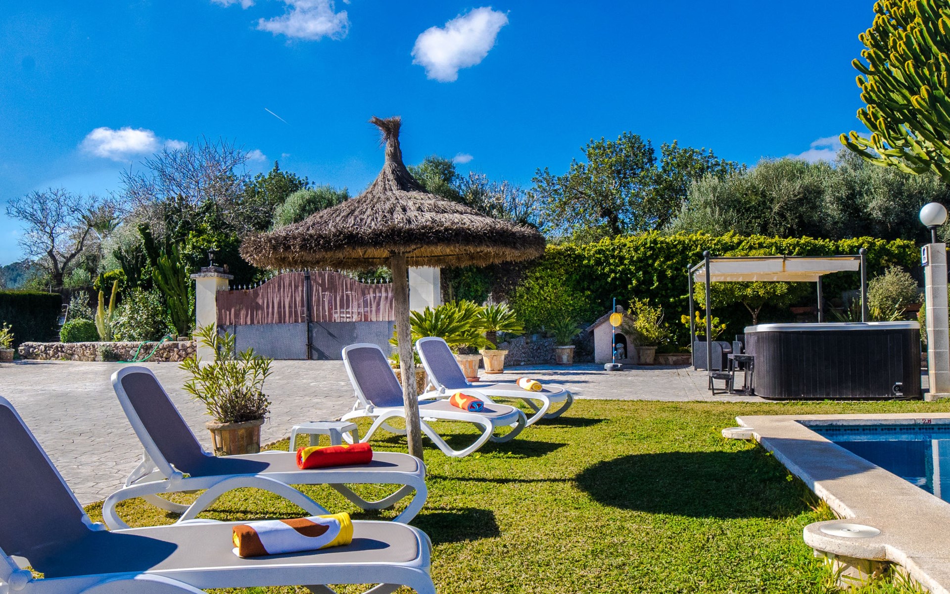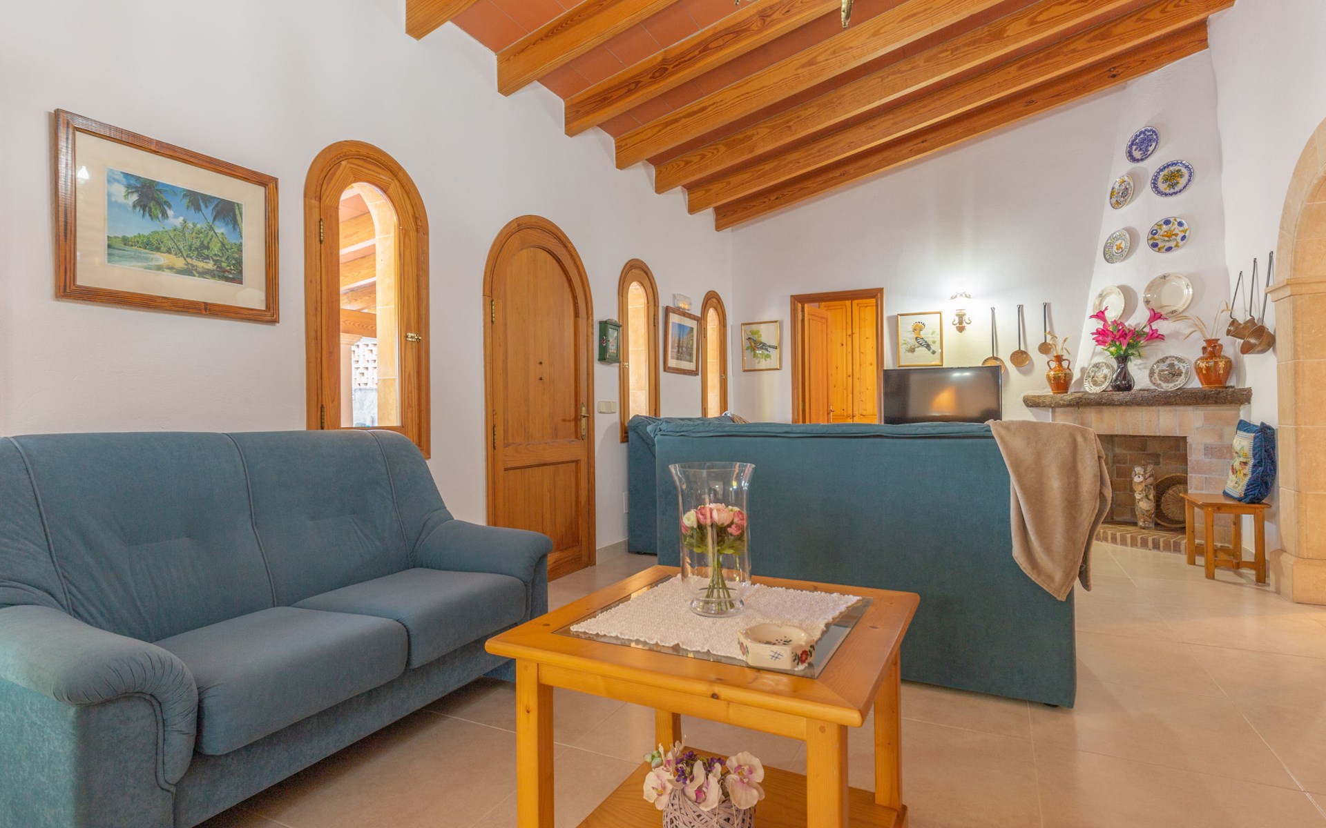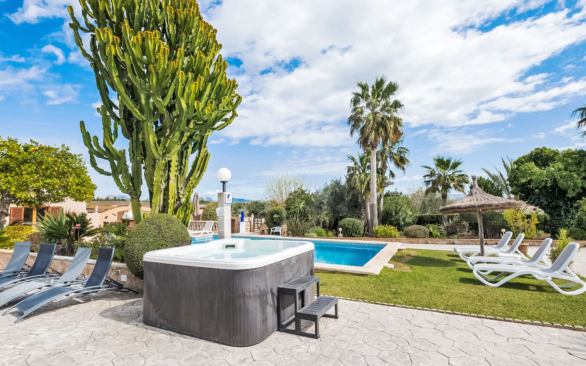 4 km van Alcúdia: Rustieke, comfortabel landgoed "Ca Na Guerrera", van 2 verdiepingen, gerenoveerd in 2018, omgeven door bomen en velden. Buiten de plaats, 4 km van het centrum van Alcudia, rustige, zonnige ligging, 7 km van zee, aan een weg. Voor alleengebruik: terrein 13.000 m2 (omheind) met gazon en planten, boomgaard (omheind), mooie tuin ter ontspanning, openluchtzwembad hoekig (9 x 4 m, seizoensgebonden beschikbaarheid: 20.Mrt. - 07.Nov.). Douche/WC bij het zwembad, buitendouche, hot tub, patio (500 m2), prieel (15 m2), tuinmeubelen, barbecue (schommel). In het huis: internetaansluiting, Internet (WiFi), air-conditioning, wasmachine. Smalle toegangsweg. Parkeerplaats bij het huis op het terrein. Winkel 6 km, levensmiddelenwinkel 6 km, restaurant 6 km, bushalte "Alcudia" 6 km, treinstation 10 km, zandstrand "Bahia de Alcudia" 7 km kiezelstrand 8 km, rotsstrand 8 km. Jachthaven 6 km, jachthaven 6 km, golfterrein (18 holes) 6 km, tennis 8 km, manege 5 km. Auto noodzakelijk. Geschikt voor families, geschikt voor senioren. Het objekt is geschikt voor 7 volwassenen groepen jongeren uitsluitend op aanvraag. Laden en lossen van de baggage is mogelijk bij het huis. Achter het huis, in een afgescheiden gedeelte met toegang rechtstreeks vanaf de tuin staan 5 pony's.