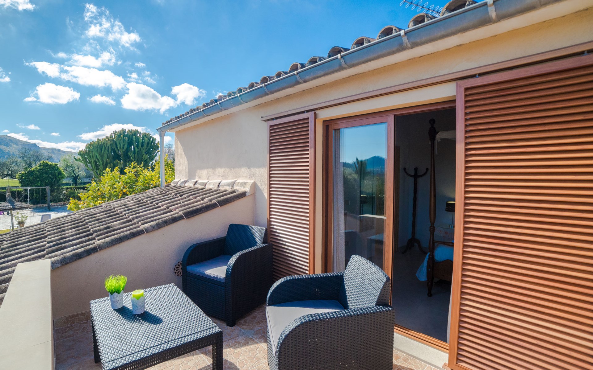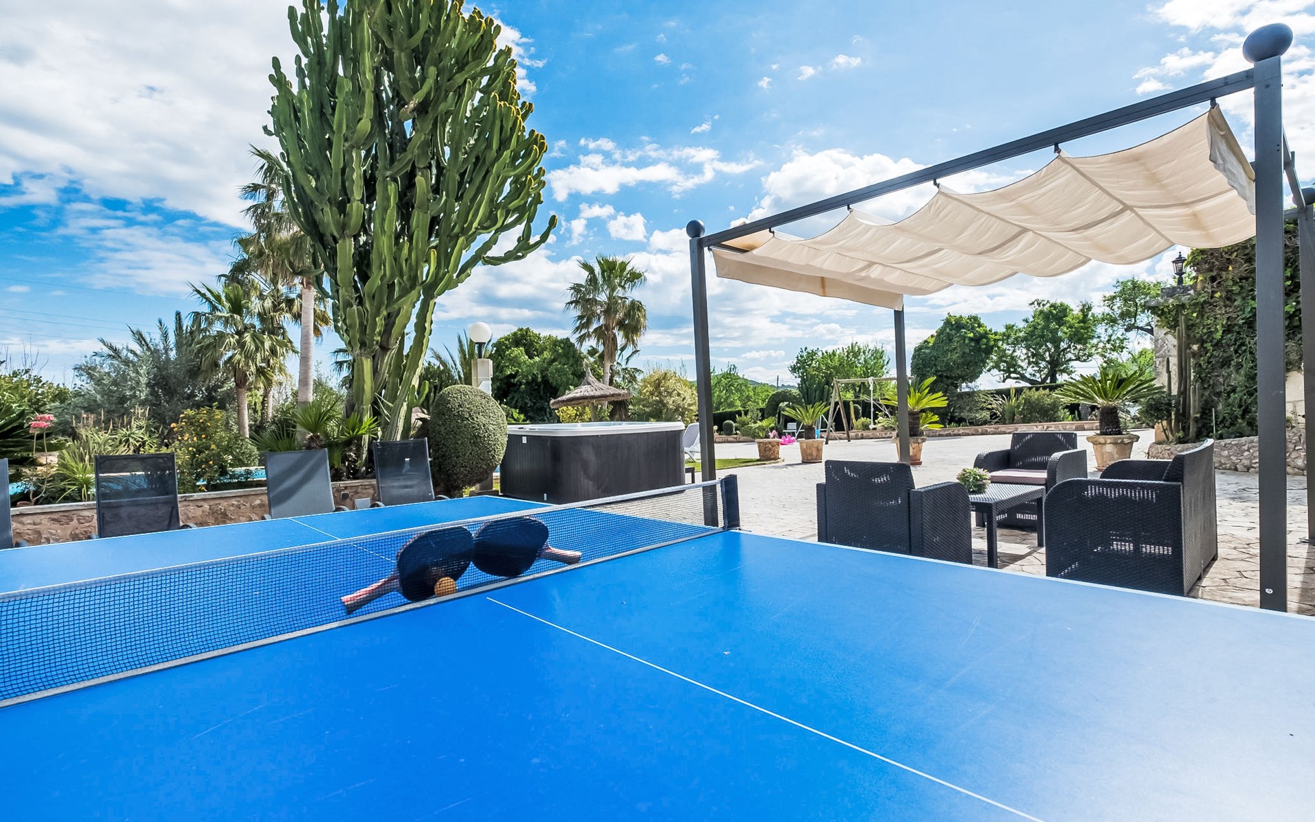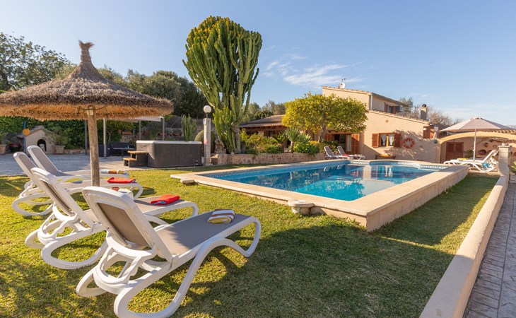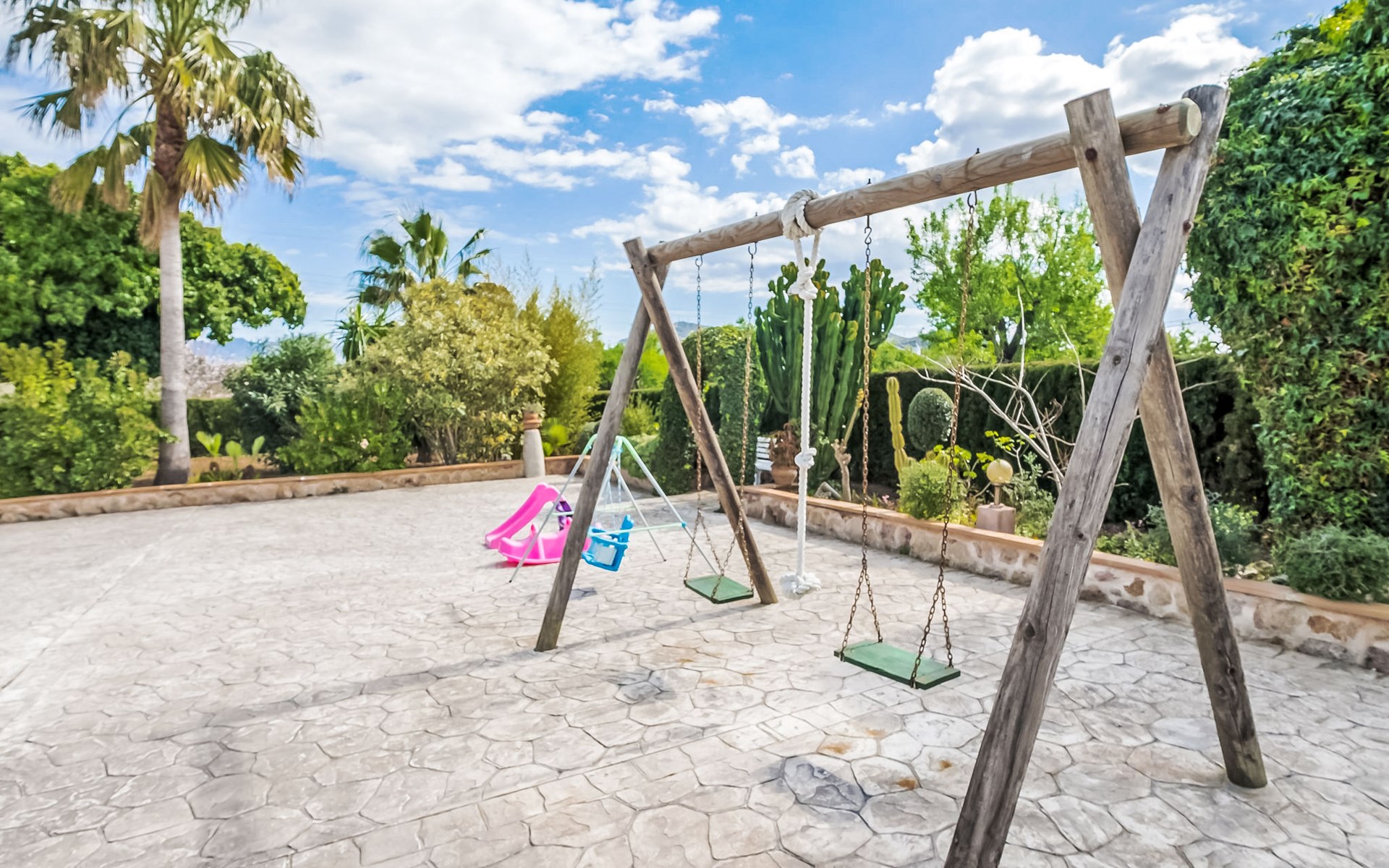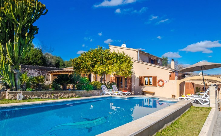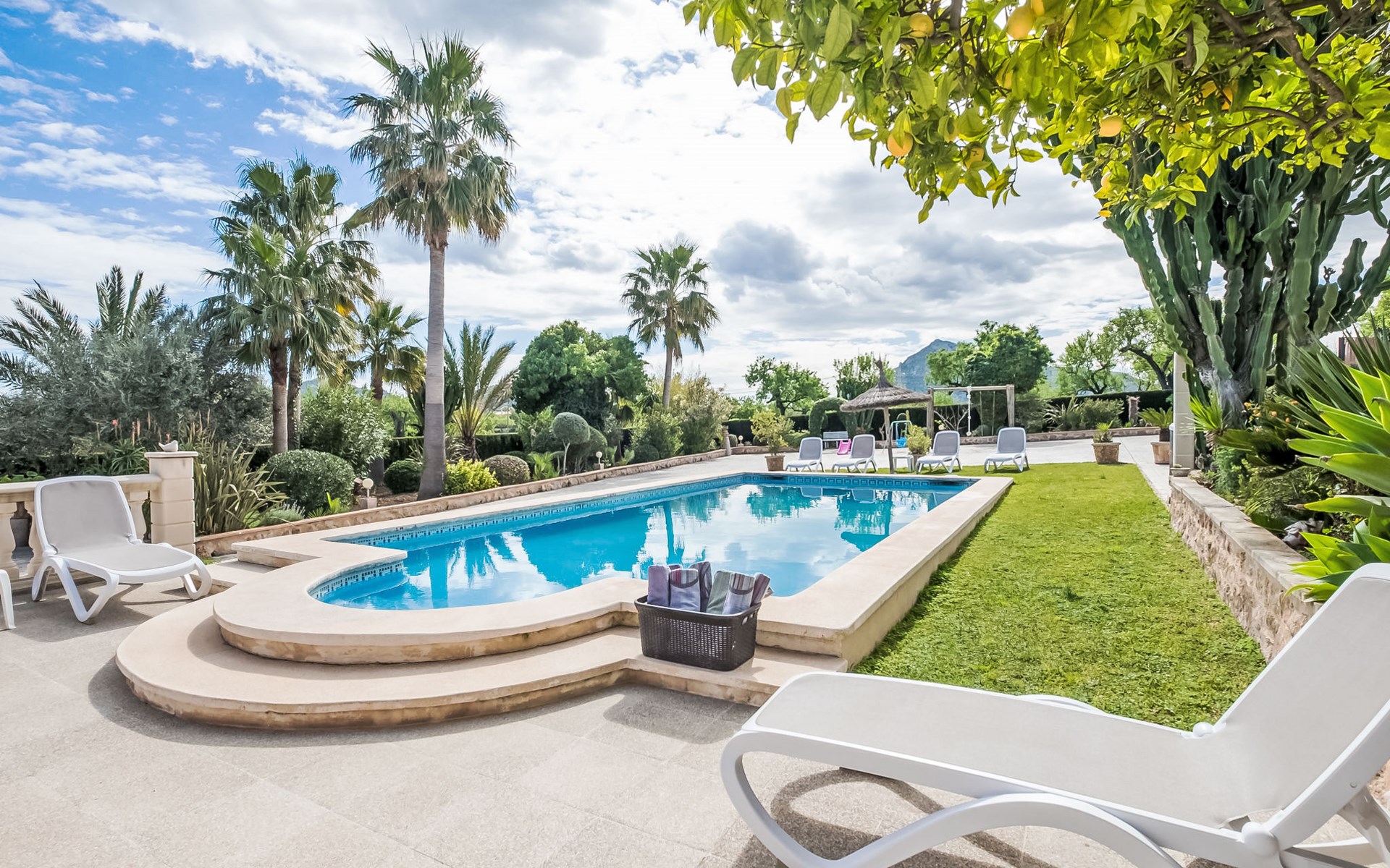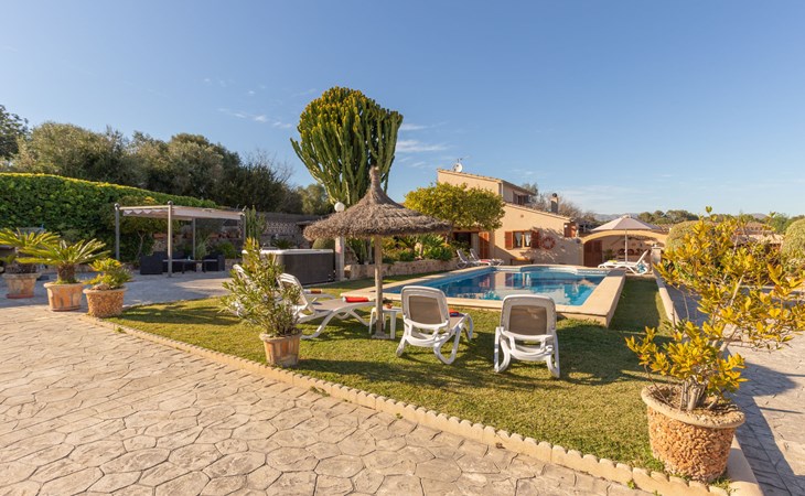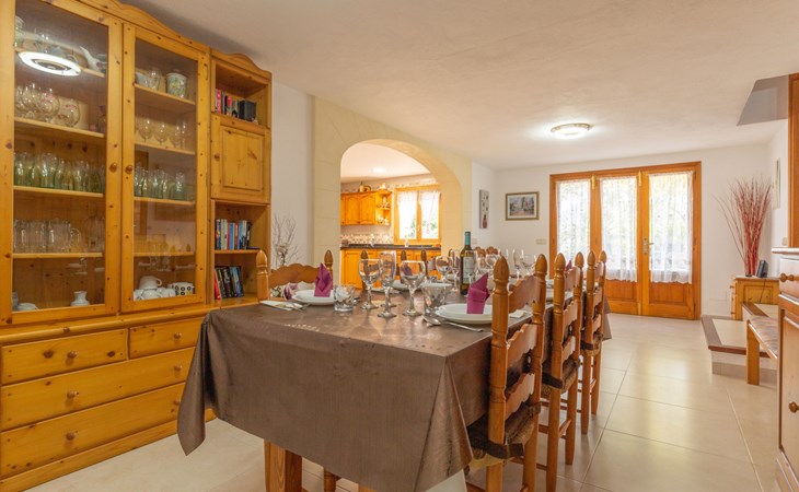 4 km van Alcúdia: Rustieke, comfortabel landgoed "Ca Na Guerrera", van 2 verdiepingen, gerenoveerd in 2018, omgeven door bomen en velden. Buiten de plaats, 4 km van het centrum van Alcudia, rustige, zonnige ligging, 7 km van zee, aan een weg. Voor alleengebruik: terrein 13.000 m2 (omheind) met gazon en planten, boomgaard (omheind), mooie tuin ter ontspanning, openluchtzwembad hoekig (9 x 4 m, seizoensgebonden beschikbaarheid: 20.Mrt. - 07.Nov.). Douche/WC bij het zwembad, buitendouche, hot tub, patio (500 m2), prieel (15 m2), tuinmeubelen, barbecue (schommel). In het huis: internetaansluiting, Internet (WiFi), air-conditioning, wasmachine. Smalle toegangsweg. Parkeerplaats bij het huis op het terrein. Winkel 6 km, levensmiddelenwinkel 6 km, restaurant 6 km, bushalte "Alcudia" 6 km, treinstation 10 km, zandstrand "Bahia de Alcudia" 7 km kiezelstrand 8 km, rotsstrand 8 km. Jachthaven 6 km, jachthaven 6 km, golfterrein (18 holes) 6 km, tennis 8 km, manege 5 km. Auto noodzakelijk. Geschikt voor families, geschikt voor senioren. Het objekt is geschikt voor 7 volwassenen groepen jongeren uitsluitend op aanvraag. Laden en lossen van de baggage is mogelijk bij het huis. Achter het huis, in een afgescheiden gedeelte met toegang rechtstreeks vanaf de tuin staan 5 pony's.
