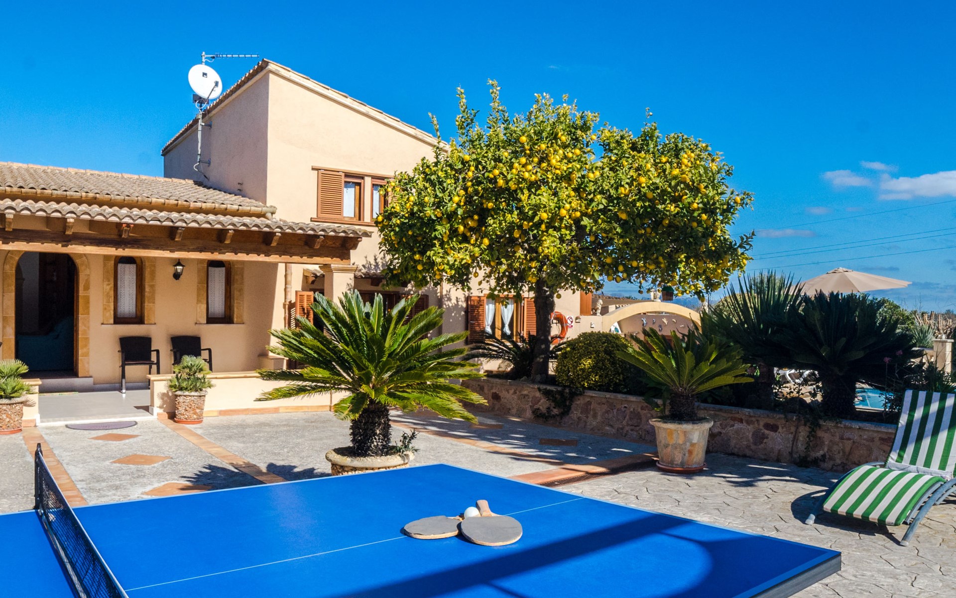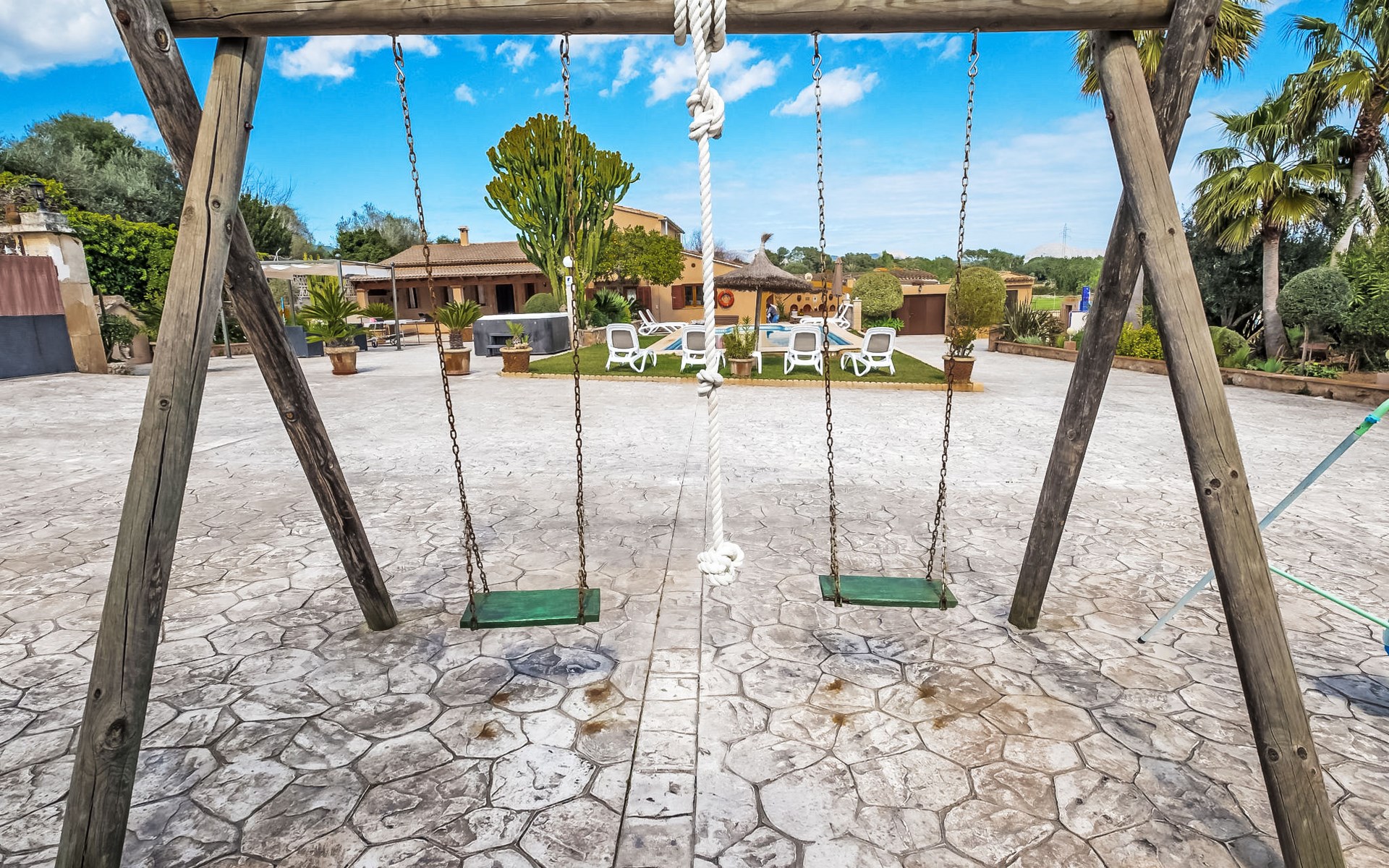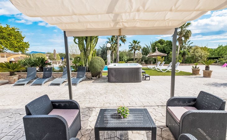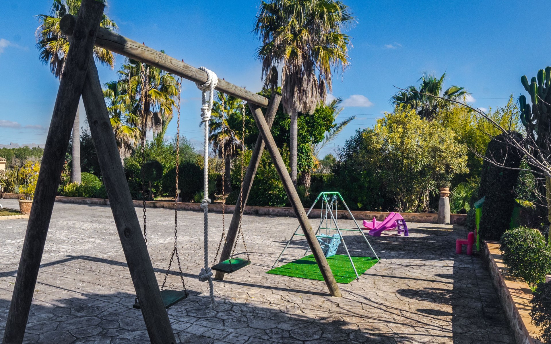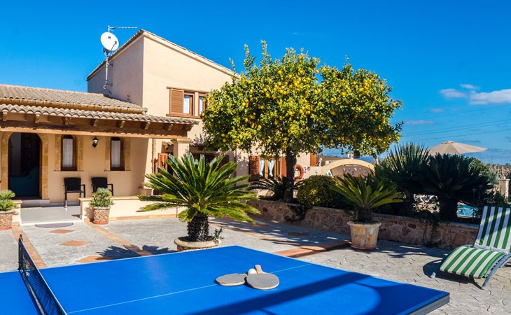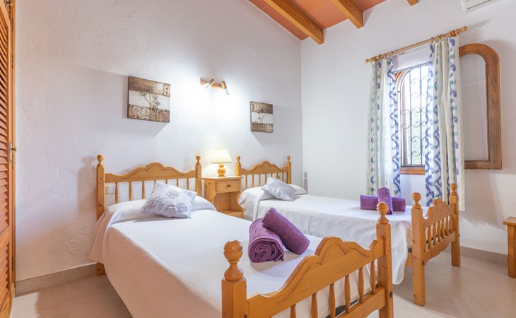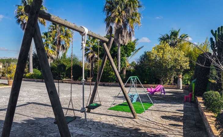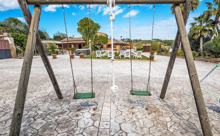 4 km van Alcúdia: Rustieke, comfortabel landgoed "Ca Na Guerrera", van 2 verdiepingen, gerenoveerd in 2018, omgeven door bomen en velden. Buiten de plaats, 4 km van het centrum van Alcudia, rustige, zonnige ligging, 7 km van zee, aan een weg. Voor alleengebruik: terrein 13.000 m2 (omheind) met gazon en planten, boomgaard (omheind), mooie tuin ter ontspanning, openluchtzwembad hoekig (9 x 4 m, seizoensgebonden beschikbaarheid: 20.Mrt. - 07.Nov.). Douche/WC bij het zwembad, buitendouche, hot tub, patio (500 m2), prieel (15 m2), tuinmeubelen, barbecue (schommel). In het huis: internetaansluiting, Internet (WiFi), air-conditioning, wasmachine. Smalle toegangsweg. Parkeerplaats bij het huis op het terrein. Winkel 6 km, levensmiddelenwinkel 6 km, restaurant 6 km, bushalte "Alcudia" 6 km, treinstation 10 km, zandstrand "Bahia de Alcudia" 7 km kiezelstrand 8 km, rotsstrand 8 km. Jachthaven 6 km, jachthaven 6 km, golfterrein (18 holes) 6 km, tennis 8 km, manege 5 km. Auto noodzakelijk. Geschikt voor families, geschikt voor senioren. Het objekt is geschikt voor 7 volwassenen groepen jongeren uitsluitend op aanvraag. Laden en lossen van de baggage is mogelijk bij het huis. Achter het huis, in een afgescheiden gedeelte met toegang rechtstreeks vanaf de tuin staan 5 pony's.