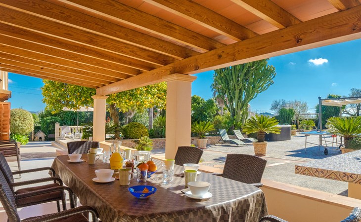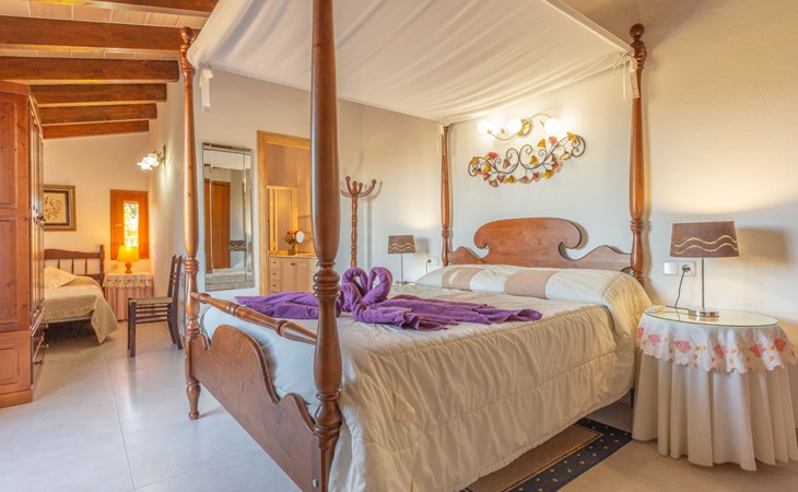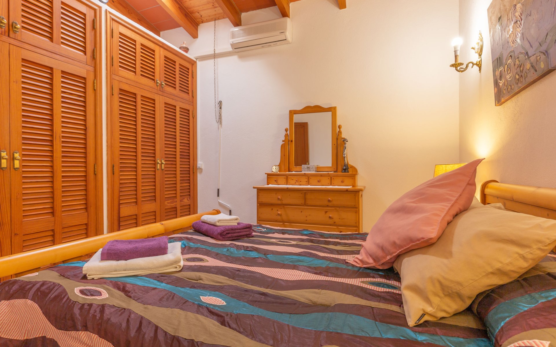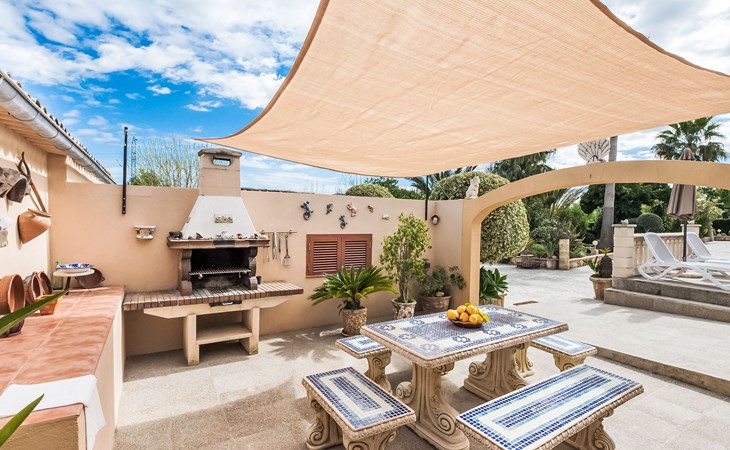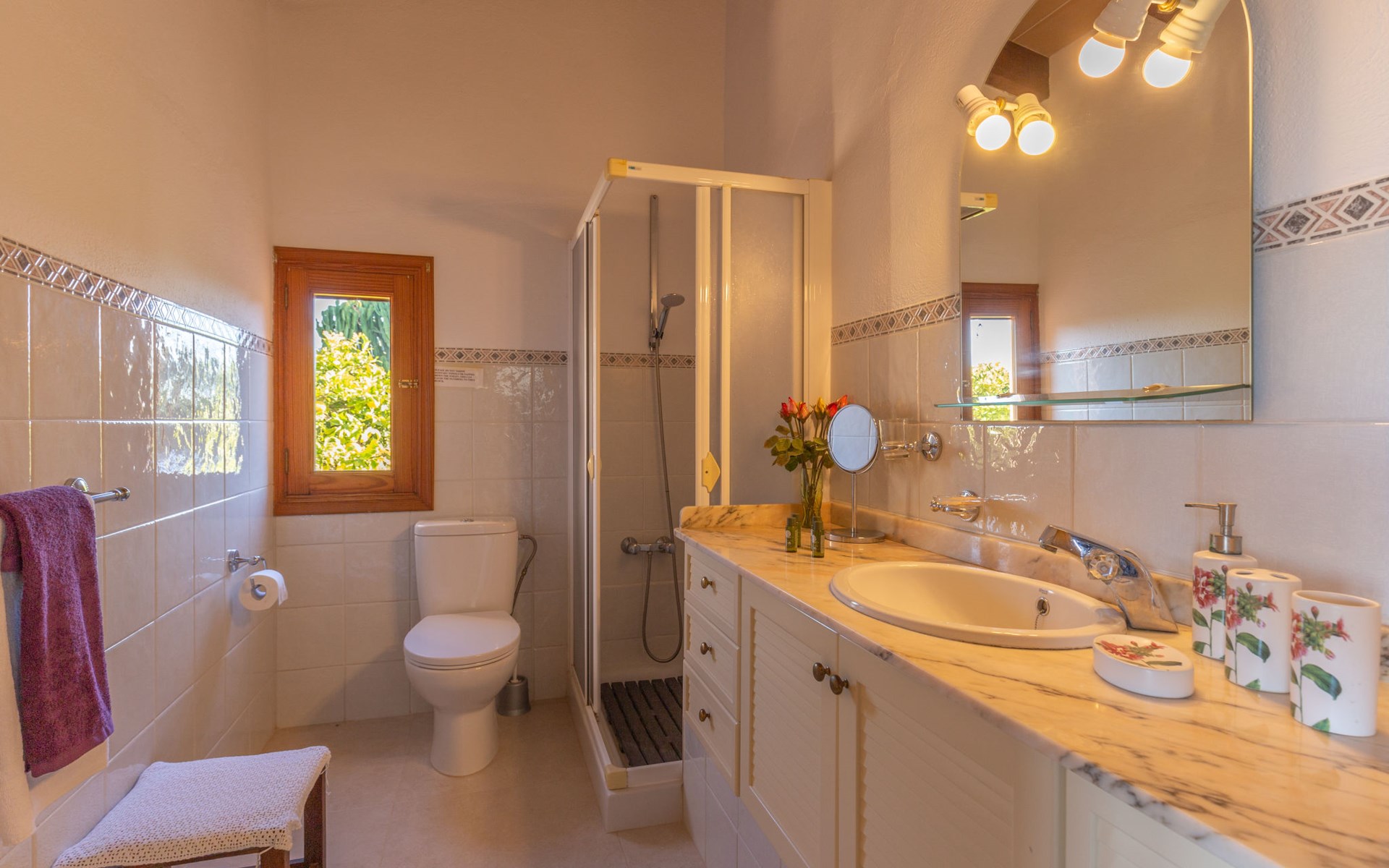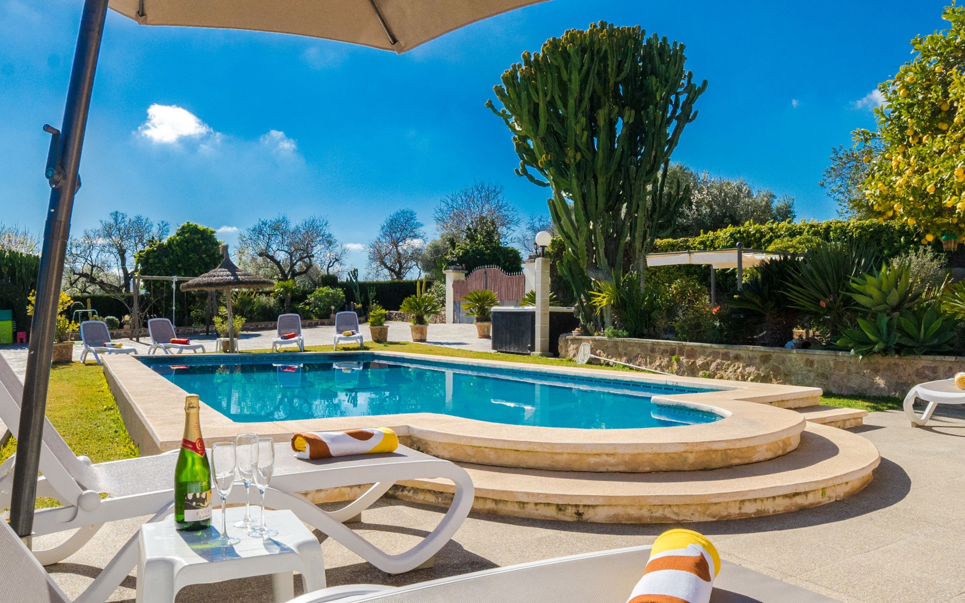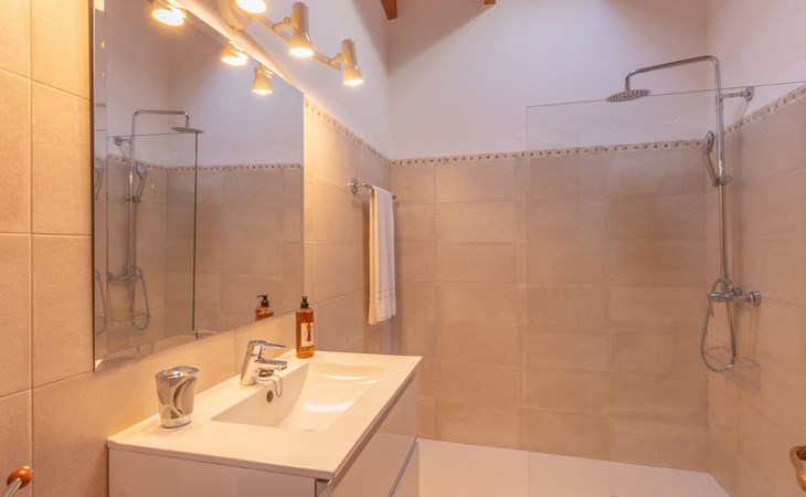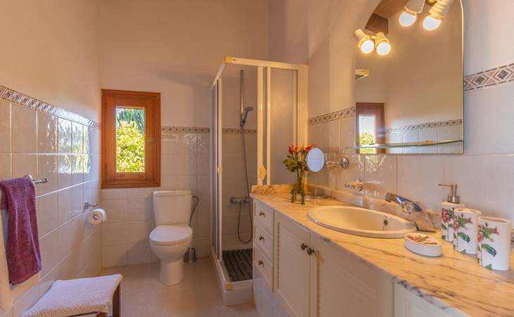 4 km van Alcúdia: Rustieke, comfortabel landgoed "Ca Na Guerrera", van 2 verdiepingen, gerenoveerd in 2018, omgeven door bomen en velden. Buiten de plaats, 4 km van het centrum van Alcudia, rustige, zonnige ligging, 7 km van zee, aan een weg. Voor alleengebruik: terrein 13.000 m2 (omheind) met gazon en planten, boomgaard (omheind), mooie tuin ter ontspanning, openluchtzwembad hoekig (9 x 4 m, seizoensgebonden beschikbaarheid: 20.Mrt. - 07.Nov.). Douche/WC bij het zwembad, buitendouche, hot tub, patio (500 m2), prieel (15 m2), tuinmeubelen, barbecue (schommel). In het huis: internetaansluiting, Internet (WiFi), air-conditioning, wasmachine. Smalle toegangsweg. Parkeerplaats bij het huis op het terrein. Winkel 6 km, levensmiddelenwinkel 6 km, restaurant 6 km, bushalte "Alcudia" 6 km, treinstation 10 km, zandstrand "Bahia de Alcudia" 7 km kiezelstrand 8 km, rotsstrand 8 km. Jachthaven 6 km, jachthaven 6 km, golfterrein (18 holes) 6 km, tennis 8 km, manege 5 km. Auto noodzakelijk. Geschikt voor families, geschikt voor senioren. Het objekt is geschikt voor 7 volwassenen groepen jongeren uitsluitend op aanvraag. Laden en lossen van de baggage is mogelijk bij het huis. Achter het huis, in een afgescheiden gedeelte met toegang rechtstreeks vanaf de tuin staan 5 pony's.