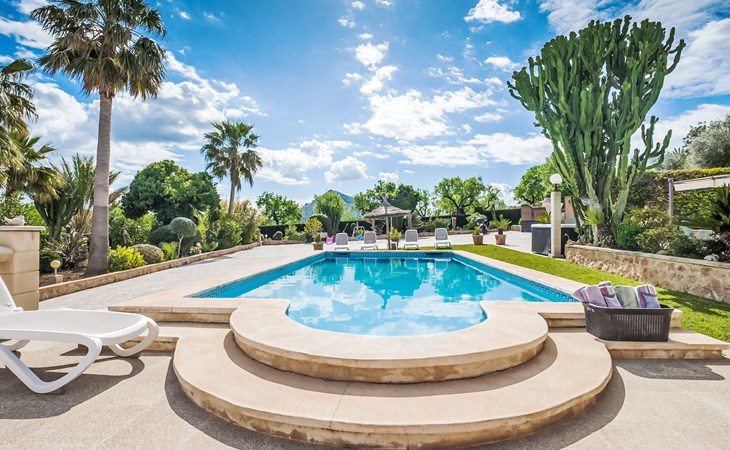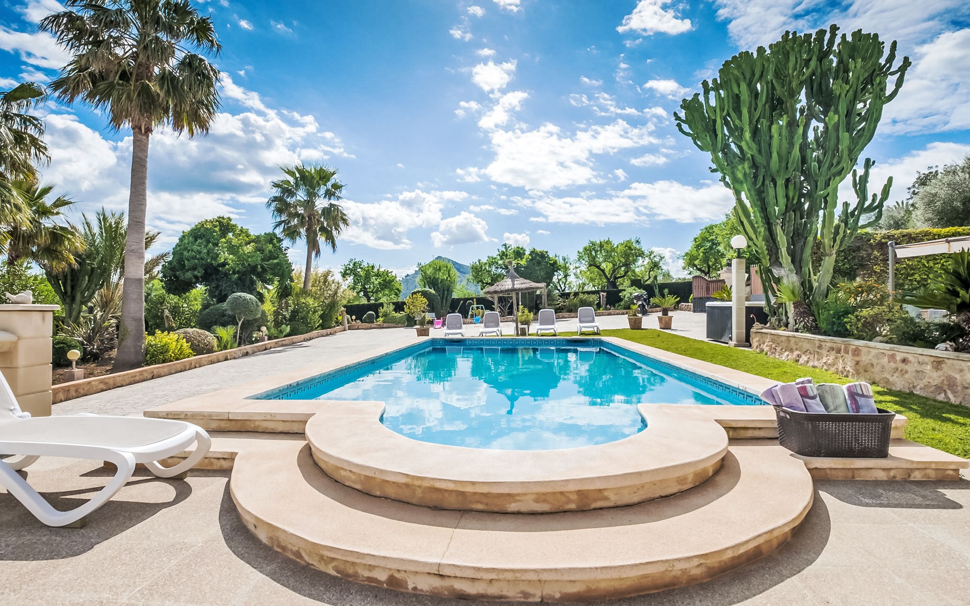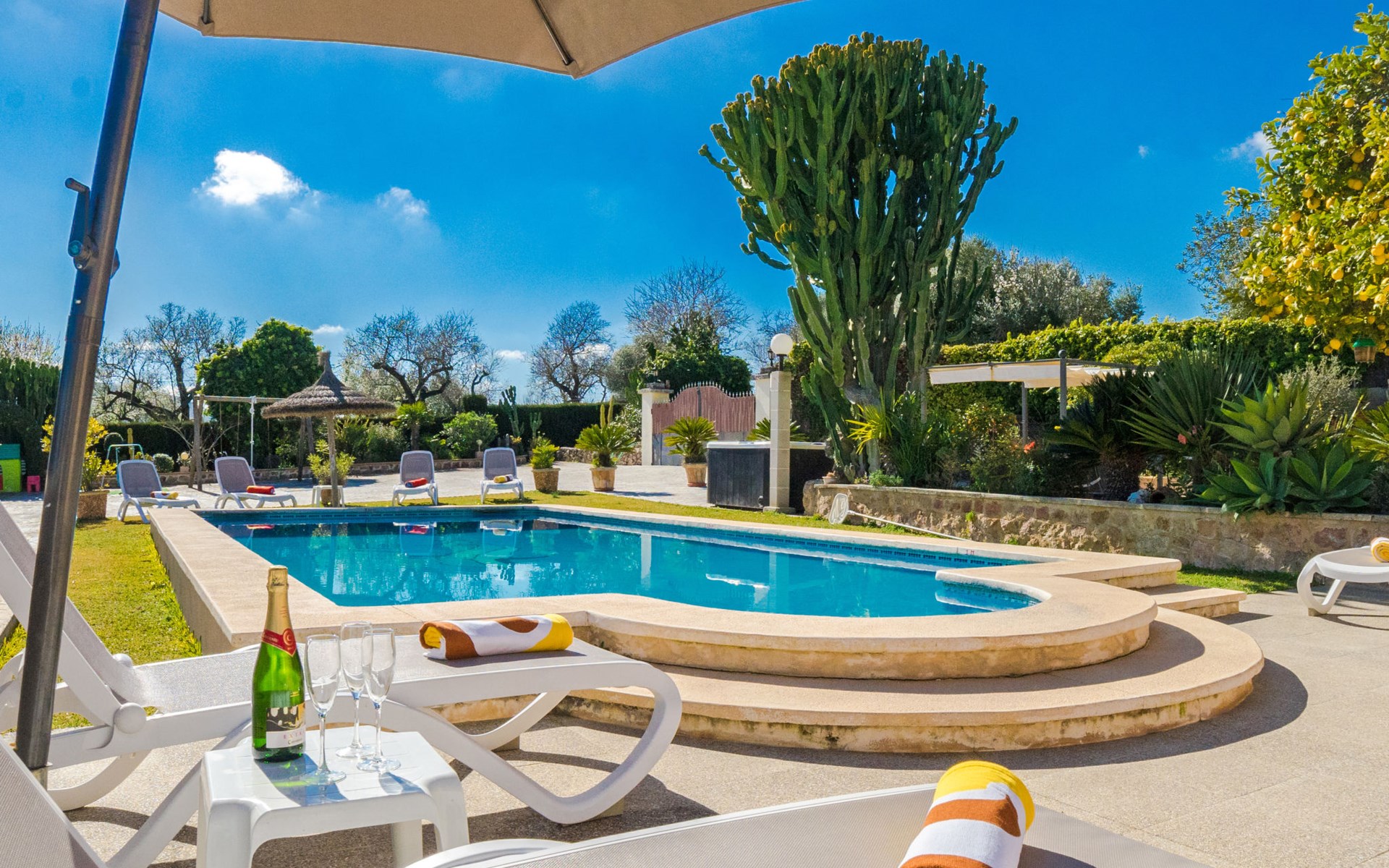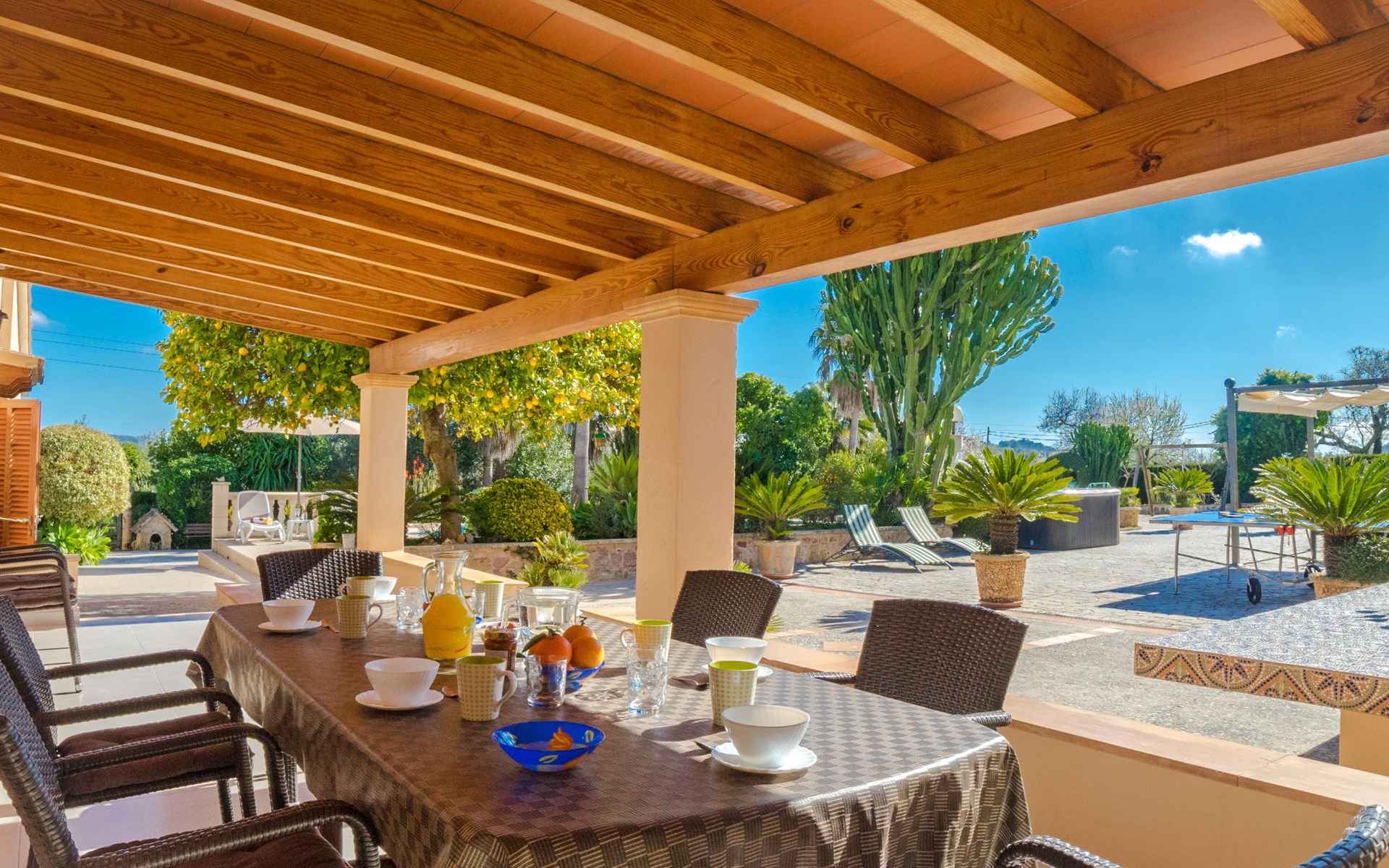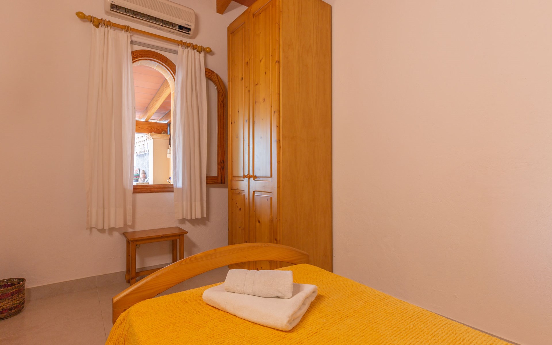 4 km van Alcúdia: Rustieke, comfortabel landgoed "Ca Na Guerrera", van 2 verdiepingen, gerenoveerd in 2018, omgeven door bomen en velden. Buiten de plaats, 4 km van het centrum van Alcudia, rustige, zonnige ligging, 7 km van zee, aan een weg. Voor alleengebruik: terrein 13.000 m2 (omheind) met gazon en planten, boomgaard (omheind), mooie tuin ter ontspanning, openluchtzwembad hoekig (9 x 4 m, seizoensgebonden beschikbaarheid: 20.Mrt. - 07.Nov.). Douche/WC bij het zwembad, buitendouche, hot tub, patio (500 m2), prieel (15 m2), tuinmeubelen, barbecue (schommel). In het huis: internetaansluiting, Internet (WiFi), air-conditioning, wasmachine. Smalle toegangsweg. Parkeerplaats bij het huis op het terrein. Winkel 6 km, levensmiddelenwinkel 6 km, restaurant 6 km, bushalte "Alcudia" 6 km, treinstation 10 km, zandstrand "Bahia de Alcudia" 7 km kiezelstrand 8 km, rotsstrand 8 km. Jachthaven 6 km, jachthaven 6 km, golfterrein (18 holes) 6 km, tennis 8 km, manege 5 km. Auto noodzakelijk. Geschikt voor families, geschikt voor senioren. Het objekt is geschikt voor 7 volwassenen groepen jongeren uitsluitend op aanvraag. Laden en lossen van de baggage is mogelijk bij het huis. Achter het huis, in een afgescheiden gedeelte met toegang rechtstreeks vanaf de tuin staan 5 pony's.